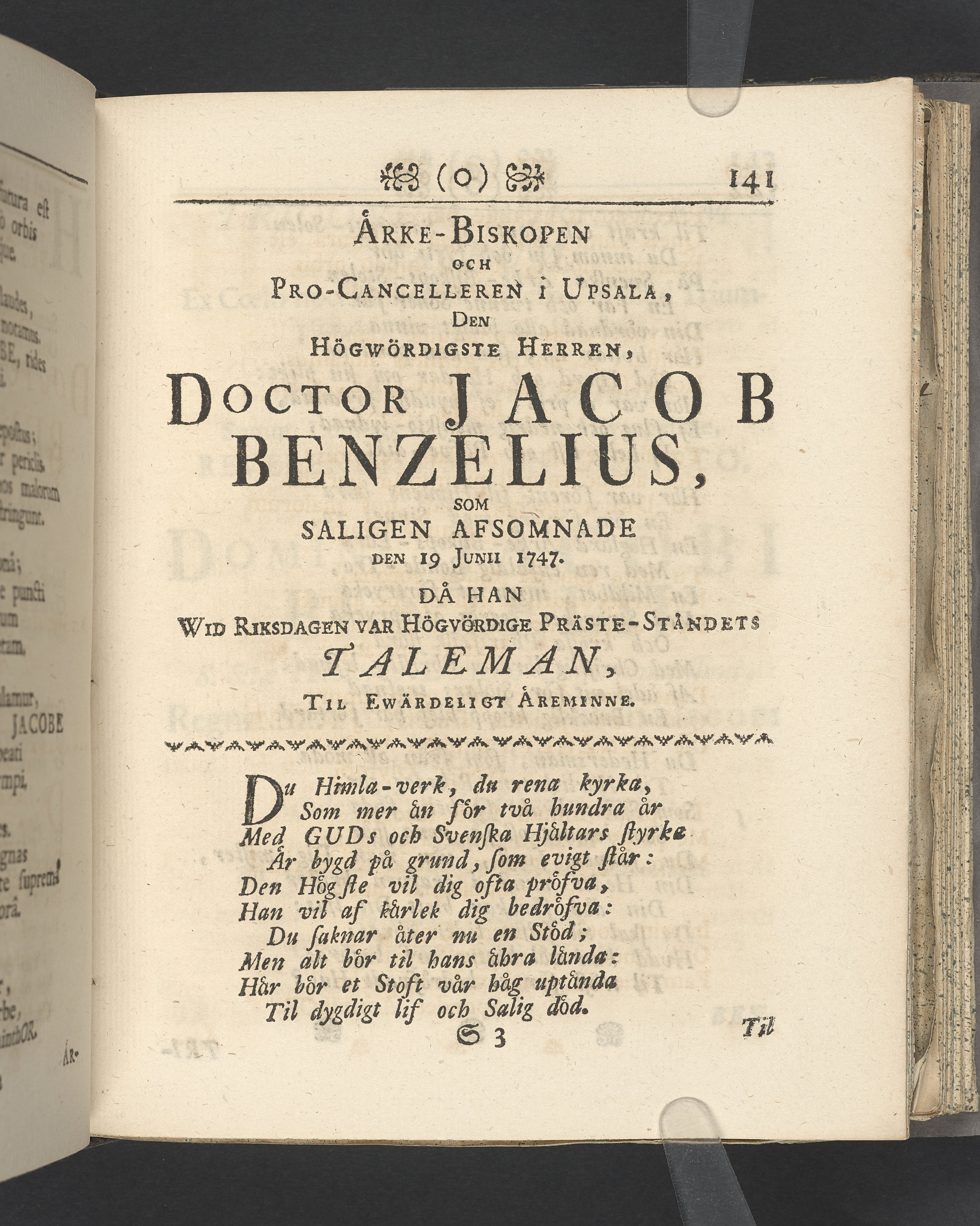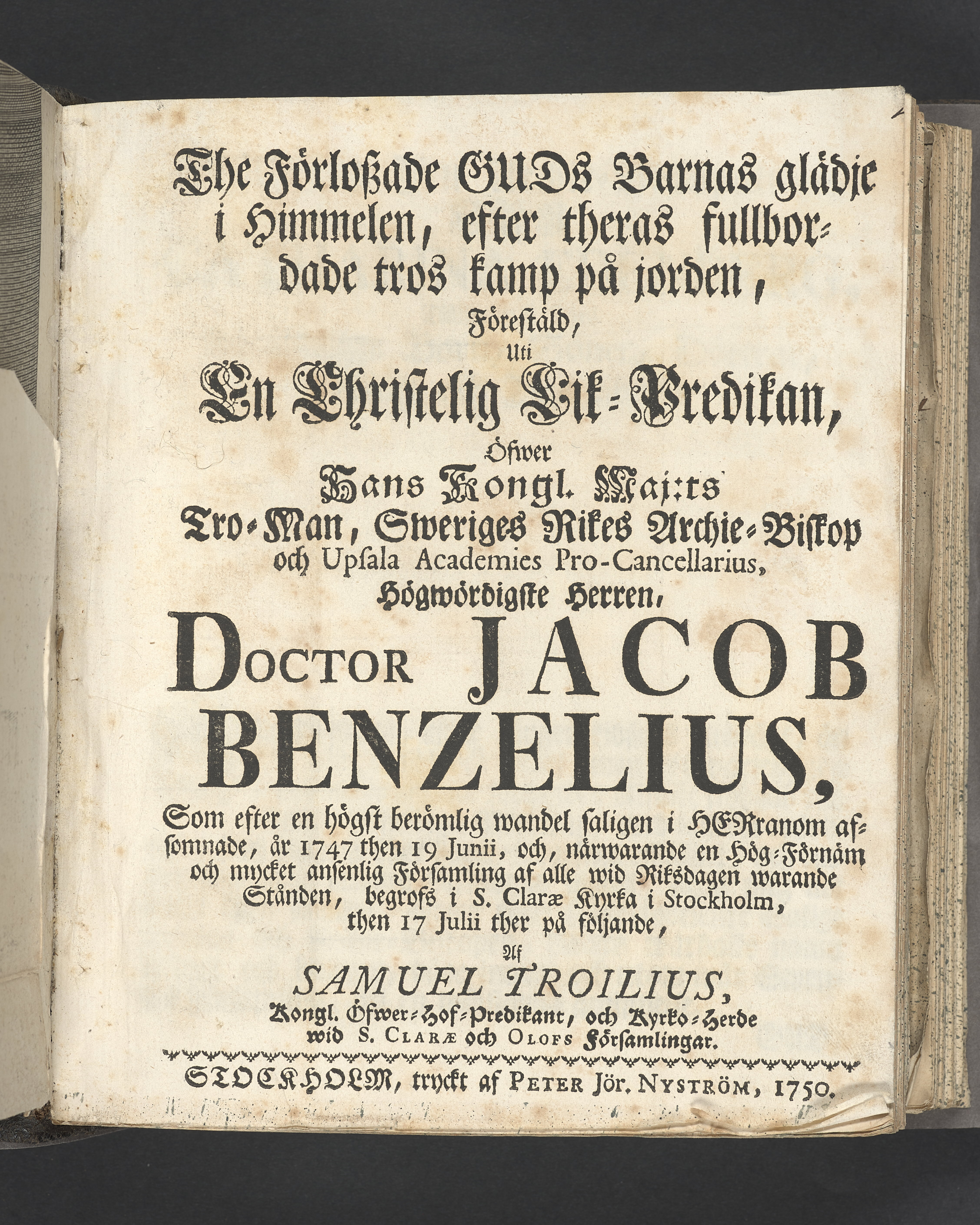 Likpredikan över biskop Jacob Benzelius