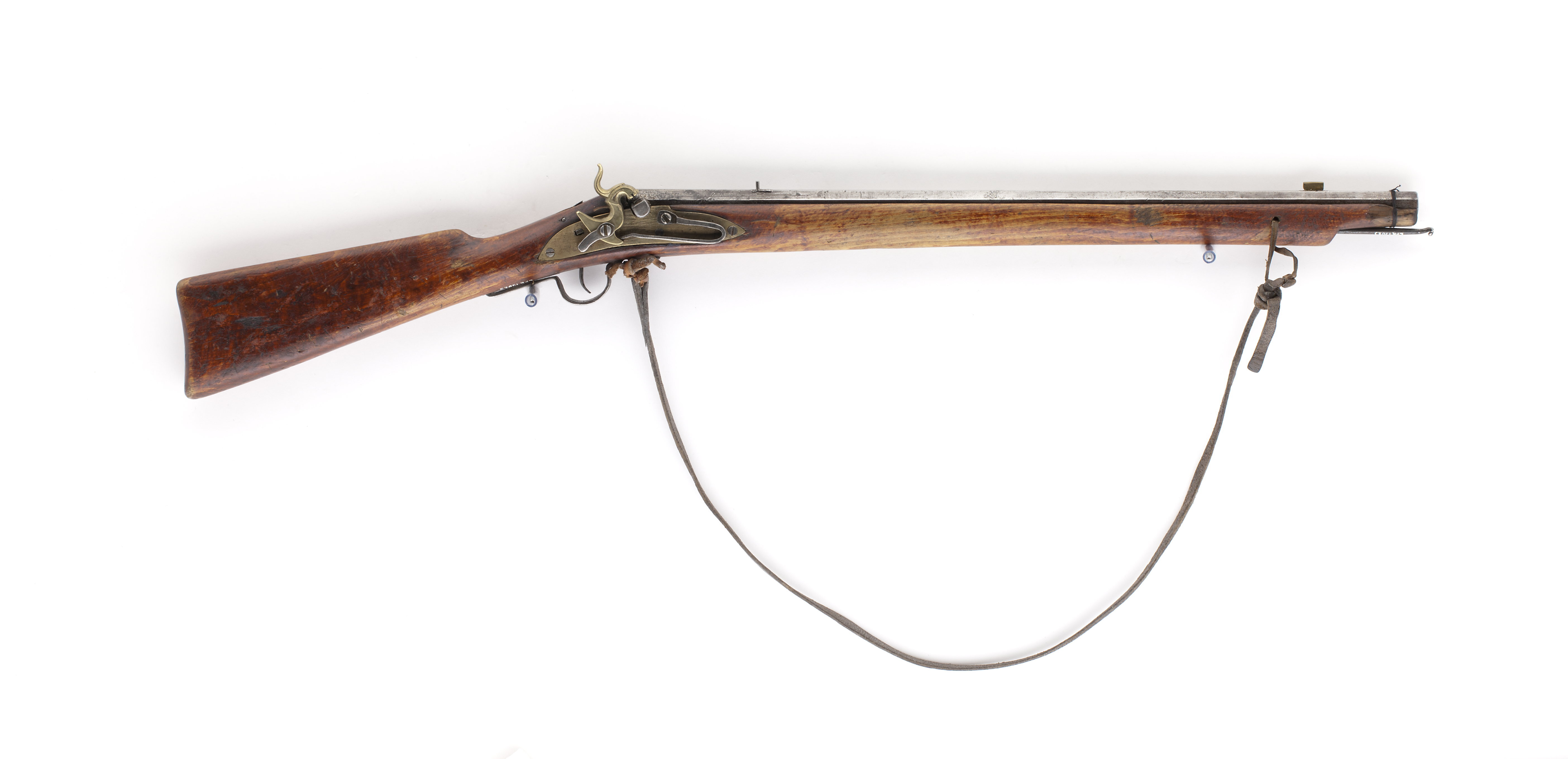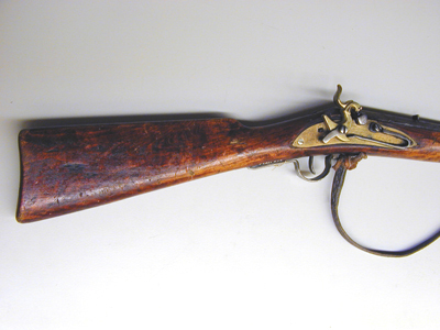 Åttsidig pipa av stål avsmalnande framåt, åtta smala räfflor med skålade bommar. Undersidan endast grovbearbetad, ovansidan polerad. Svansskruvblad med avfasade hörn baktill, kanterna fasade, kraftigt fasade närmast kammaren. Plundertrumma med rundad undersida, ovansidan plan med räta hörn. Bakom siktet dekor av inslagna halvcirklar. Framför siktet fram till mynningen inpunsade punkter i en längsgående rankdekor. På vänstra övre fasningen vid pipbasen stämpel: "C I B". Riktmedel: Inlaxat ståndsikte av stål, avlångt, inlaxat stolpkorn av mässing. Fästning: Laxning för ett häfte framtill på pipan. Pipan fäst uppifrån med krysskruven, en vanlig träskruv samt av den bandformiga topprörkan. Slagsnapplås med plant låsbleck av mässing, mycket svagt fasade kanter. Hane av mässing, s-formig med plan sida, hanhuvud med längsgående urgröpning i sidan. Hanfoten stor och kraftig. Slagfjäder av stål, omvikt, fäst med skruv i blecket, greppar om främre delen av hanfoten. Helspänn på bakre delen av hanfoten. Studel av stål, ena änden vinklad, gängad och fäst i blecket, andra änden fäst med stålskruv. Stång- och stångfjäder av stål på bleckets inisda. Fästning: Två träskruvar från h. sida. Avtryckaren platt och något svängd. Helstock av trä med kolv av närmast fransk typ, rak med näsa och lätt insvängd kolvände. Sluten laddstocksränna, öppen in till piprännan mitt under pipan, l: 220 mm. Varbygel av stål, plan, bred, baktill smal och fyrsidig och indriven i kolven, framtill platt och fästad med en träskruv. Bygeln fram försedd med en förtjockning, genom vilken går ett hål för bärremmens fästning, hål genom framstocken för bärremmens fästning framtill. Tillbehör: Laddstock av stål med enkel krok i änden.