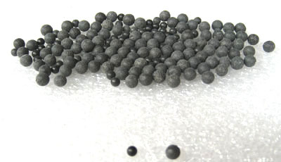Hagel, ca 95 stycken, av ljusgrått bly med en diameter av 4 mm.