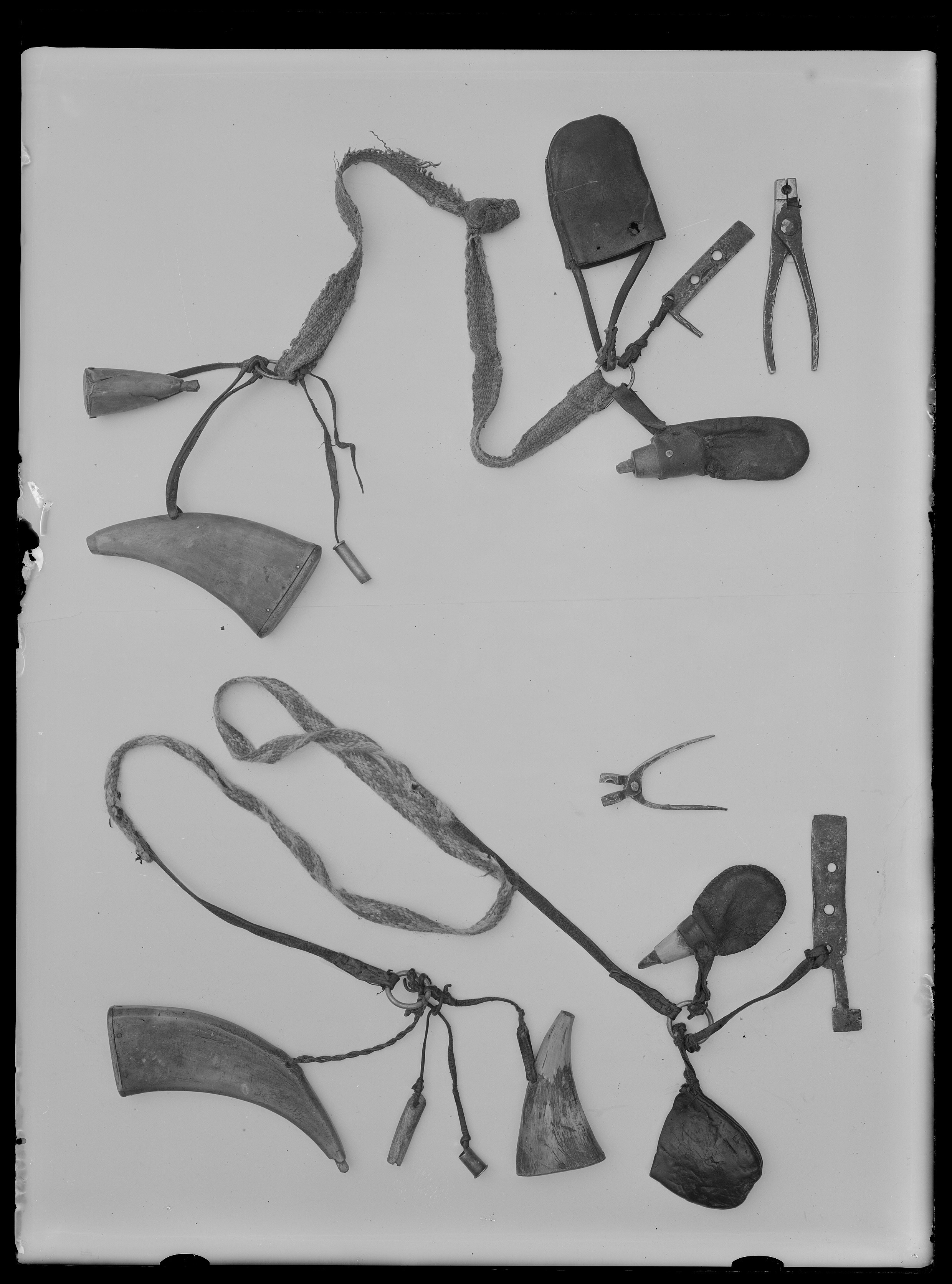 Kultång, ingående i kruttyg till slagsnapplåslodbösa nr 13023, nordsvensk typ, 1800-talets mitt. Kruttyg nr 13024-13031, axelrem nr 13808.