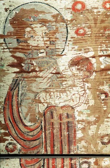Kondition: . Färg: de målade bilderna är starkt fragmentariska, några nästan helt utplånade. Orgelhuset består av de delar som inneslutit själva orgeln, av vilken nu endast väderlådan är bevarad, samt en vägg med en dörr som lett in till bälghuset.