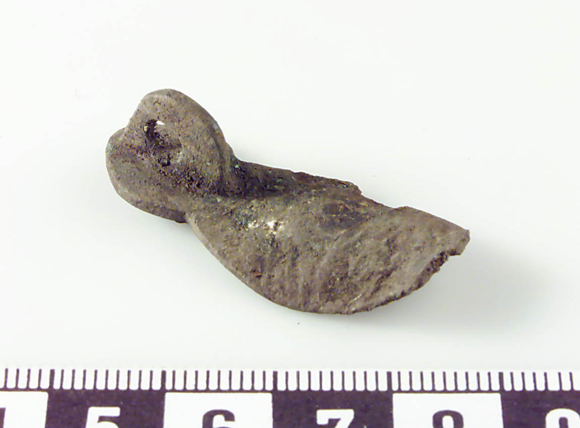 Ovalt, insnörd vid övre delen som därmed får en rundad form. På beslagets ovansida en upprättstående ögla.