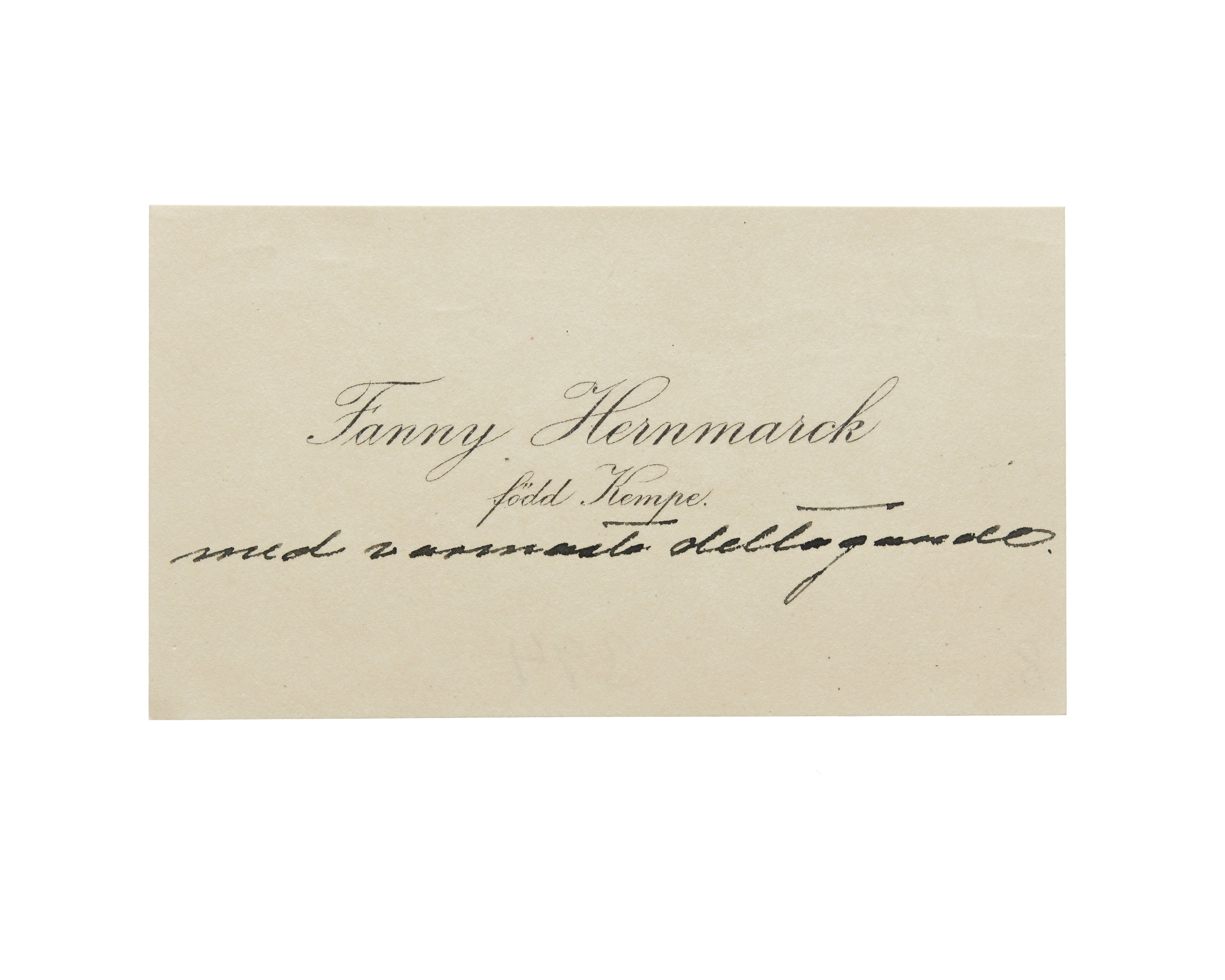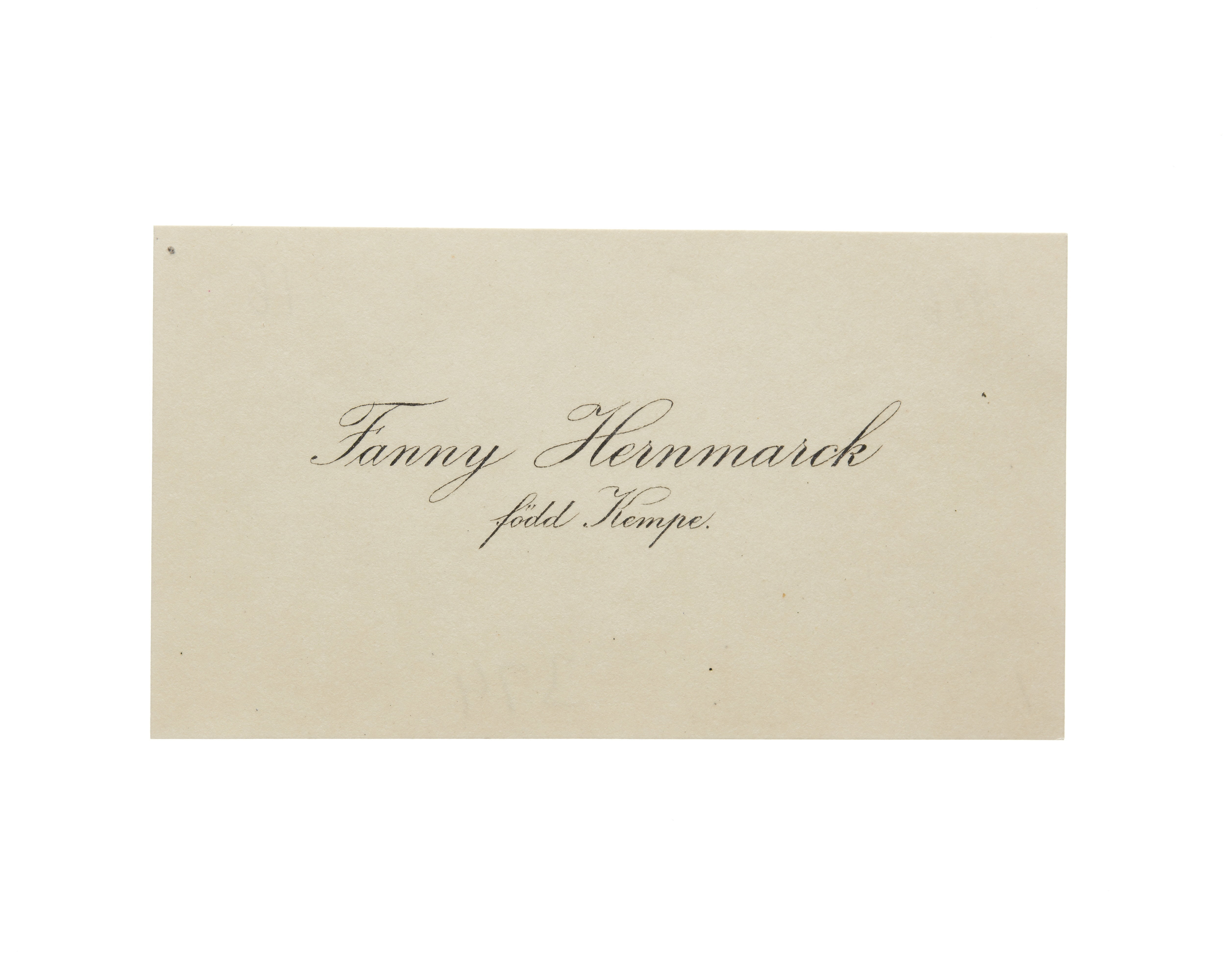 Visitkort från Fanny Hernmarck, f. Kempe.