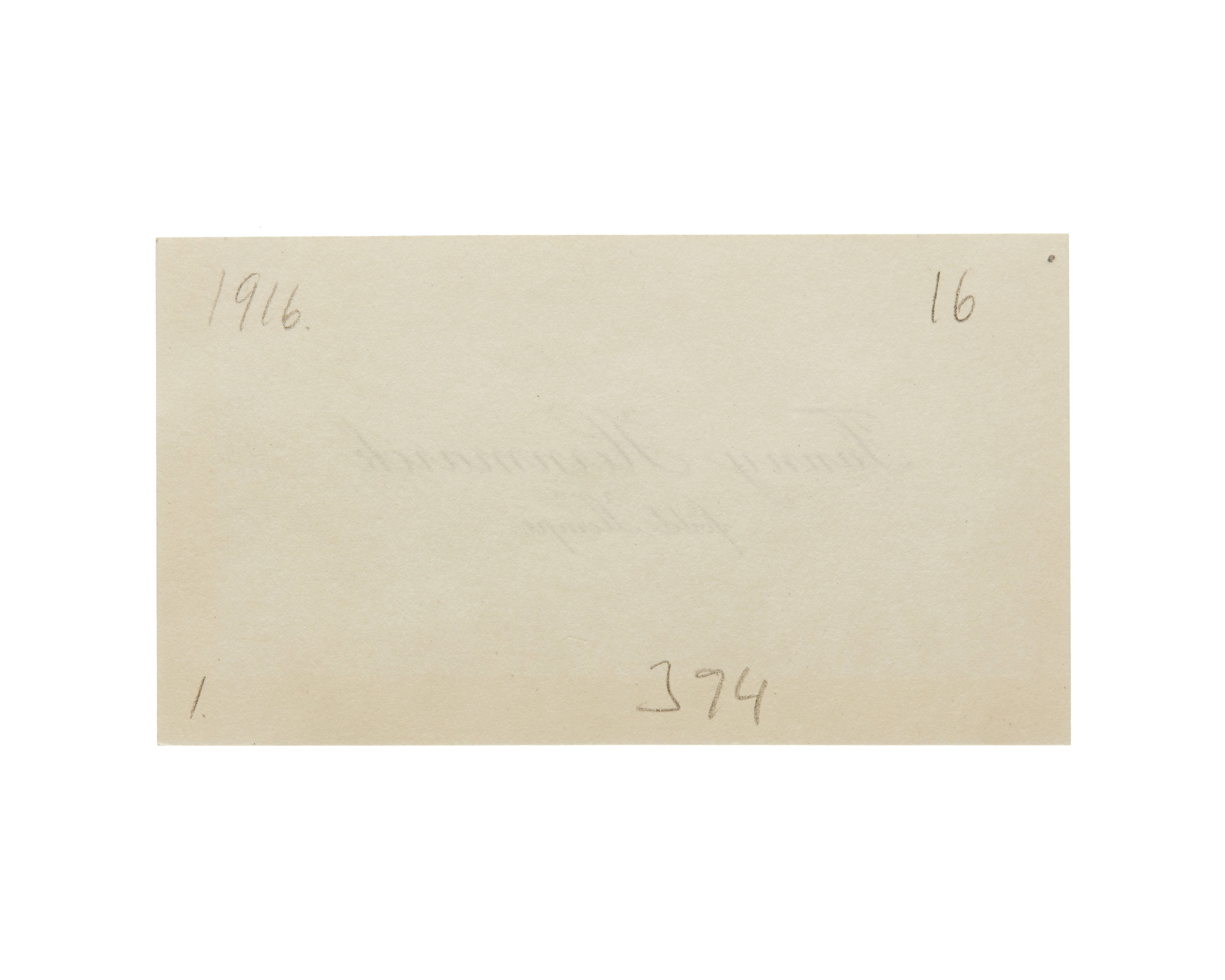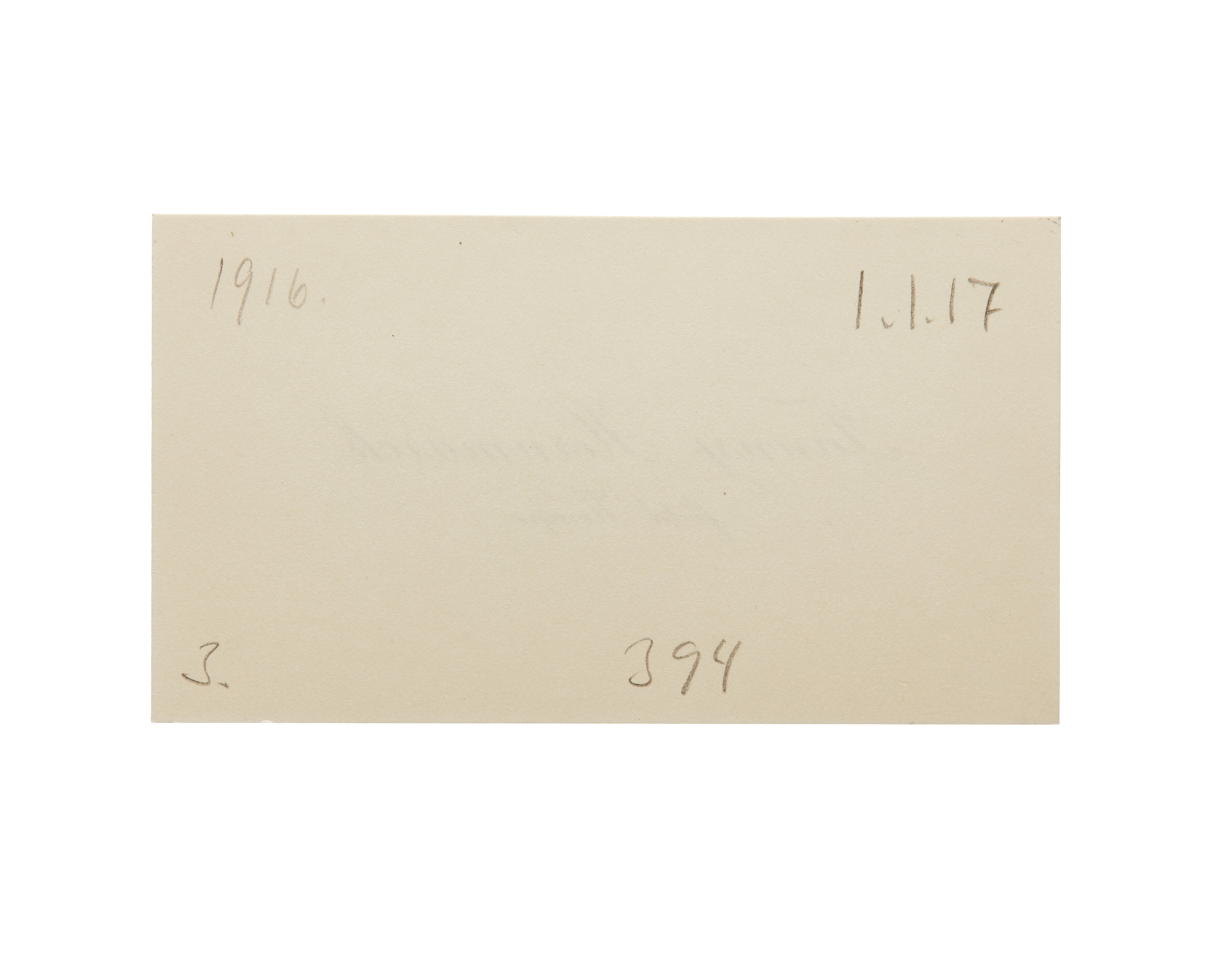Nio visitkort från Fanny Hernmarck, f. Kempe. Första kortet daterat 1916. Andra kortet daterat 1916 samt sorgkant. Tredje kortet daterat 1916. Fjärde kortet daterat 31.12.1917. Femte kortet dateratv 1918. Sjätte kortet daterat 1919. Sjunde kortet daterat 26.01.1919. Åttonde kortet daterat 1921. Handskrift "Med varmaste deltagande". Nionde kortet daterat 1922.