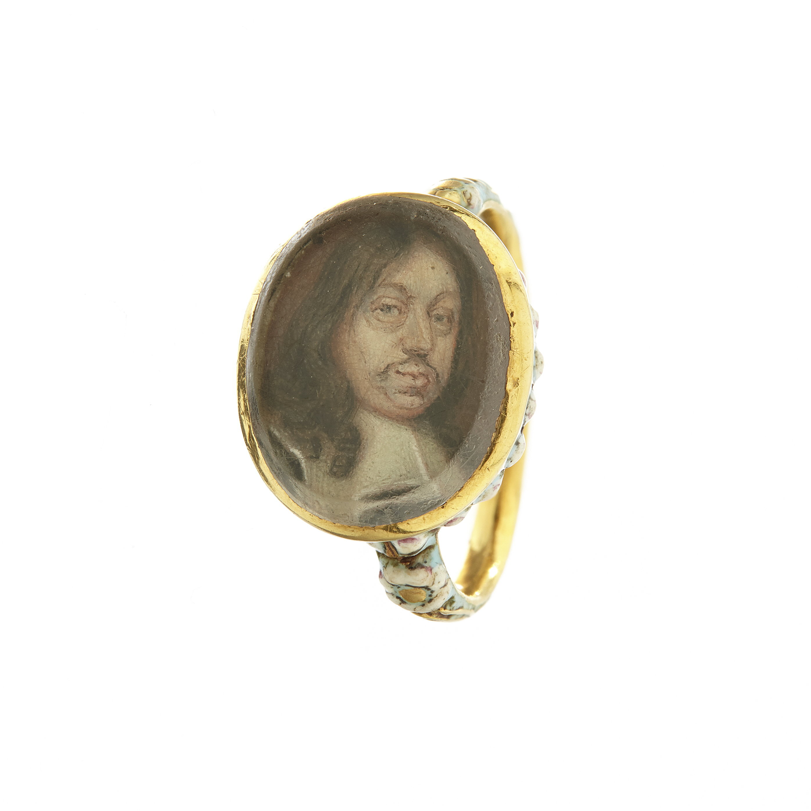 Ring med miniatyrporträtt av konung Karl X Gustav (1622-1660), 1650-tal.