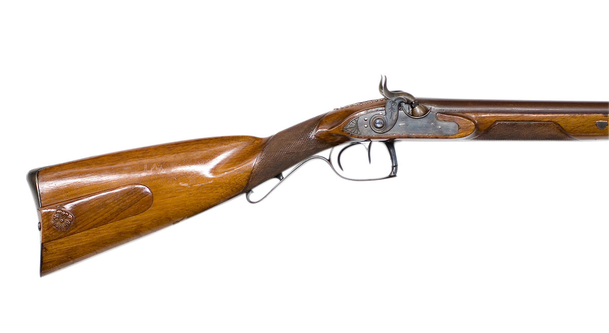 Slaglåsdubbelbössa, piporna med Liegestämplar ca 1820-1850.