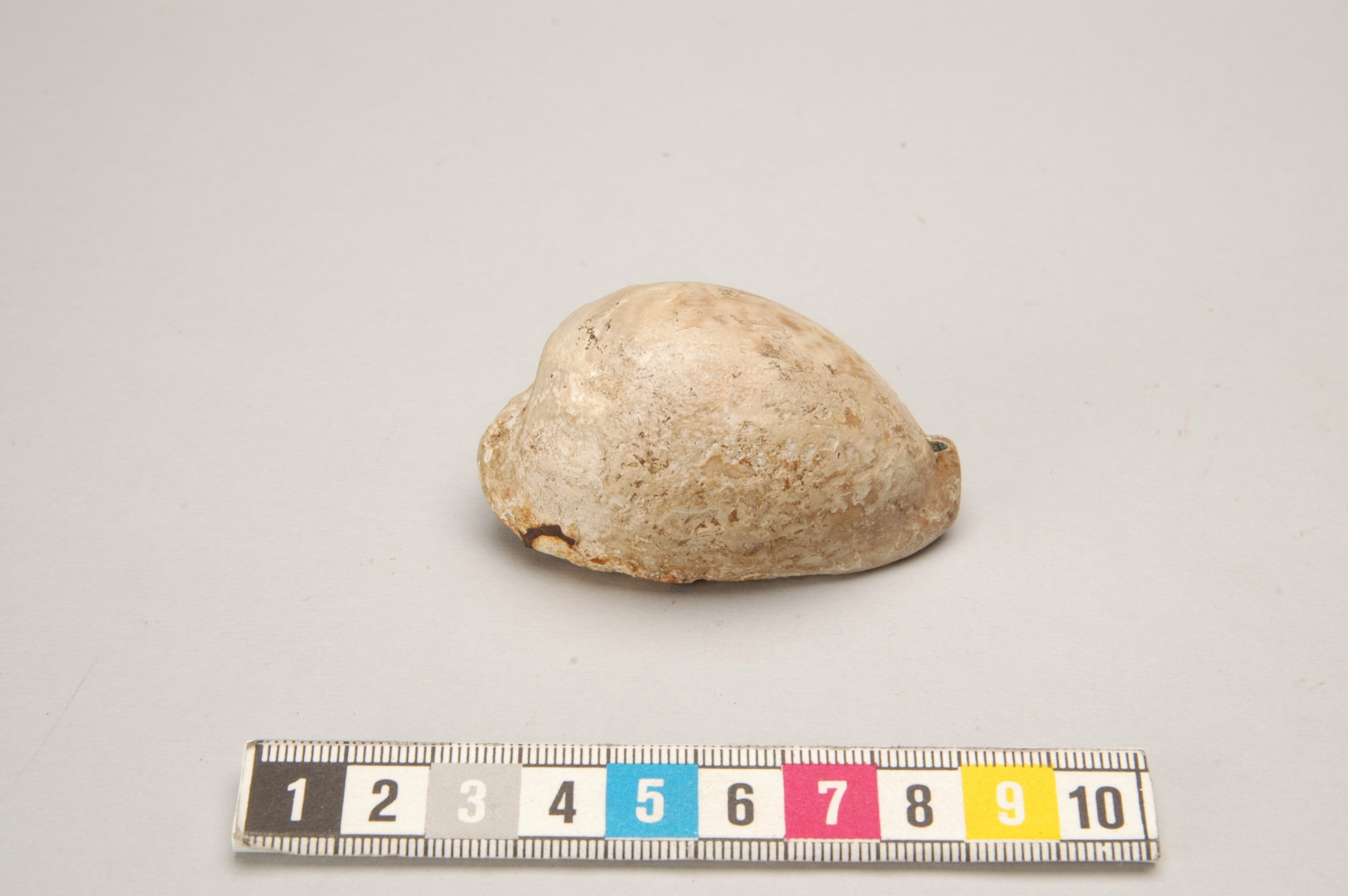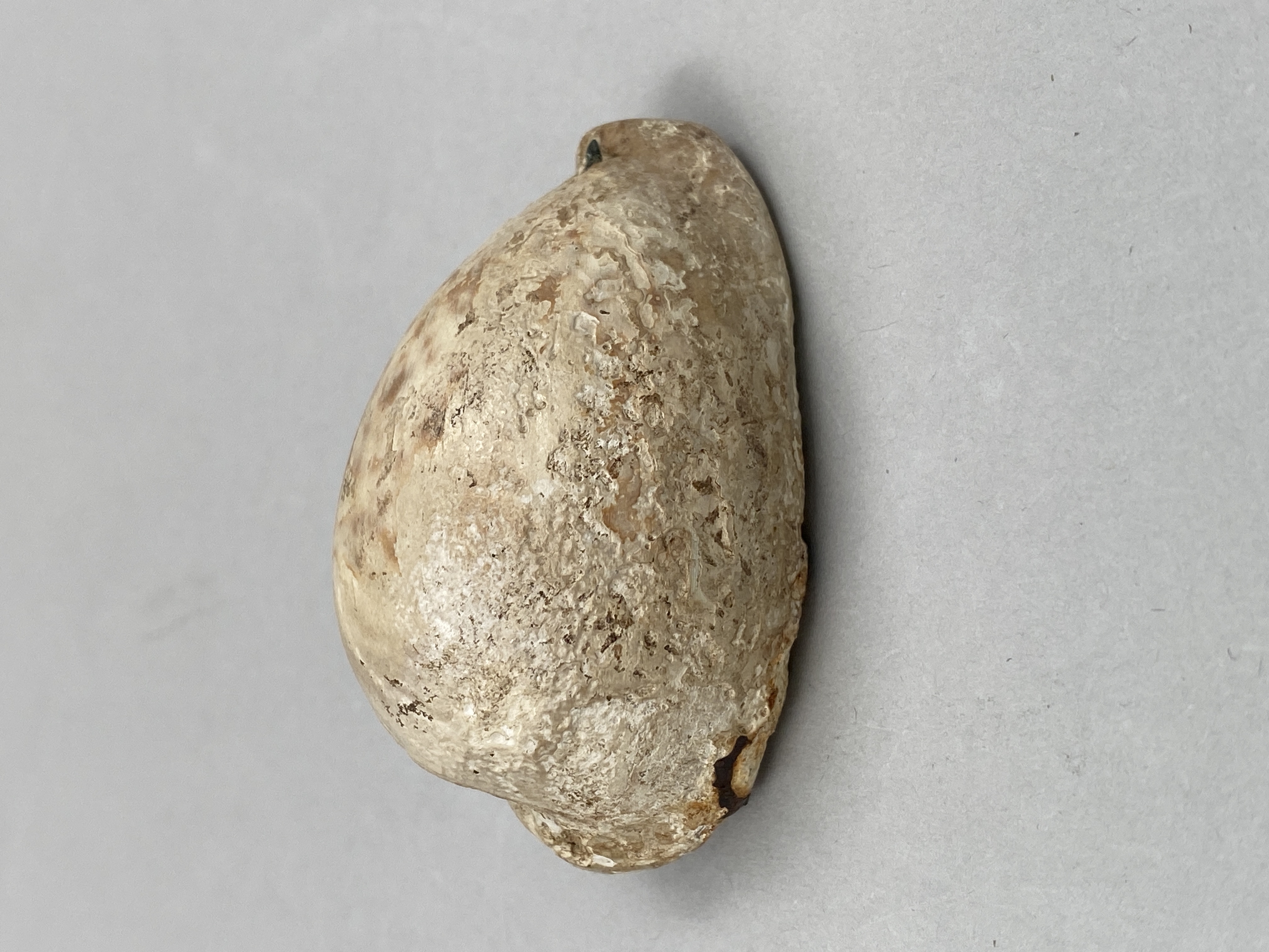 Mycket väl bevarad snäcka. "Pantherfläckarna" syns fortfarande tydligt. Har spår av ring för upphängning.