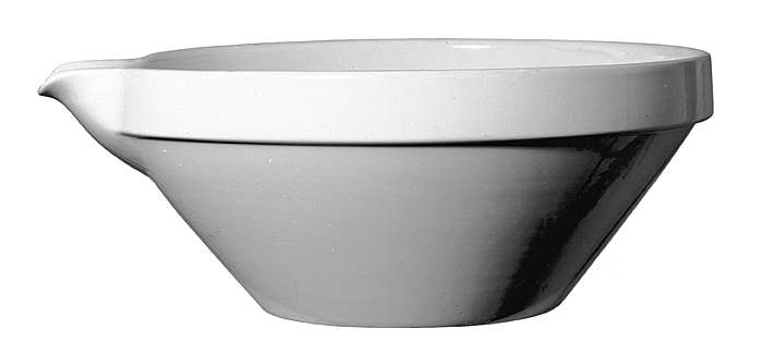 MJÖLKBUNKE (mjölkfat) Av porslin. Omvänt konisk, med plan botten, rakt uppstående bred bräddkant och utsvängd bred snås. Höjd: 16 cm.; diameter: 37,5 cm. Svensk tillverkning.