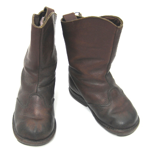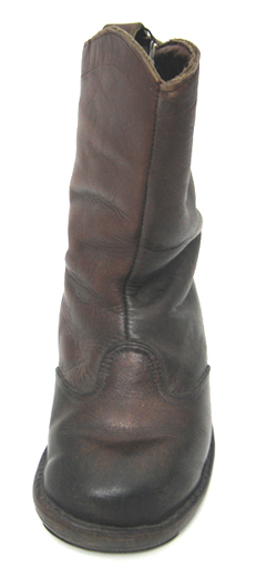 Stövel skuren i reseft och skaft i två delar som förenas med en söm mitt fram och en hopspannad söm mitt bak. Reseftet som är bågformat över vristen når fram till klackens början . Reseftet förenas med skaftet med dubbla sömmar. Bakkappan har förstärkts. Stövelns innersula är fodrat med benvitt fårskinn samt 80 mm upp i stövelskaftet. På skaftet bak vis sömmen finns en lädertamp, läng 50 mm, bredd 15mm. Den kraftiga sulan är uppbyggd av tre läderstycken. Klacken av gummi är fastsatt med 8 stift. Tåpartiet har förstärkts med ett formpressat tåjärn.