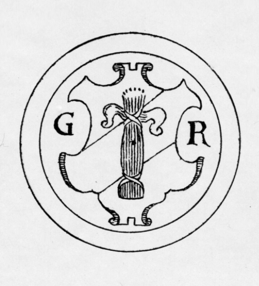 Käpp av något krokig, endast grovbearbetad gren av kanelträ med barken delvis kvar. Knopp av förgyllt silver, l: 42 mm med mycket tillbucklad, skivformig överdel, d: ca 40 mm, uppåt någotvidgad holk. Graverad dekor, på holken moreskrankor, runt kanten en krans samt på ovansidan en vapensköld med Vasavapnet, en två gånger styckad sköld (fr.o.m. 1540-talet), skölden flankerad av G och R. Doppsko med cylindrisk holk av förgyllt silver med dekor som på knoppens holk, nedtill en profilerad kantring, päronformig spets av stål.