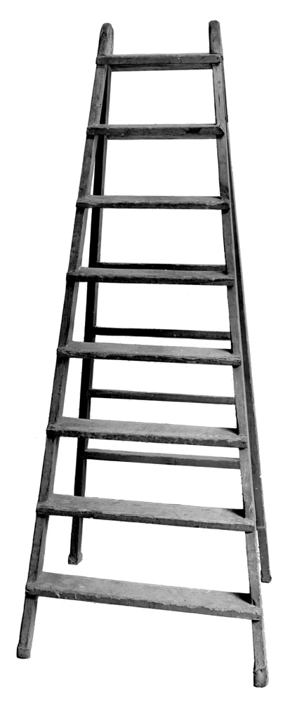 STEGAR (trapp-), tre stycken (mindre). Av furu. Dubbla i två hälfter, något avsmalnande uppåt, vadera hälften med smala sidostycken, två stegar med åtta trappsteg, en med elva, alla ingradade i sidostyckena. Hälfterna upptill sammanhållna av ett på vardera utsidan liggande gångjärn. Längd: 2,37 och 1,64 m, bredd: 0,7 och 0,6 m. Inköpta av Wilhelmina von Hallwyl under 1880-talets första hälft hos en handlare i Stockholm. Större stegen använd vid rengöring av ljuskronorna och därför kallad kronstege.