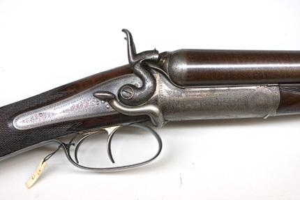 Dubbelbössa cal. 12, Stephen Grant, London ca 1880, tillverkningsnr 4879. Lås tillverkade av Joseph Brazier, Ashes Works, Wolwerhampton, även stämplade Stanton & Co.