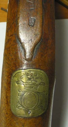 Rund, slätborrad pipa av stål med åttsidig kammare, kanterna på främre delen fasade, ring på de fem övre faserna vid övergången, ytterligare en ring 30 mm därframför. Svagt böjt, baktill tvärt avskuret svansskruvblad. Vid pipbasen möjligen en nästan utplånad stämpel. På v sidofas två stämplar: en otydlig - Z E // L (?, LRK vägl.1921, jfr Stöckelnr 1782) och vapensköld med Sachsens vapen. Riktmedel: Lågt sikte vid pipbasen. Spolformigt, inlaxat korn. Fästning: Två häften. Pipan fäst med krysskruv underifrån samt två ej ursprungliga pipstift av stål. Hjullås med välvt låsbleck, utvändigt hjul fäst med krampa kl. 6, fängpannelock med svängd gavel, låg krutskärm, fängpannelock med rörlig arm. Hanen saknas. Hanfjäder med rombiskt fasade kanter, B-formig studel. På låsbleckets insida stämpel H C // M (eller HGM, Stöckelnr 2803). Fästning: Tre låsskruvar. Fjäderbelastad avtryckare. Helstock av valnöt nedsvängd vid hjulet, oval kolvände, enkelt skuret blad vid svansskruvbladet. På bladet en rektangulär stämpel: I S // M, vid sidblecket brännstämpel F. Beslag av stål. Genombruten kolvkappa med oval mittplatta, med rund, plan skruvplatta i mitten och konkava sidor, genombrytningen närmast en slät oval platta mot kolven, rundade flikar och därinnanför runda hål. Mjukt s-formigt svängt sidbleck till de två främre låsskruvarna, konturerat löv vid bakre skruvhålet, enkel, graverad bladdekor på mitten och på lövet, enkel kantlinje. Bandformigt näsband och rörka. Bandformig varbygel med triangulärt löv vid framänden. På kolvhalsen rundat kvadratisk mässingsplatta med graverat namnchiffer C krönt av kunglig krona. Tillbehör: Laddstock av mörkbetsat trä, l: 250 mm, diameter i framänden 12 mm, i bakänden 7 mm, avbruten baktill. I framänden inslaget en spik så att stocken spruckit.