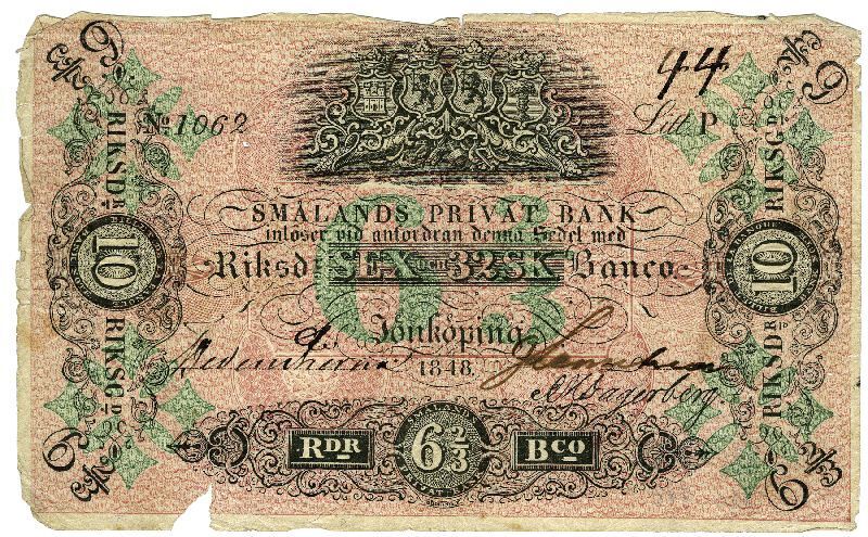 Smålands Privat Bank - Sex riksdaler och 32 skilling banco