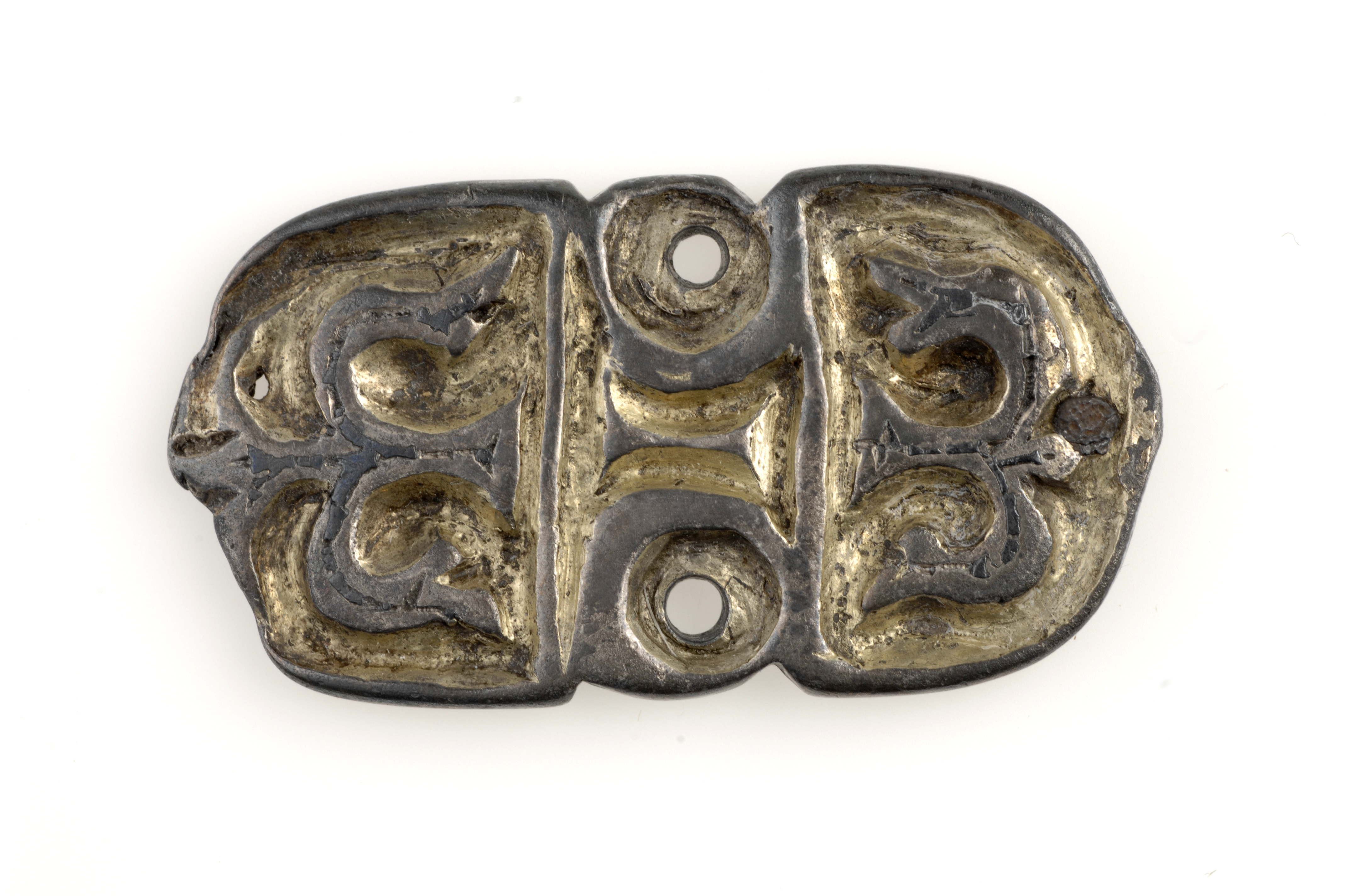 Beslag med växtornamentik. Omgjort till hängsmycke.
