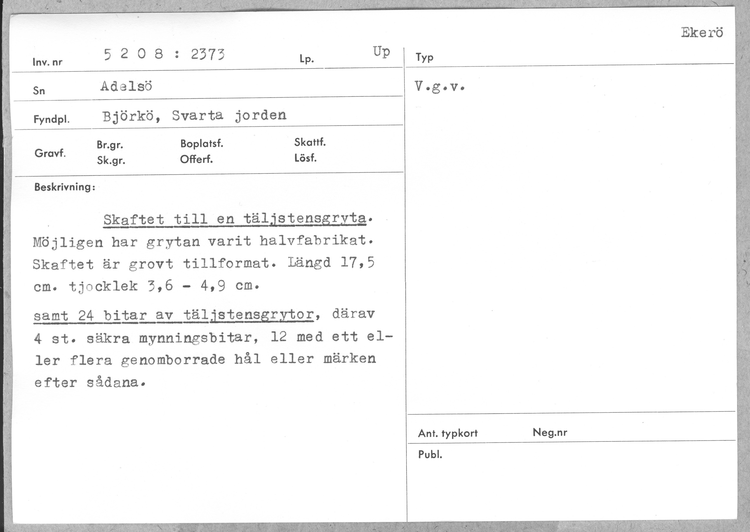 | Föremålsnummer |