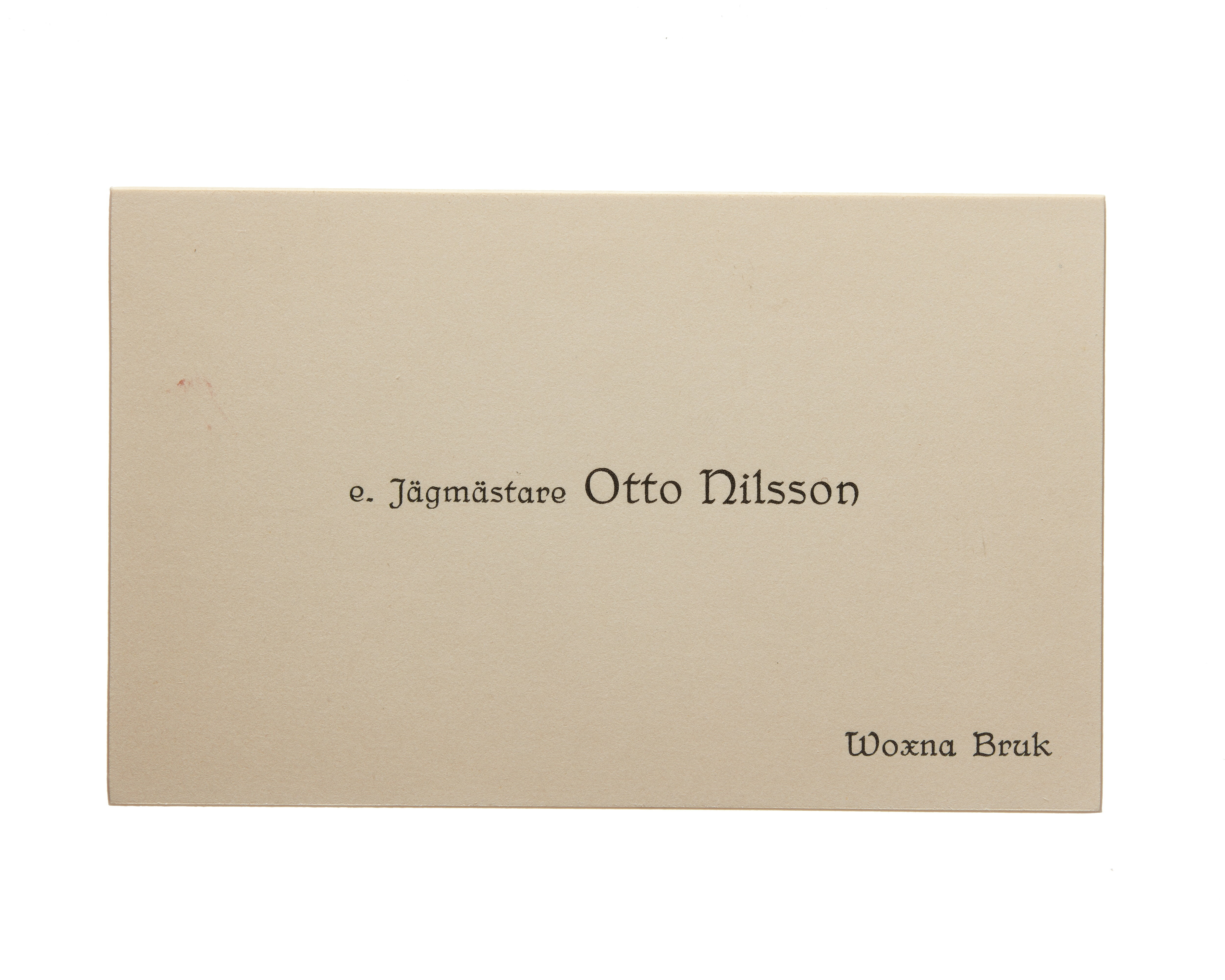 Visitkort från e. jägmästaren Otto Nilsson.