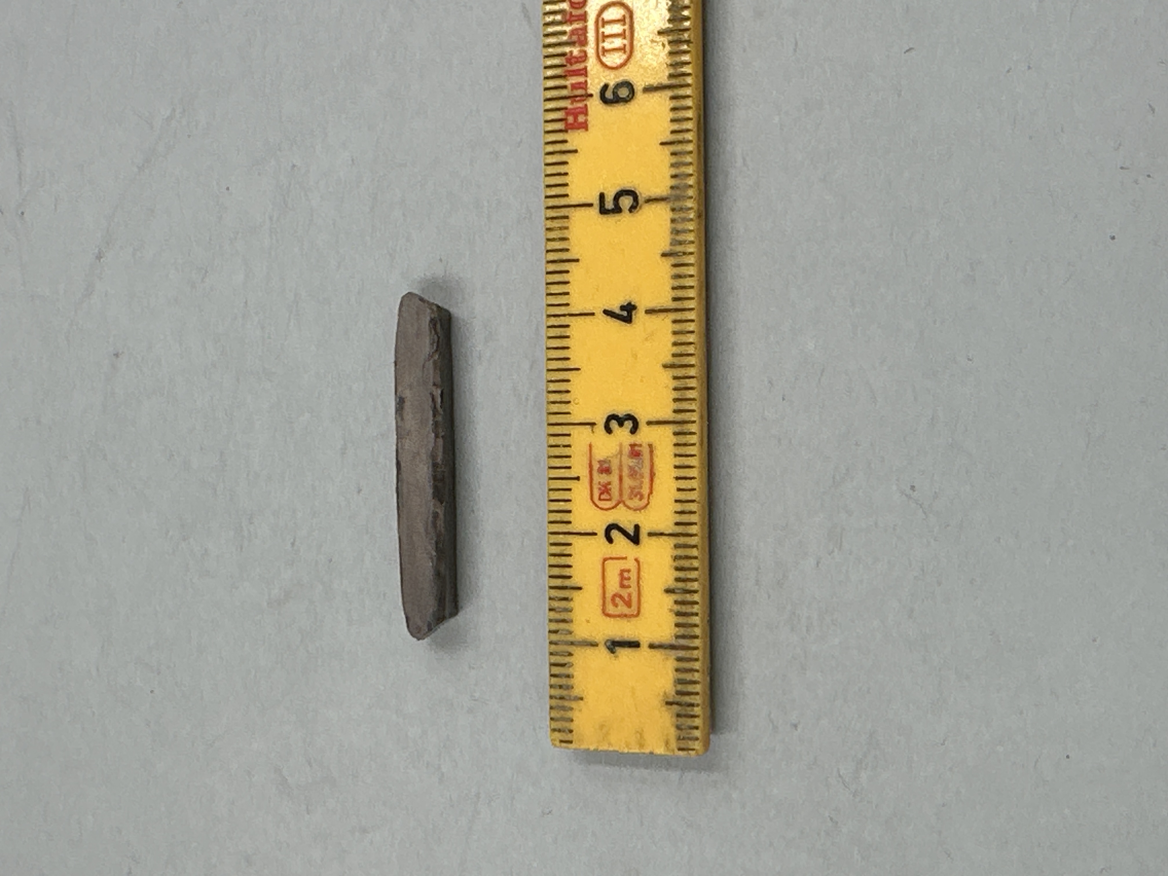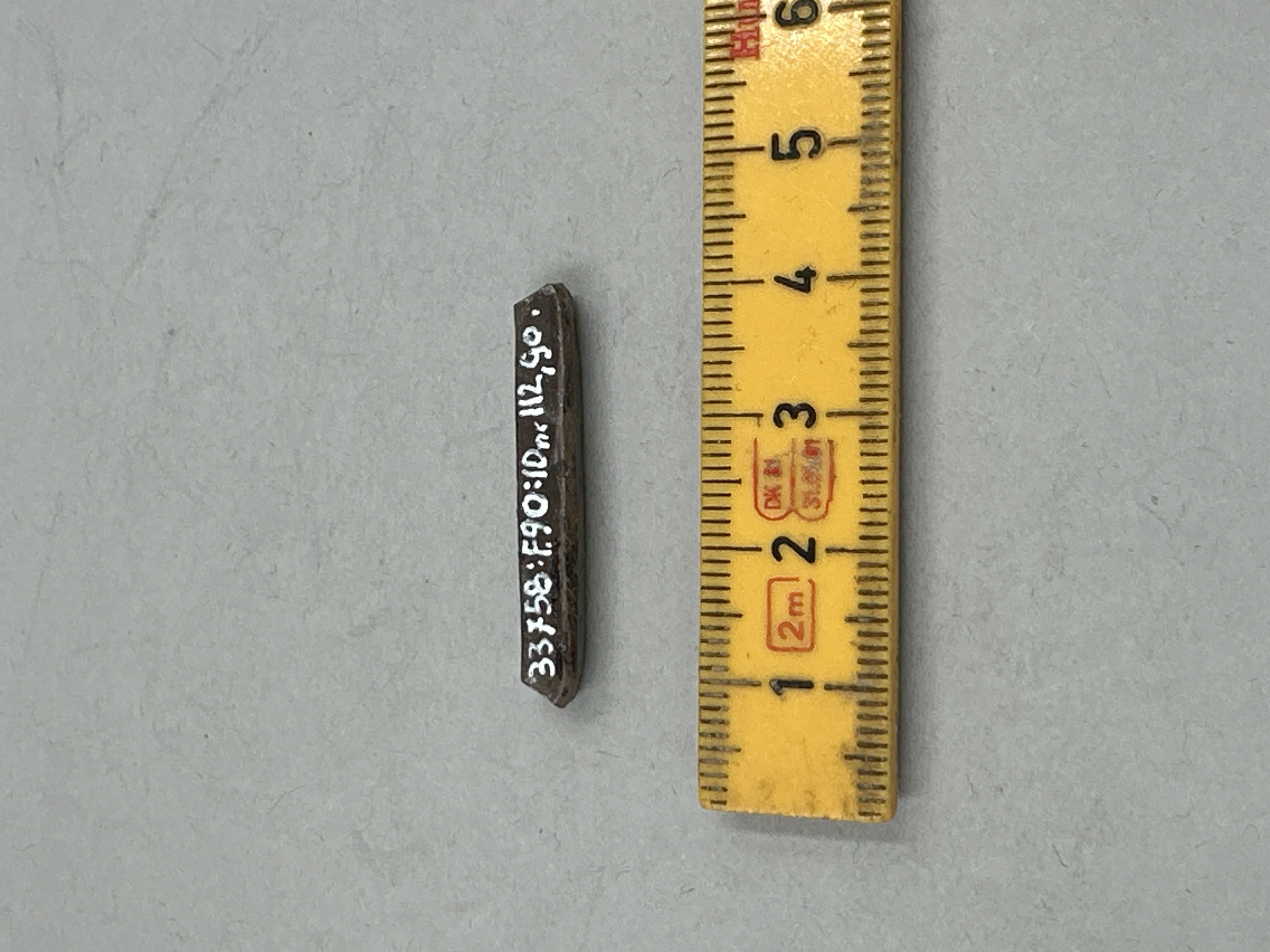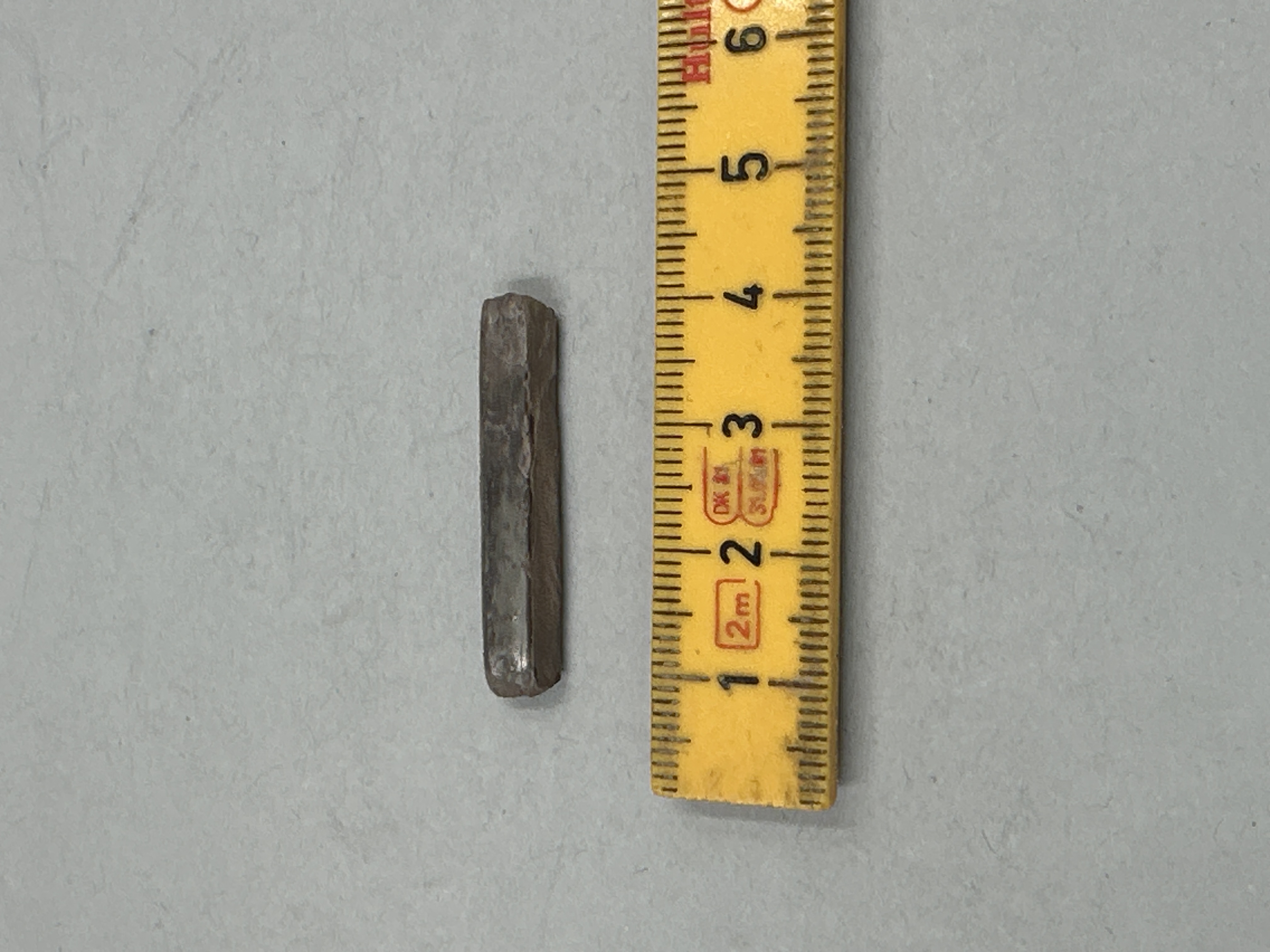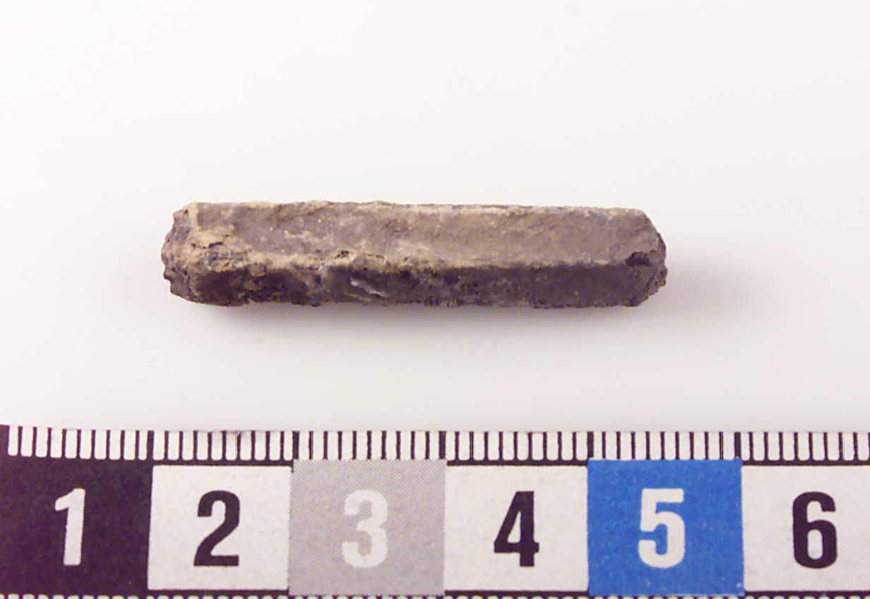 Fyrsidig ten. Avbruten i båda ändar. Skadat ytskikt.