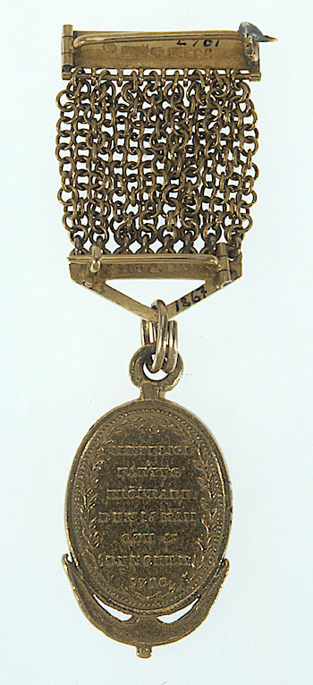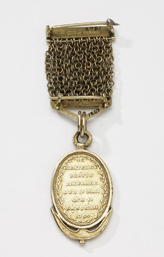 Bröstkedja av guld till Fredrikshamns- och Svensksundsmedaljen nr 1866, Anders Petter Lundqvist, Stockholm 1847.