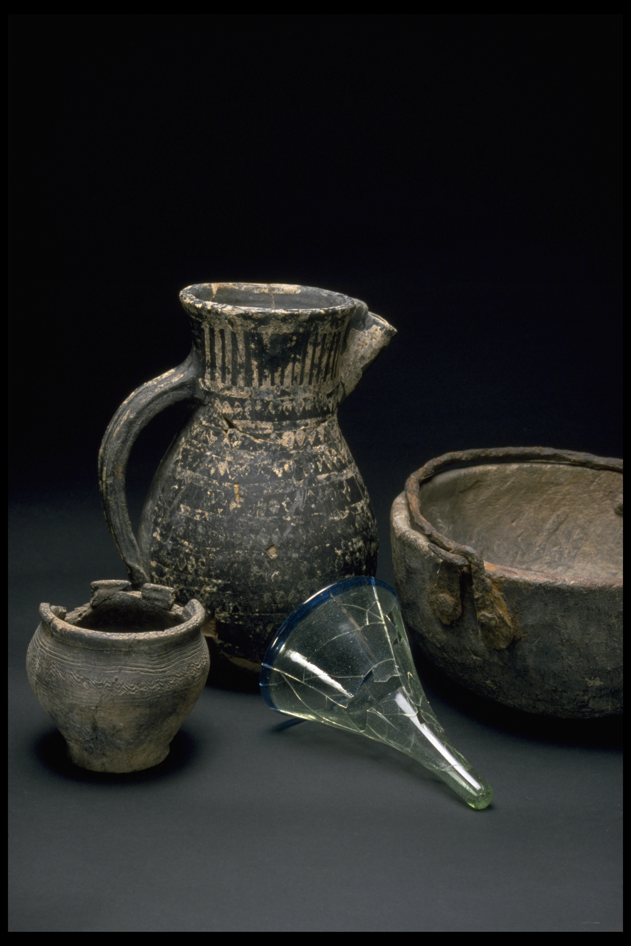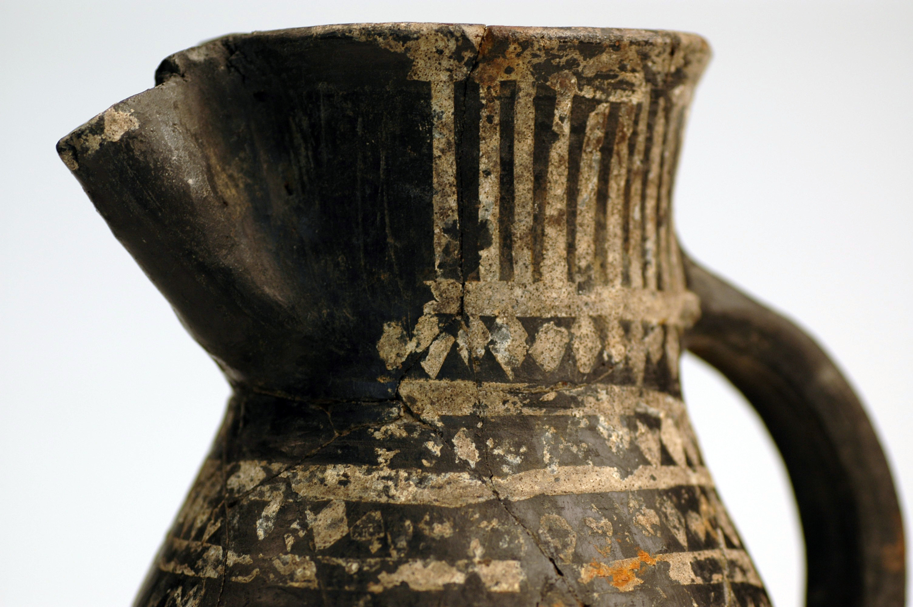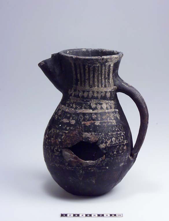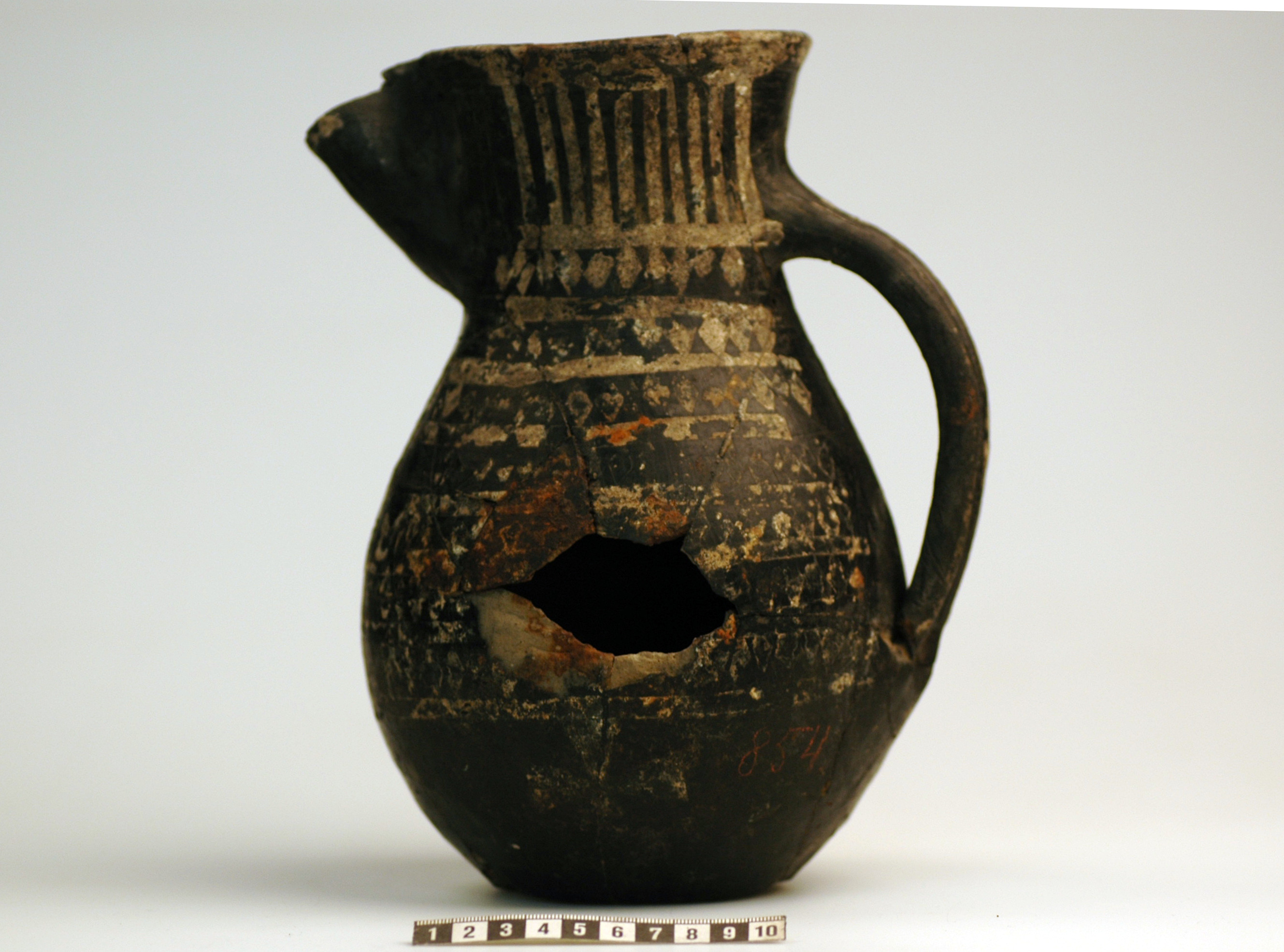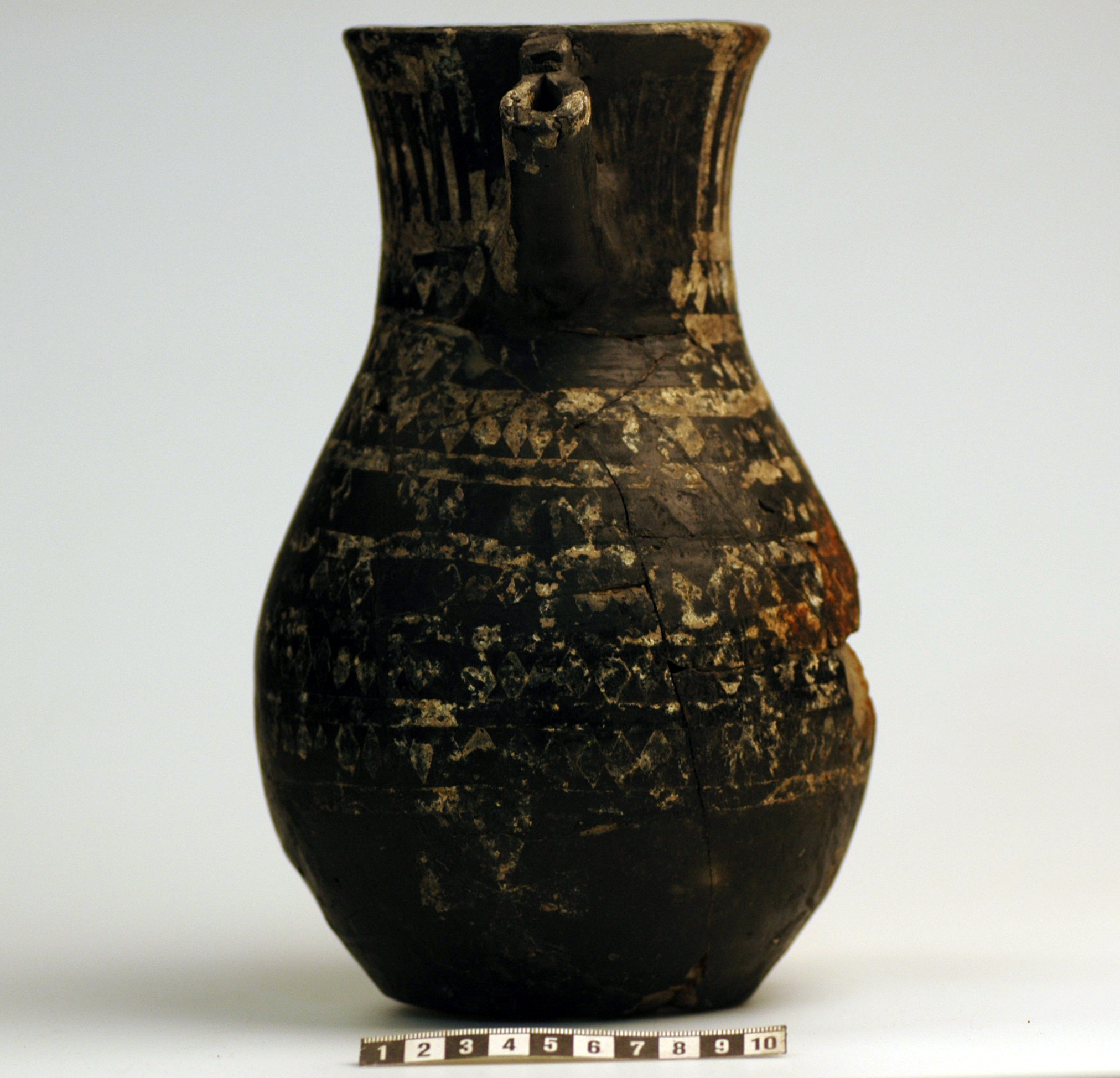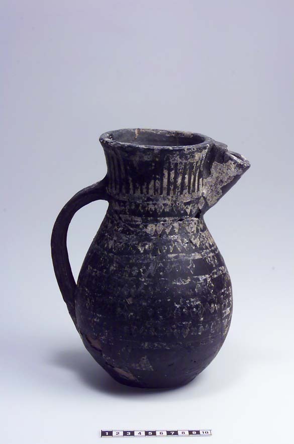 Delvis rekonstruerat tatingerkärl med tennfoliedekor.