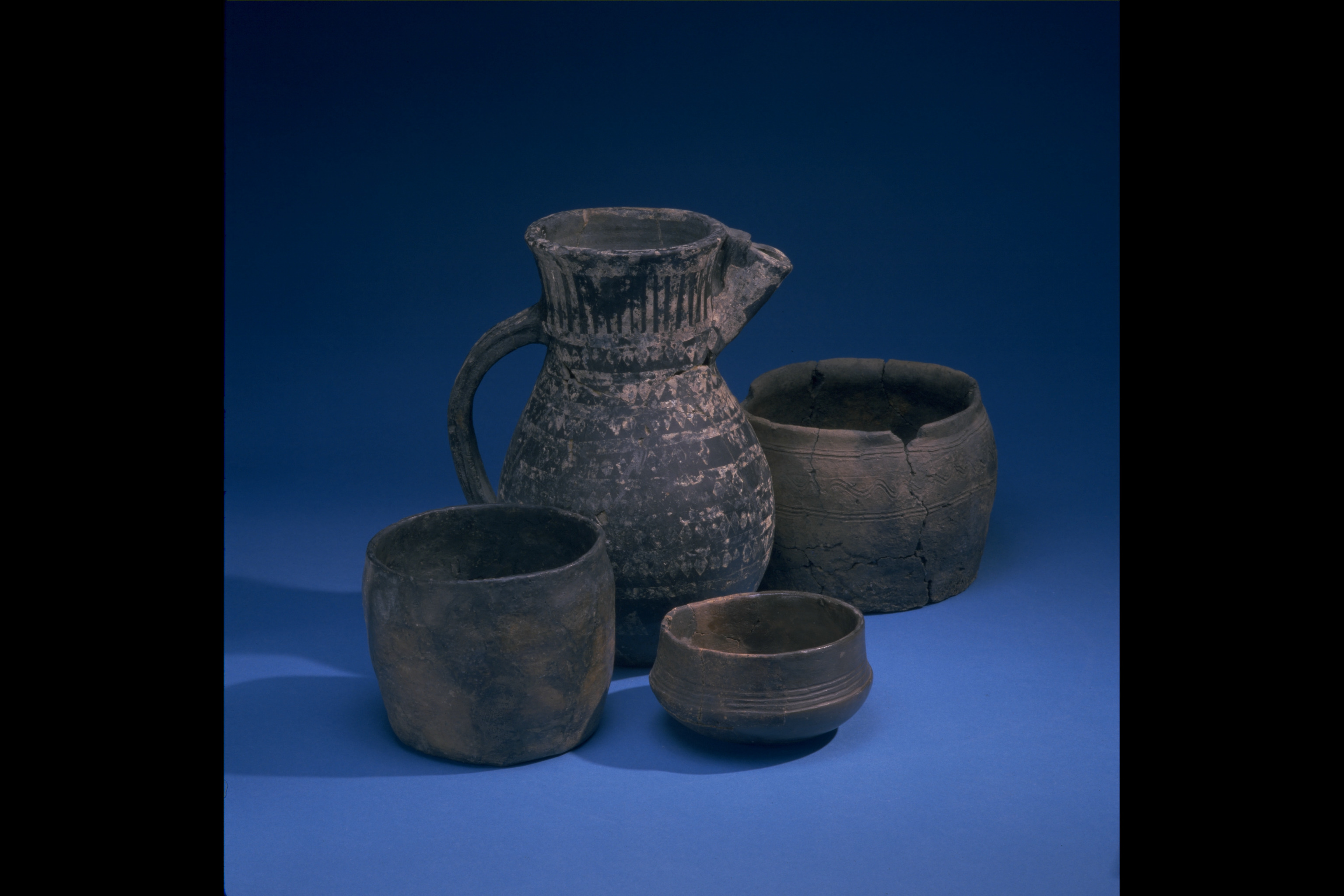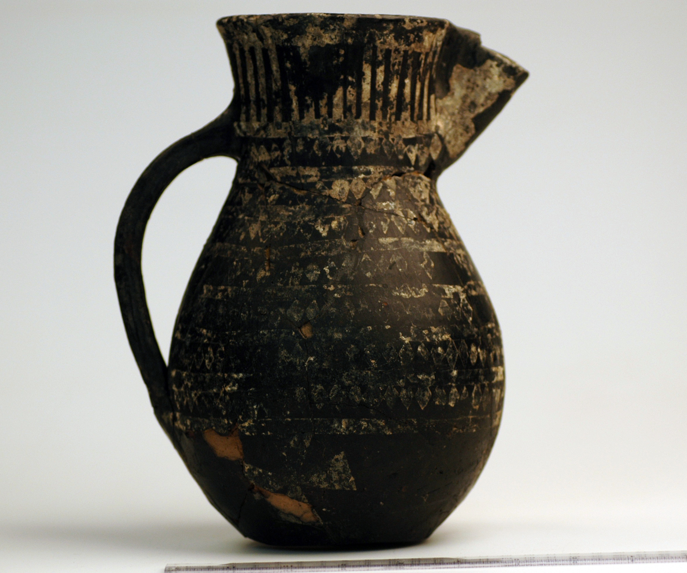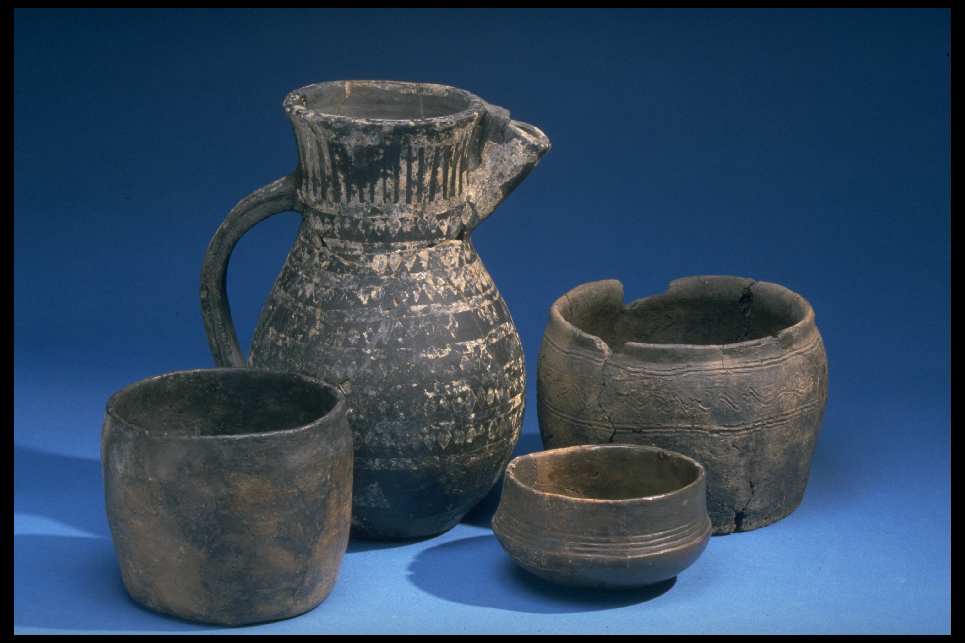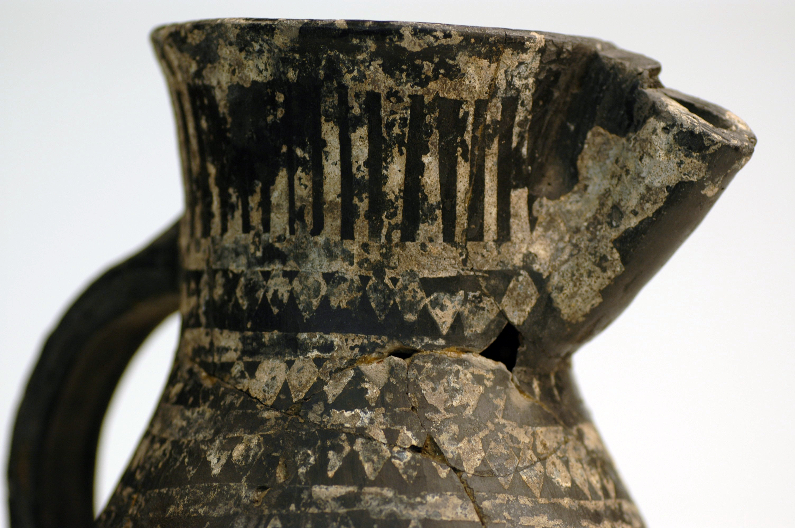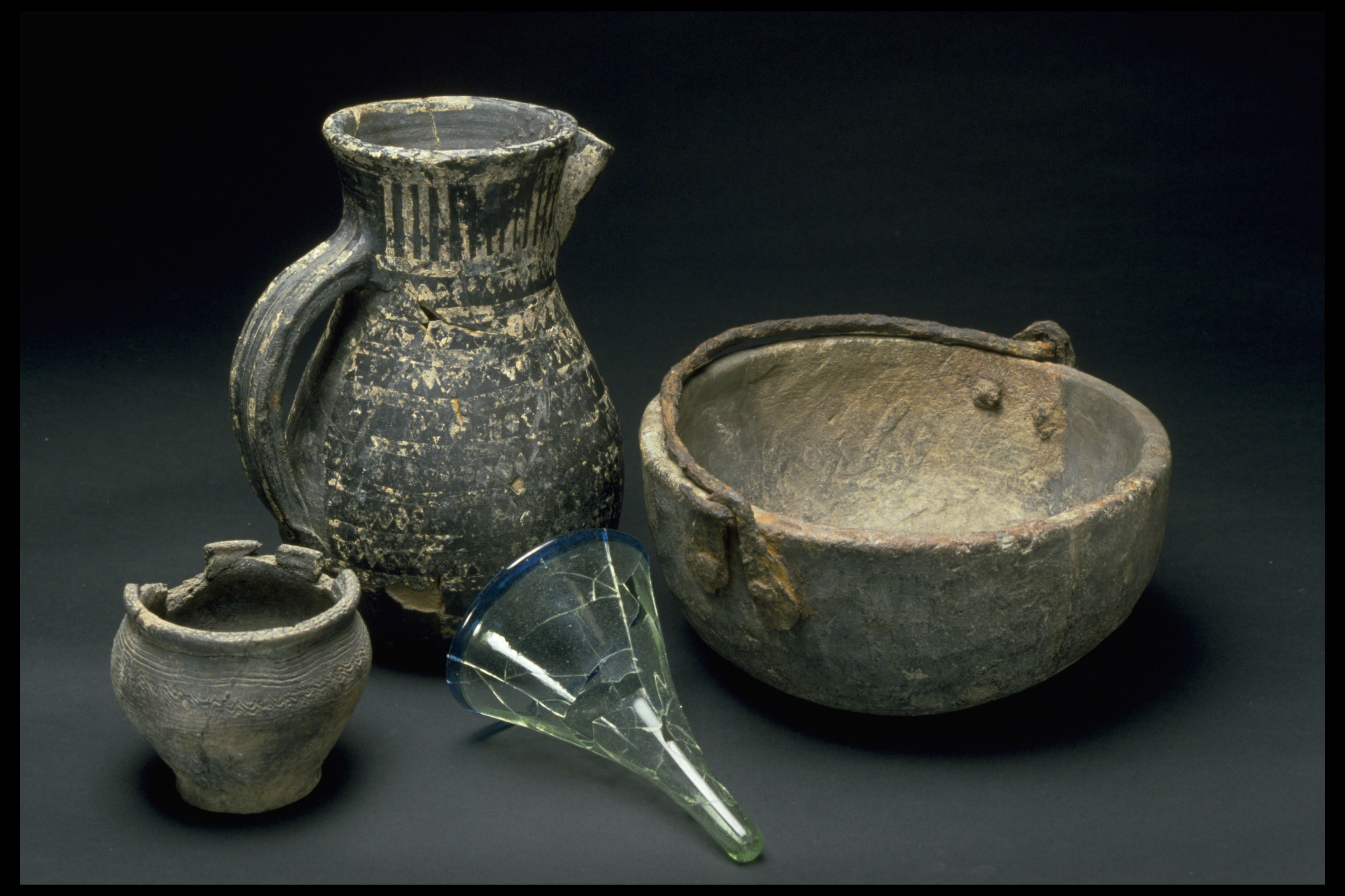 Delvis rekonstruerat tatingerkärl med tennfoliedekor.