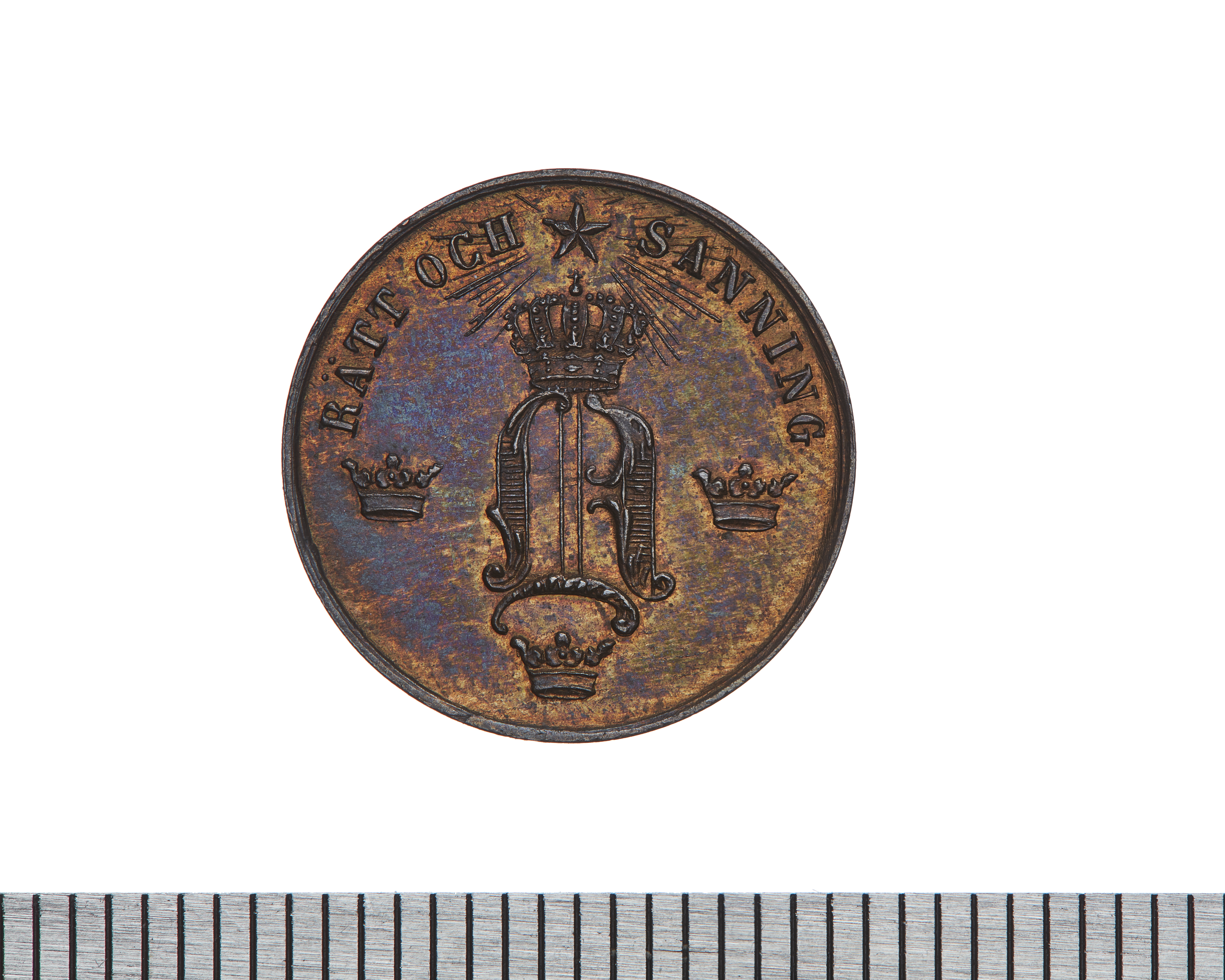 Upphov: Oscar I av Sverige och Norge. Media: Bonnevier, Helena. Ekonomiska museet - Kungliga myntkabinettet/SHM, (CC BY 4.0) Du får bearbeta och dela verket för alla ändamål, även kommersiella, så länge du anger upphovsperson och licensgivare.