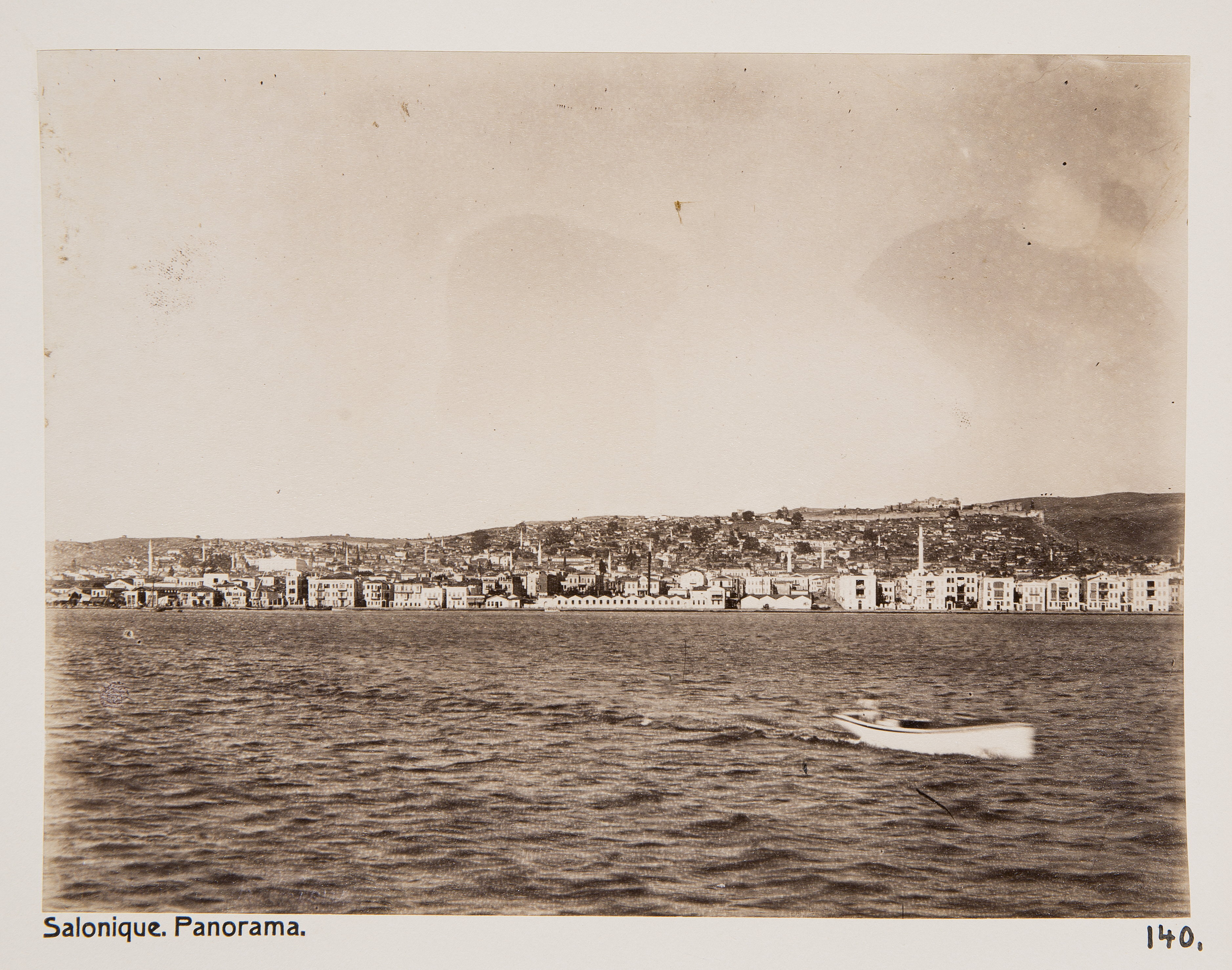 Panorama över Thessaloniki, Grekland. Text på originalet: Salonique. Panorama. Foto från resa genom Grekland, Makedonien och Serbien, 15 mars-6 juni 1896. Fotografierna LXVI:K.18.-147. är köpta av Wilhelmina von Hallwyl, f. Kempe på Korfu samt i Patras, Nafplion, Aten, Thessaloniki och Belgrad. Med på resan var maken Walther von Hallwyl och fröken Ida Uhse. Uppgifterna kommer från Ida Uhses reseanteckningar.