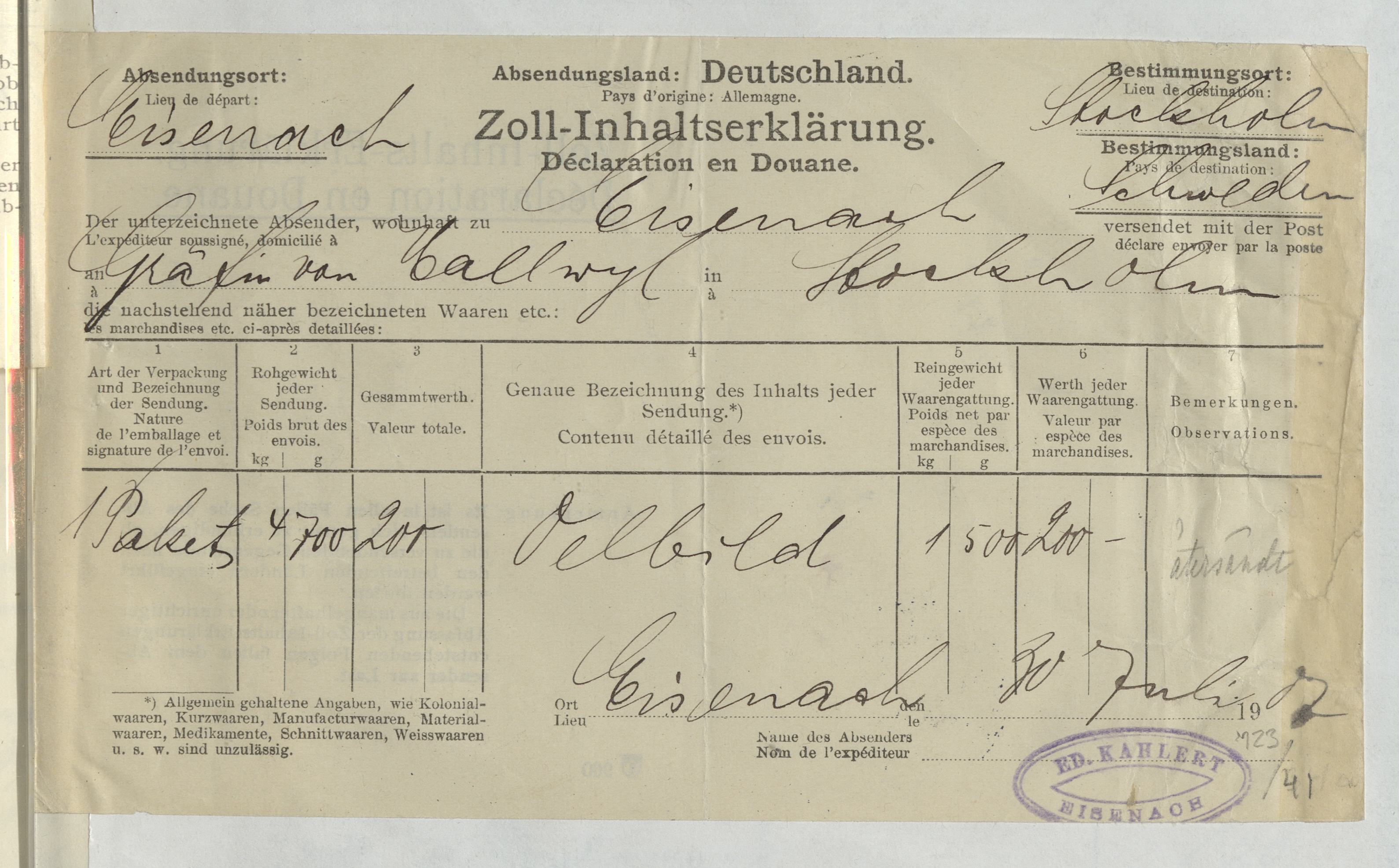 Verifikationer gällande antikviteter från Eduard Kahlert