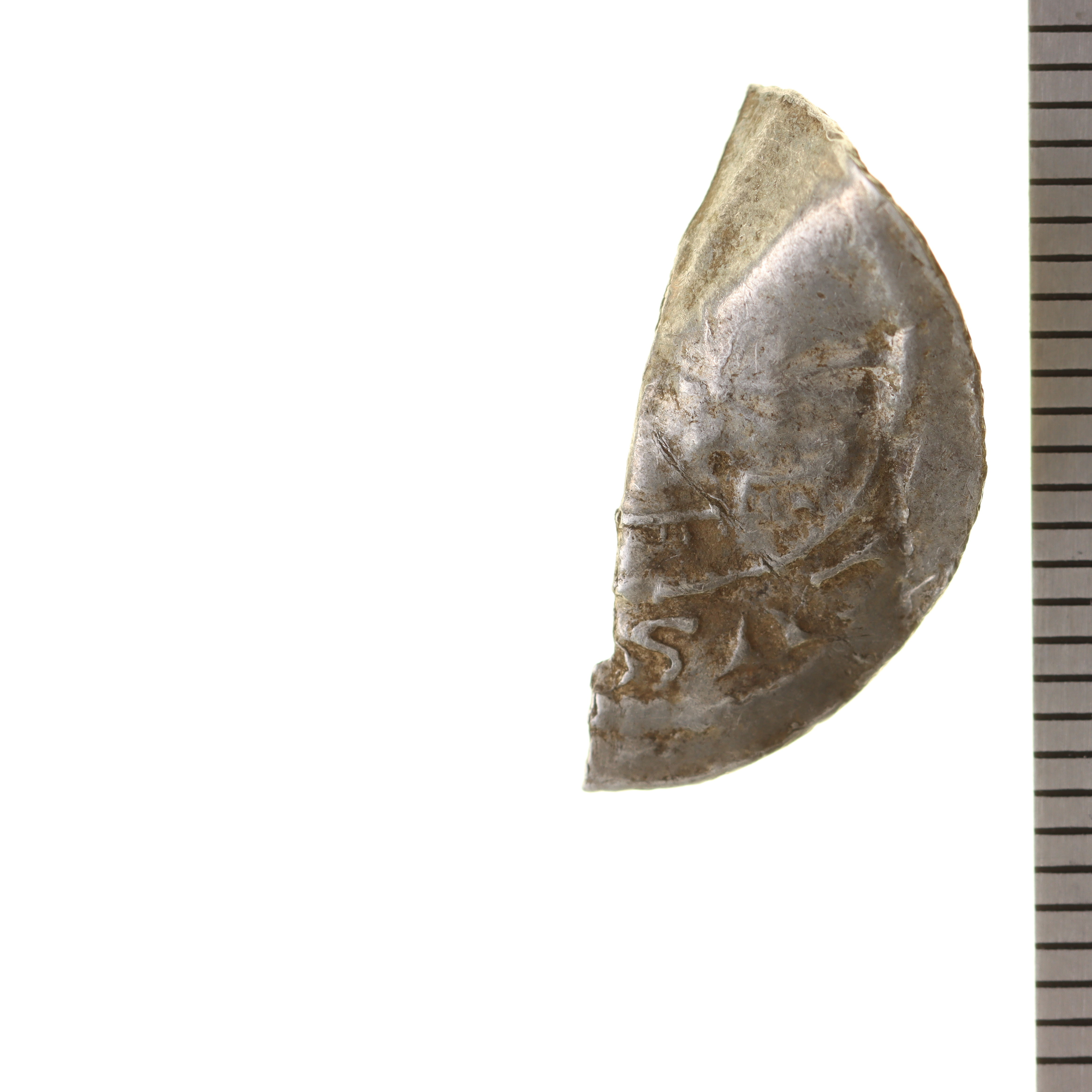 obestämt fragment, cirka 1/2 mynt
