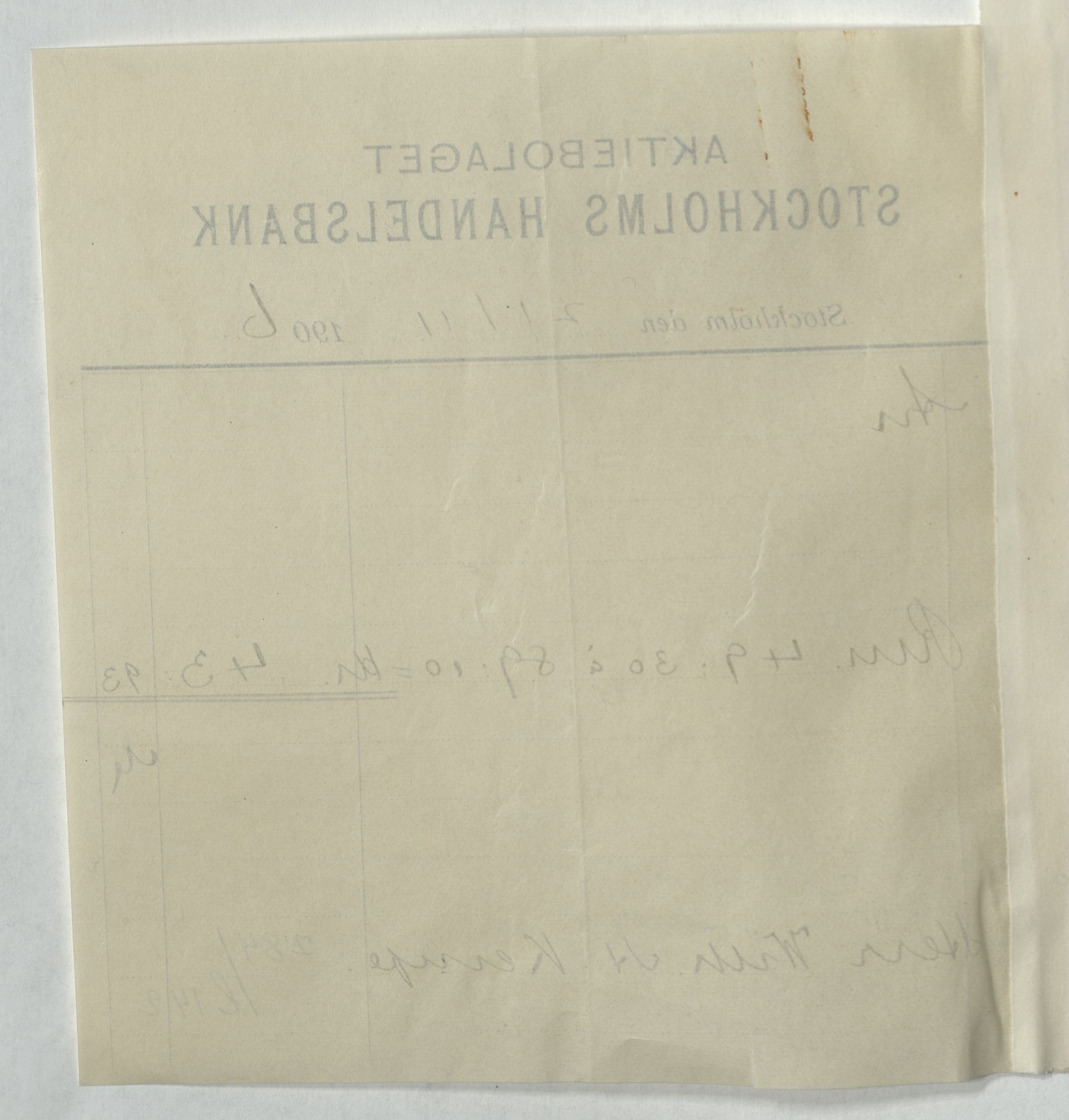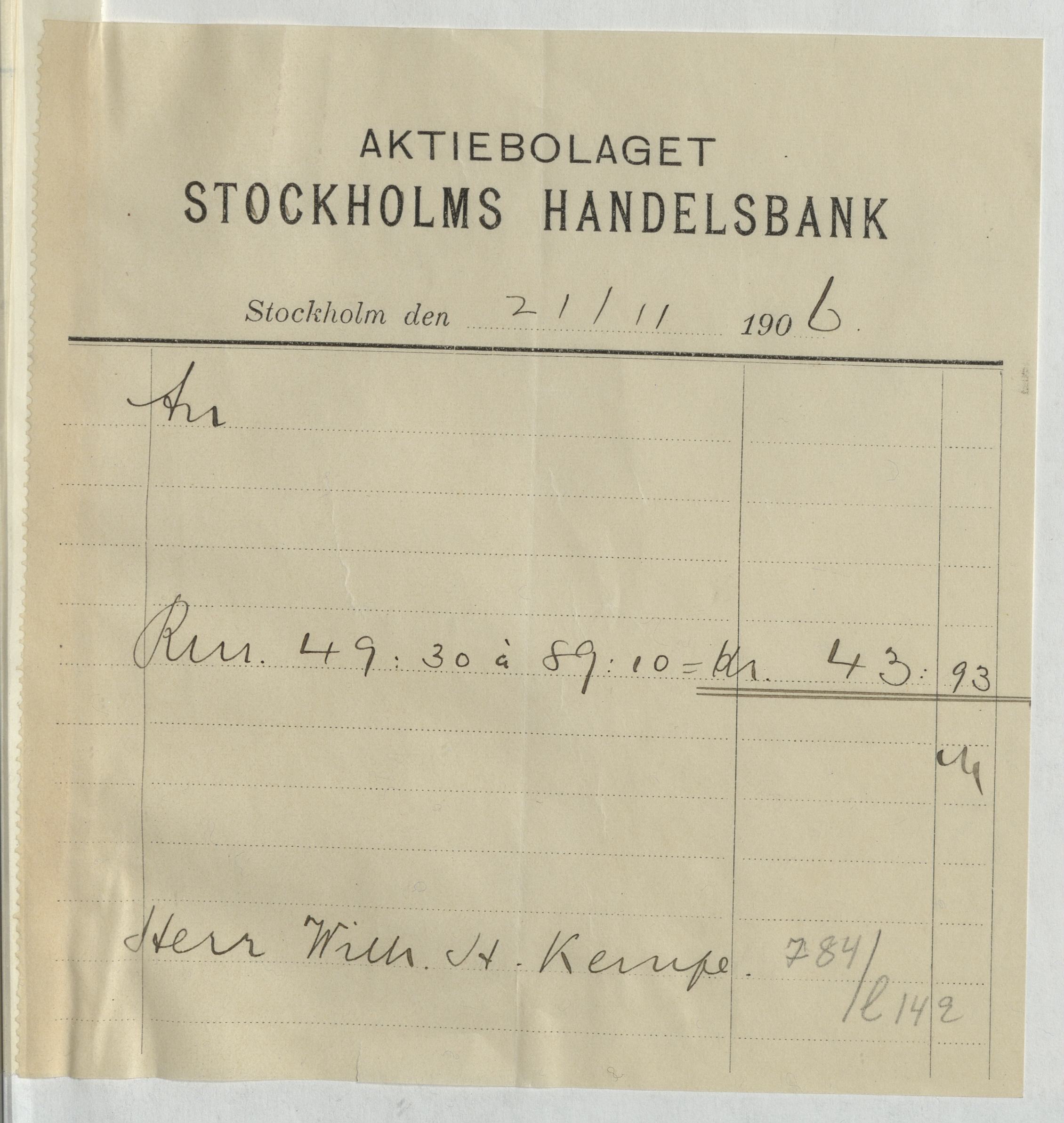 Verifikation från Aktiebolaget Stockholms Handelsbank