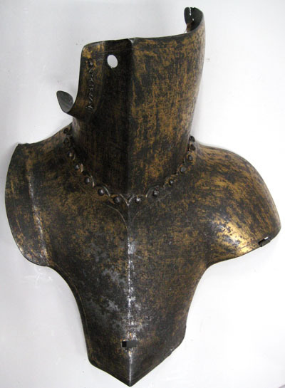 Förstärkningsstycke för bröst och huvud. Del av Hertig Karl Filips tornérrustning.