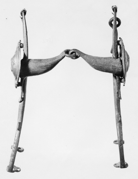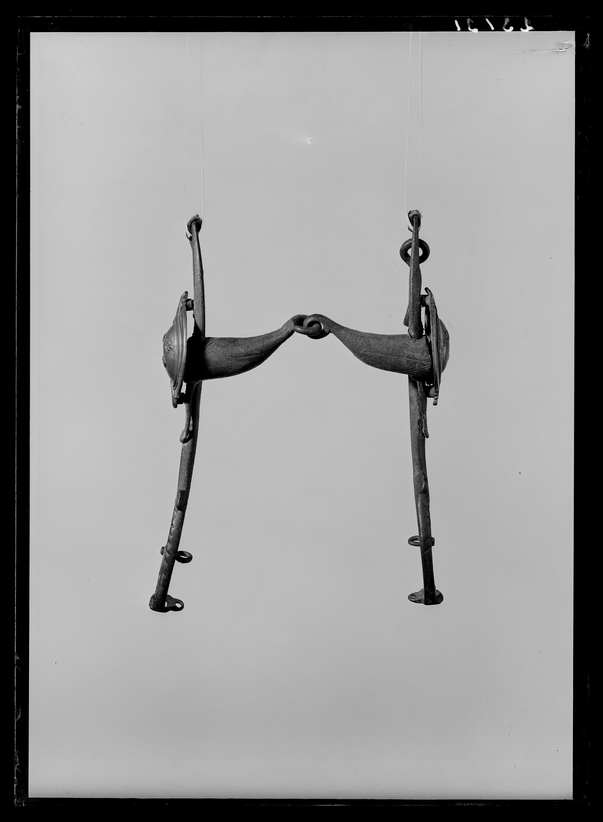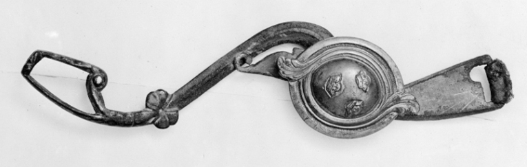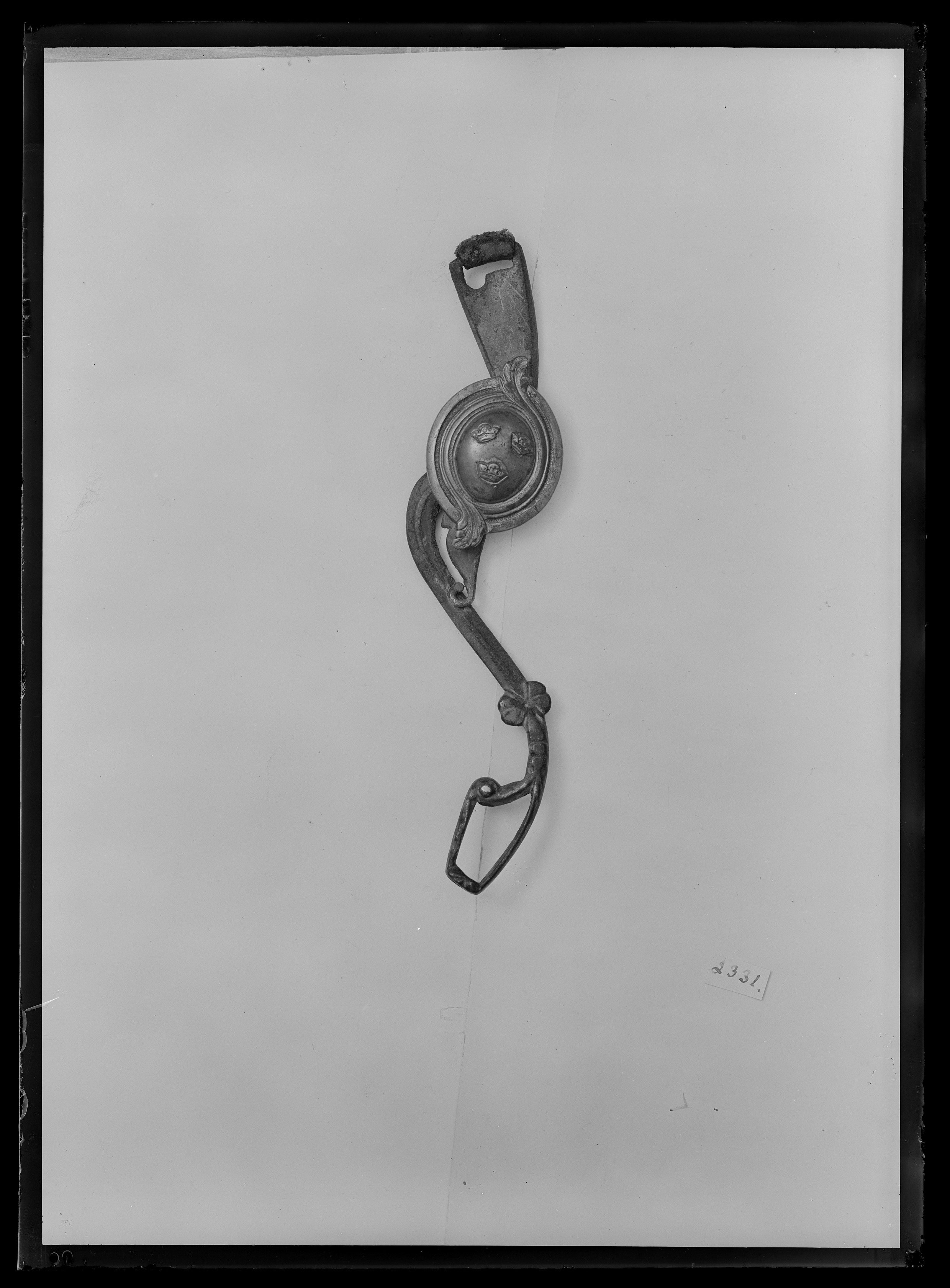 Stångbett av stål, pucklar av förgylld mässing. Troligen från 1700-talets början.