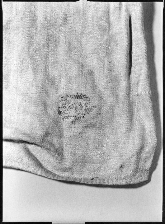 Linneduk använd att lägga om Gustav III:s sår efter attentatet på operan den 16 mars 1792.