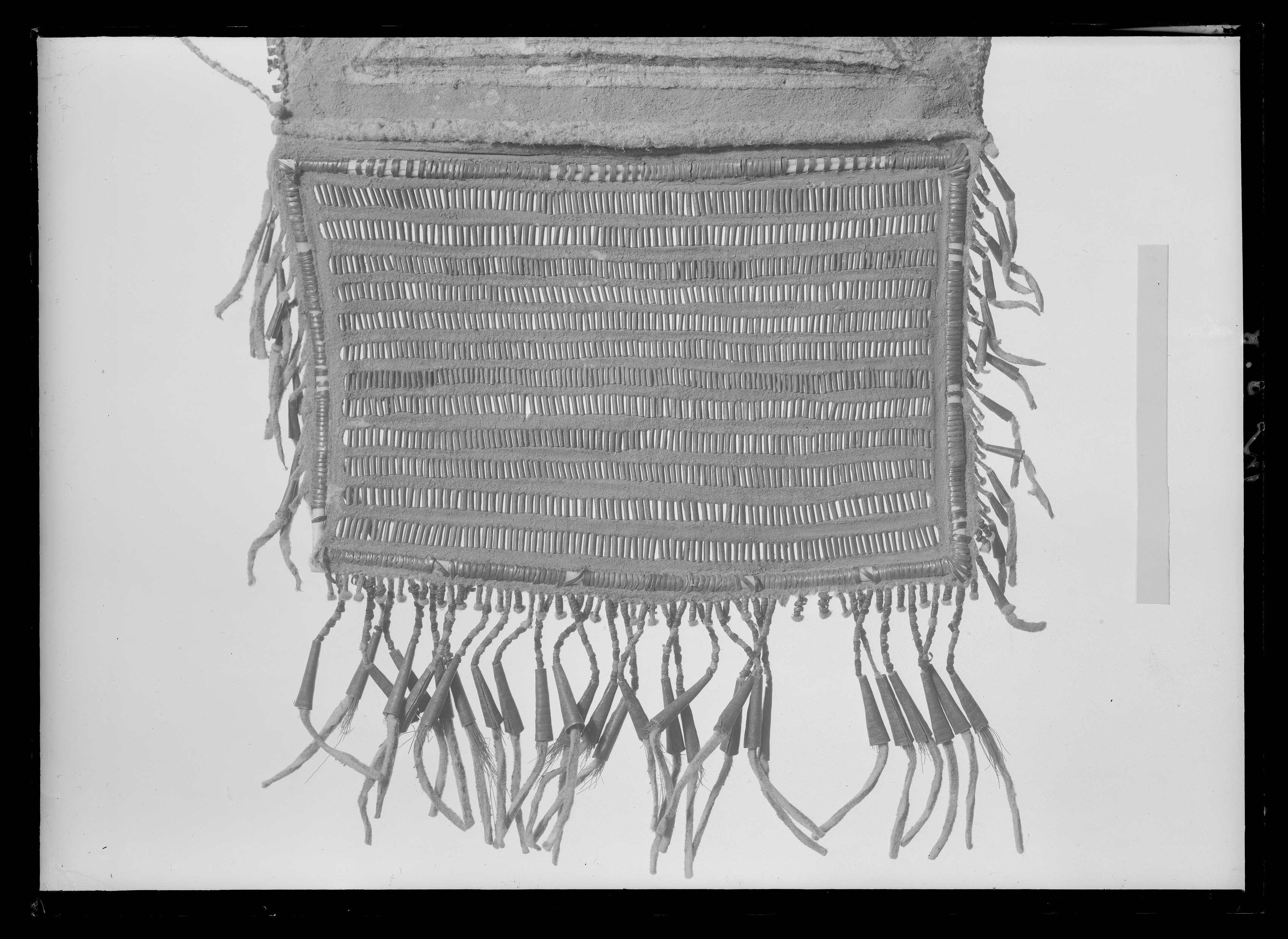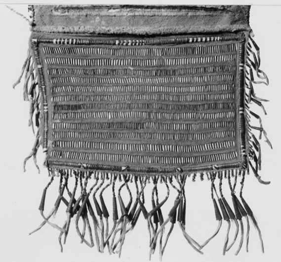 Tobakspung till Cree amerikansk ursprungsbefolknings-dräkt, 1700-talets första hälft(?).