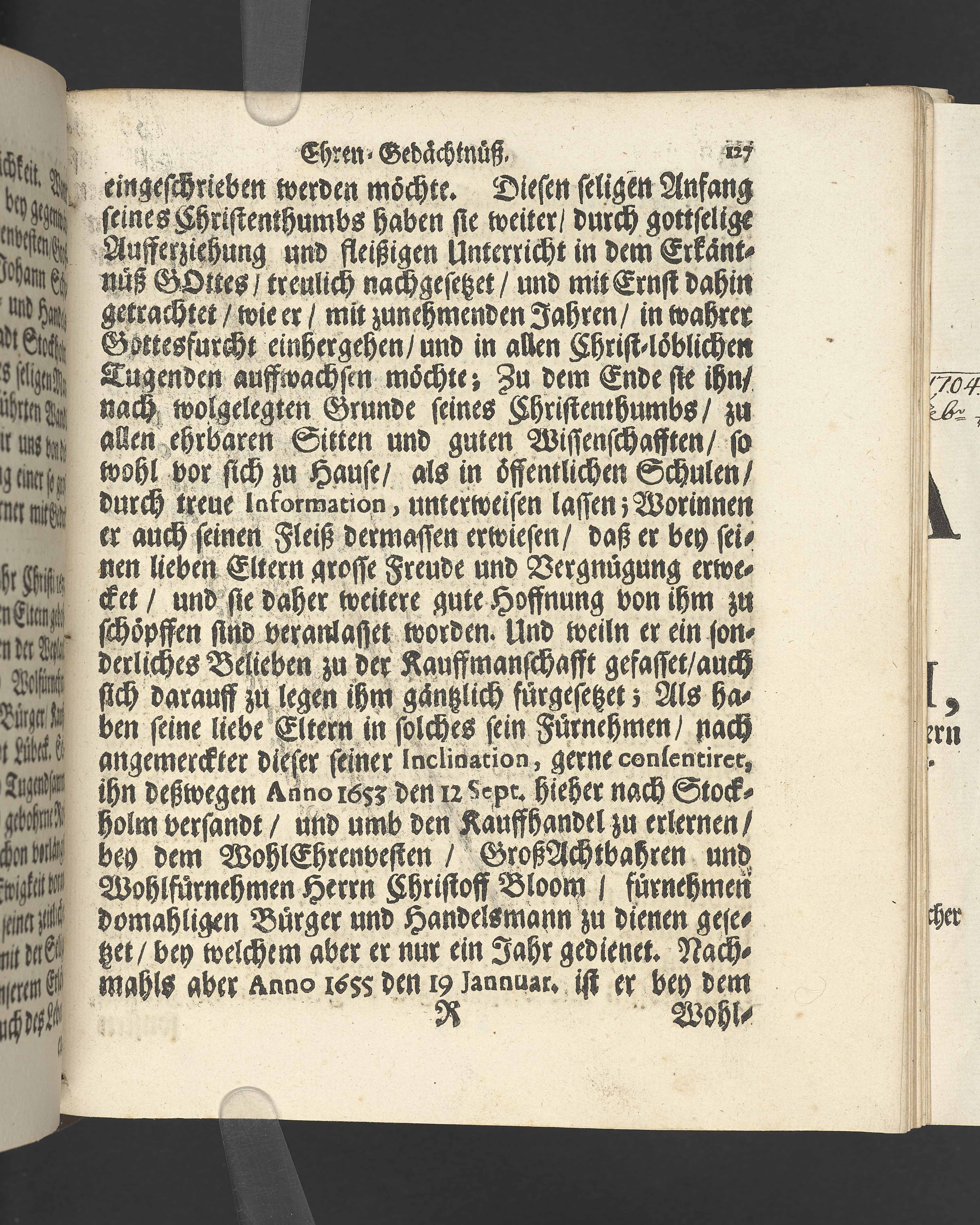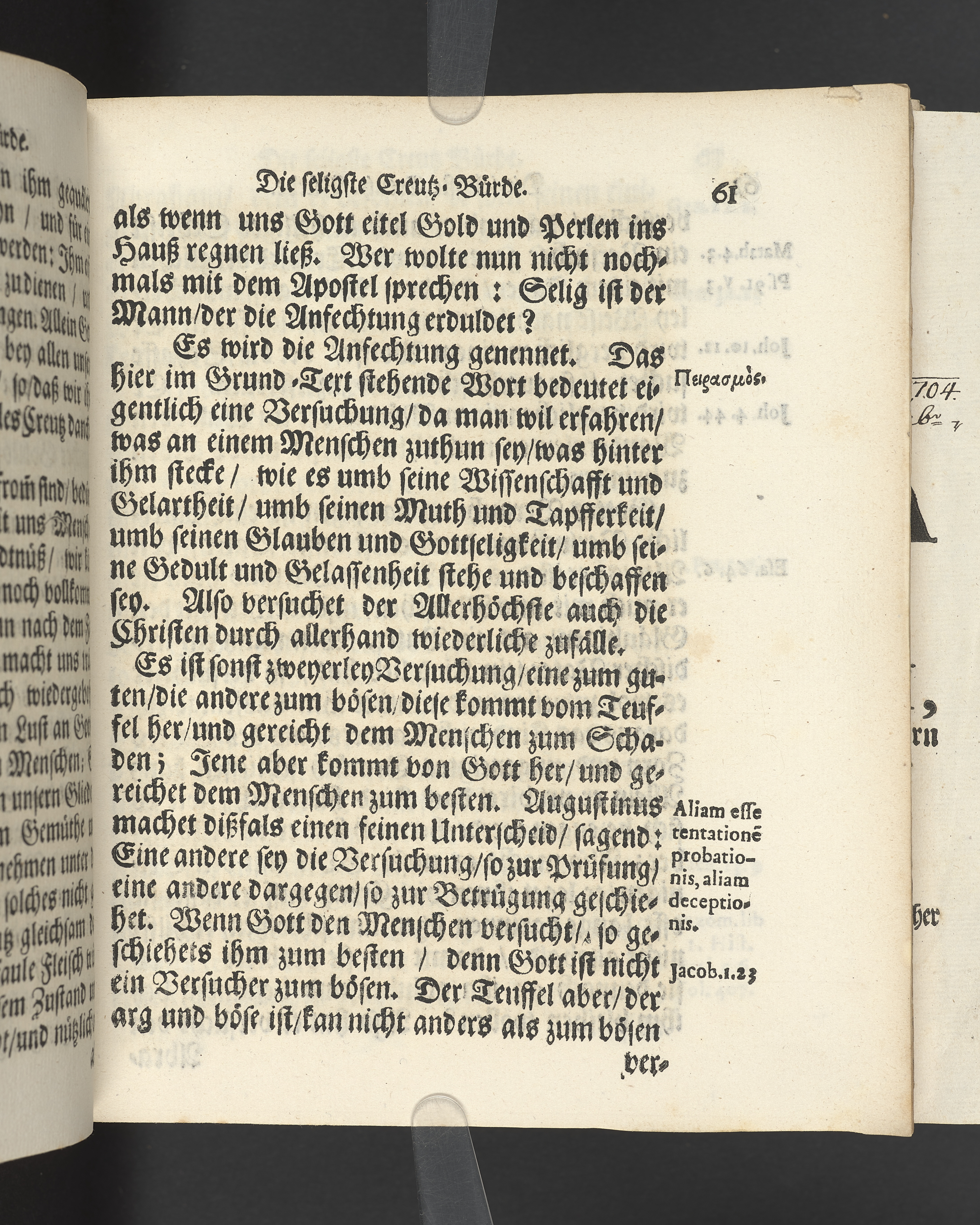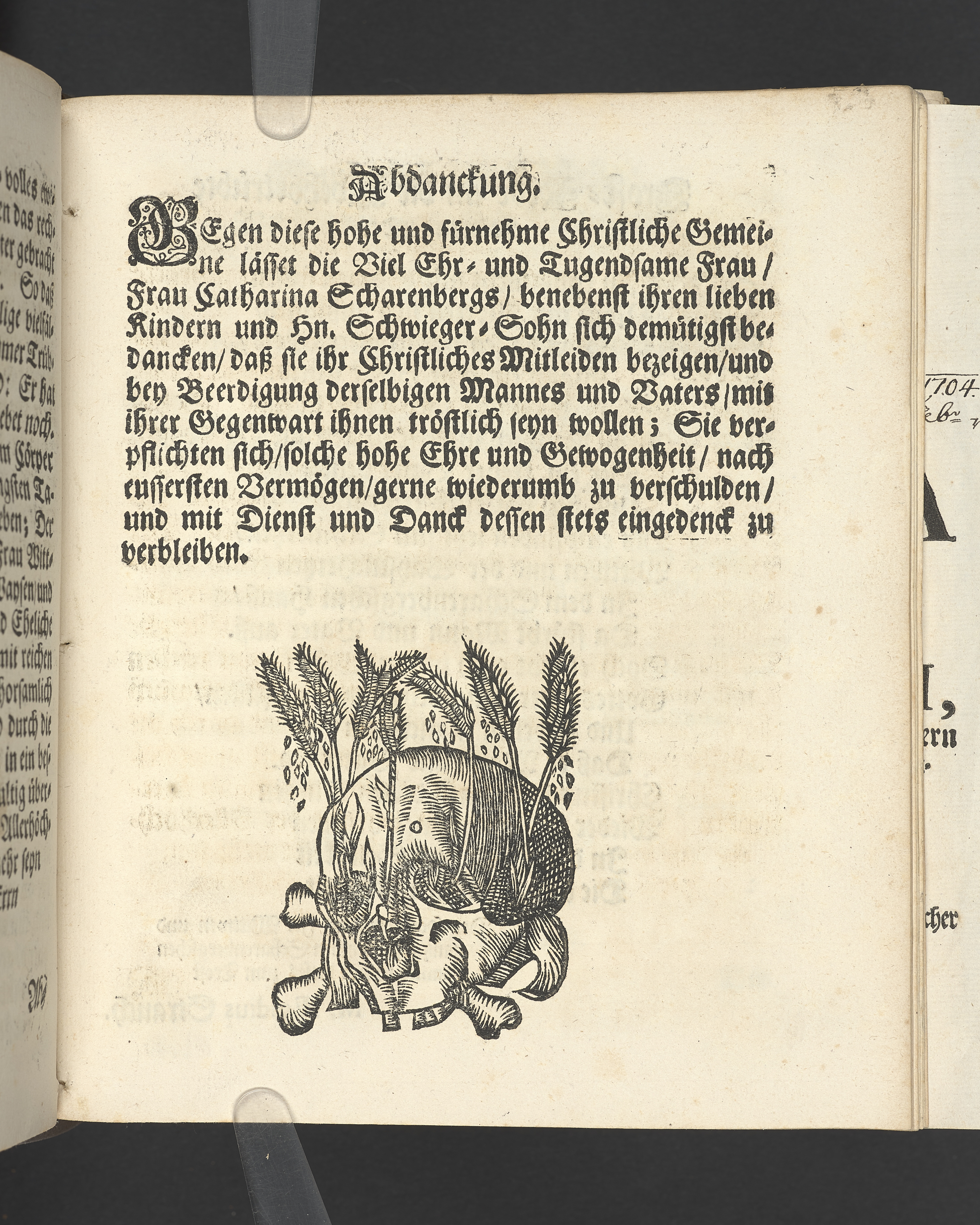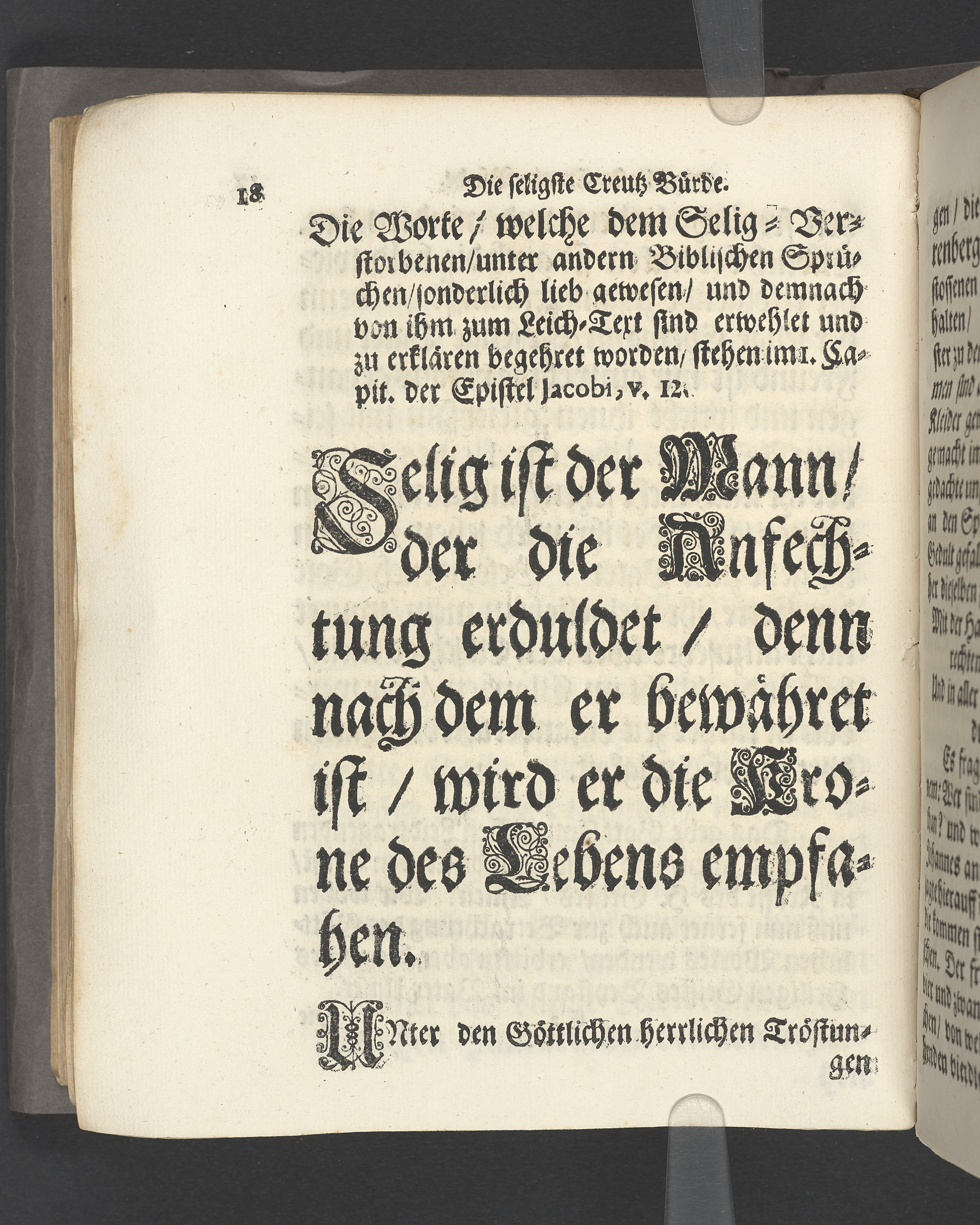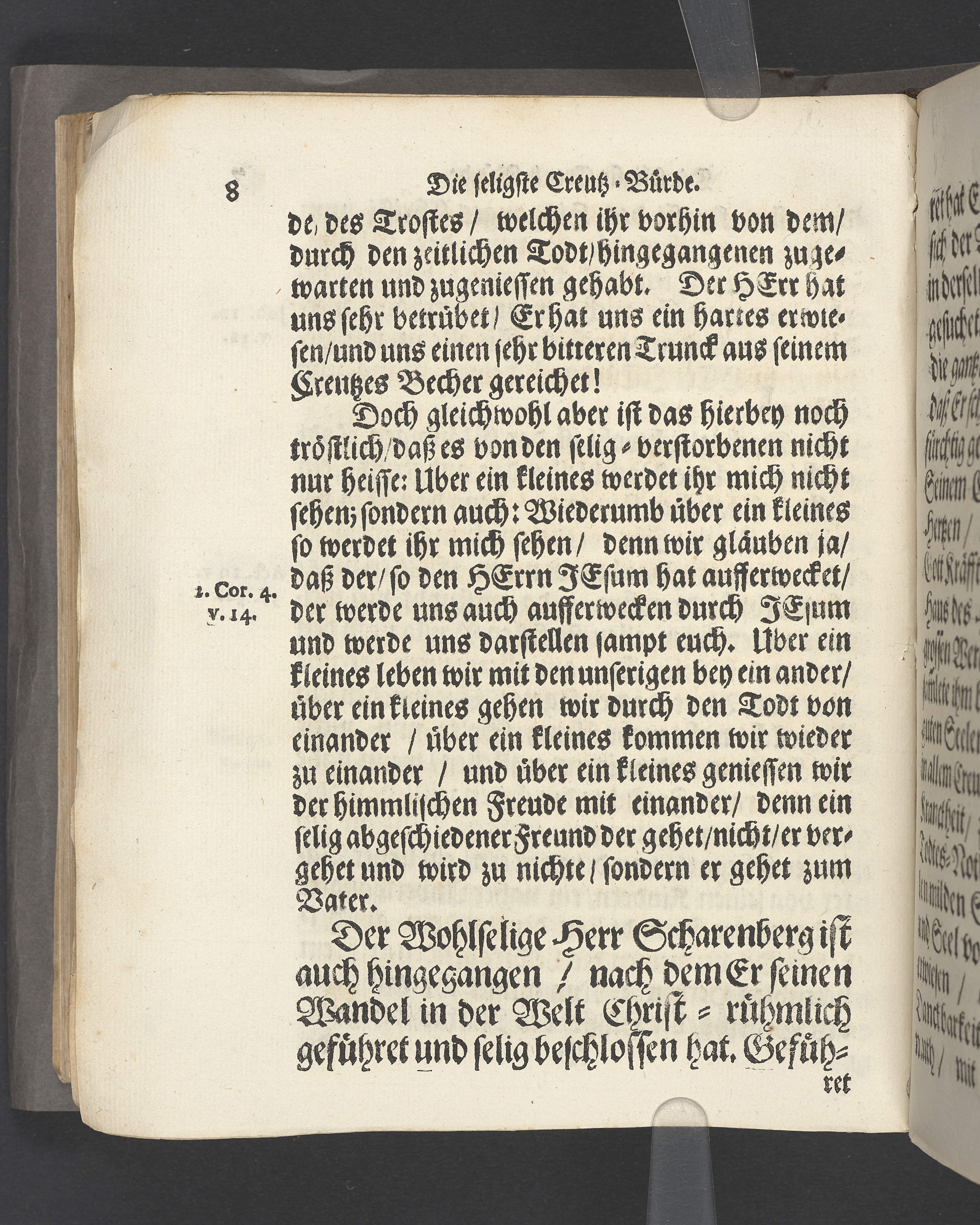 Die seligste Creutz=Bürde / Welche im Leben mühselig getragen / und imTodte ruhselig abgeleget / Der Weyland Wohl Ehrenveste/ Großachtbahre und Wohlfürnehme Hr. JOHANN Scharenberg / Gewesener Wohlbenahmter Bürger / Kauff= und Handels=Mann / in der Königl. Hoff= und Haupt=Stadt Stockholm / Und Am Tage seiner Leich=Begängnüß / welcher war der 6. May dieses jetzt lauffenden 1688. Jahres / Bey Hochansehnlicher und sehr Volckreicher Versamlung / in der grossen Pfarr=Kirchen / Auß dem Spruch der Epistel S. Jacobi Cap. 1. v. 12. Selig ist der Mann/ der die Anfechtung erduldet etc. Mündtlich fürgestellet und / auff Begehren / schrifftlich ausgefertiget / Durch M. AEGIDIUM STRAUCH / Der Deutschen Kirchen Pastorem, und des Consistorii Assessorem. Stockholm / Gedruckt bey Niclas Wankijff / Königl. Buchdr.