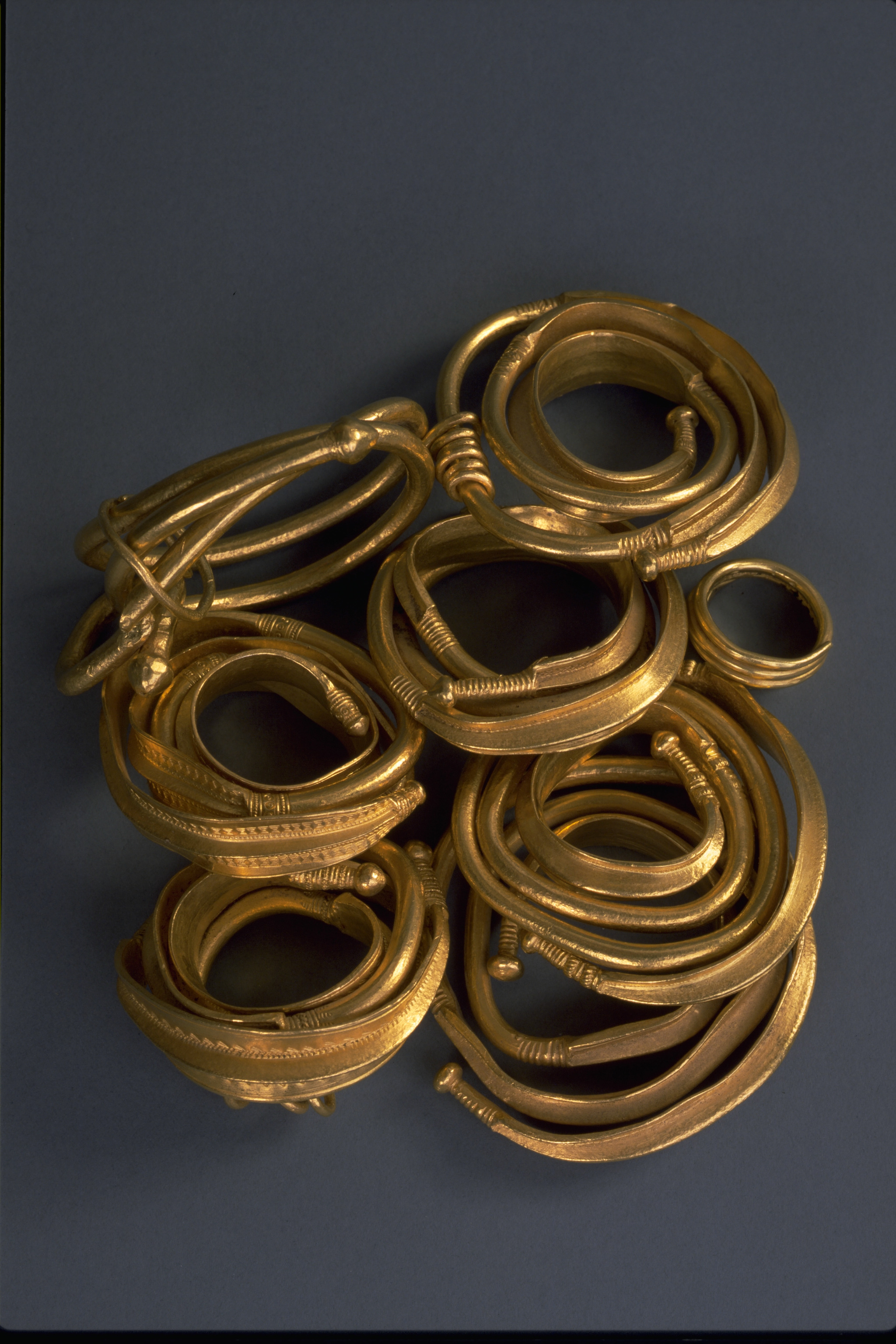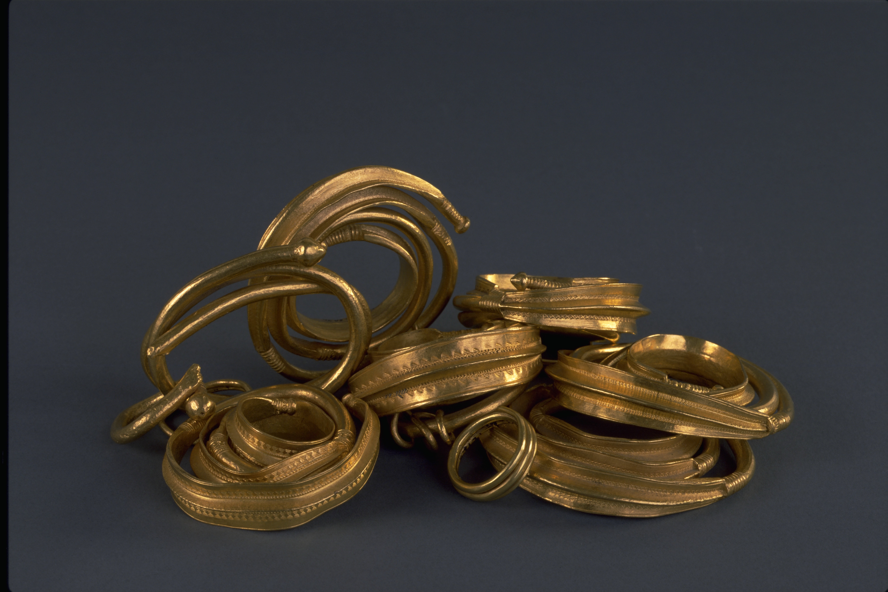 Ormhuvudring som hals- eller armring, av guld.