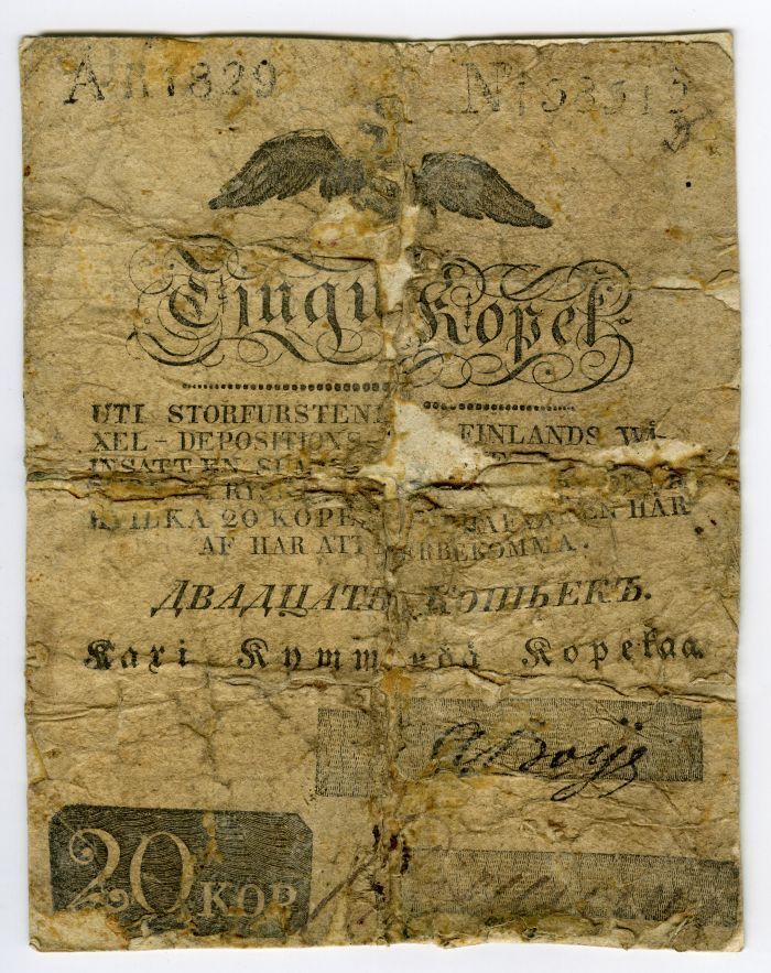 Upphov: Finlands växel- depositions- och lå. Media: Statens historiska museer. Ekonomiska museet - Kungliga myntkabinettet/SHM, (PDM) Upphovsrätten till detta verk har gått ut och är därmed fritt att använda på alla sätt. Ange gärna upphovsperson om denne är känd.