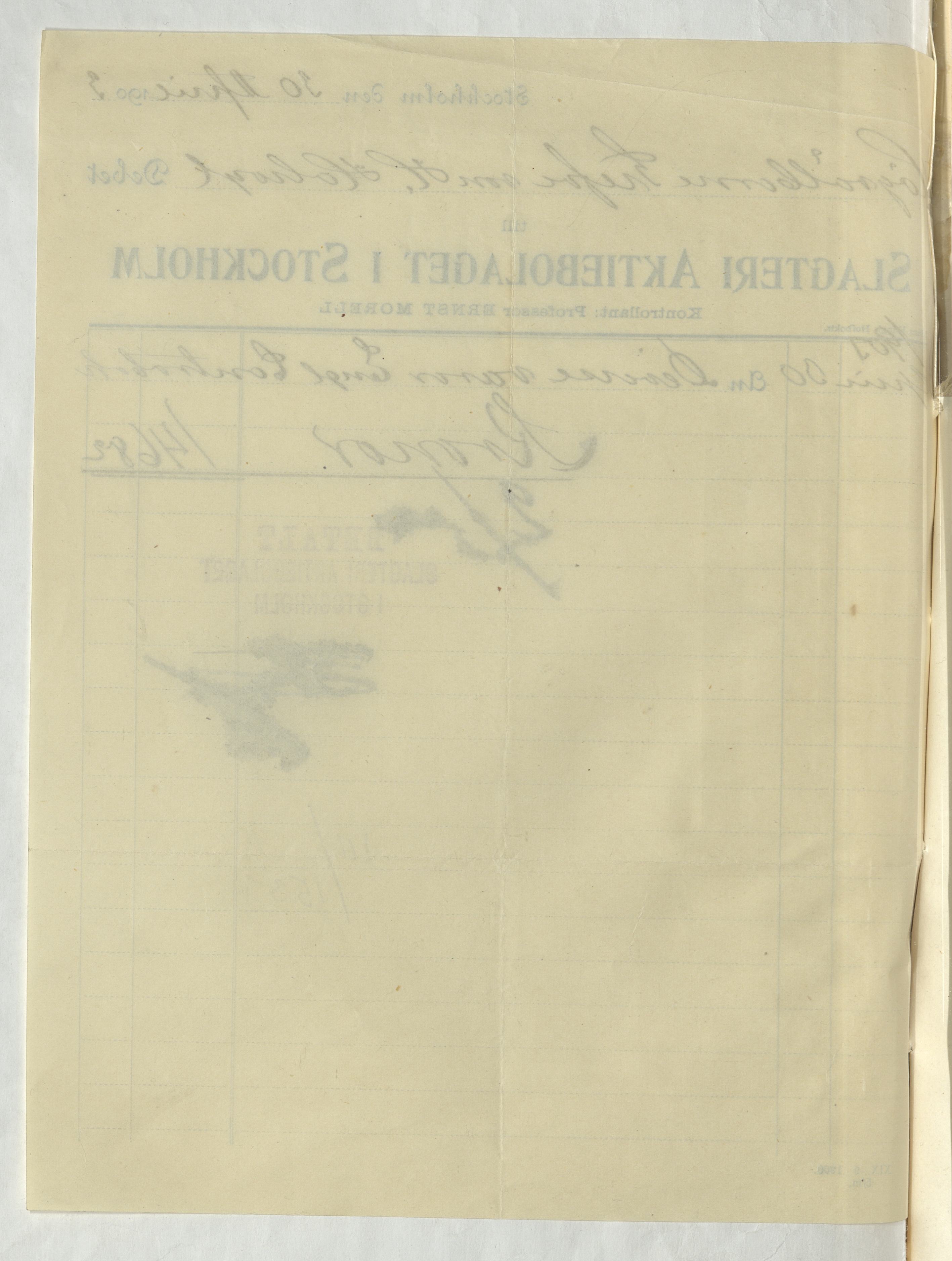 Kvitto från Slagteri Aktiebolaget i Stockholm