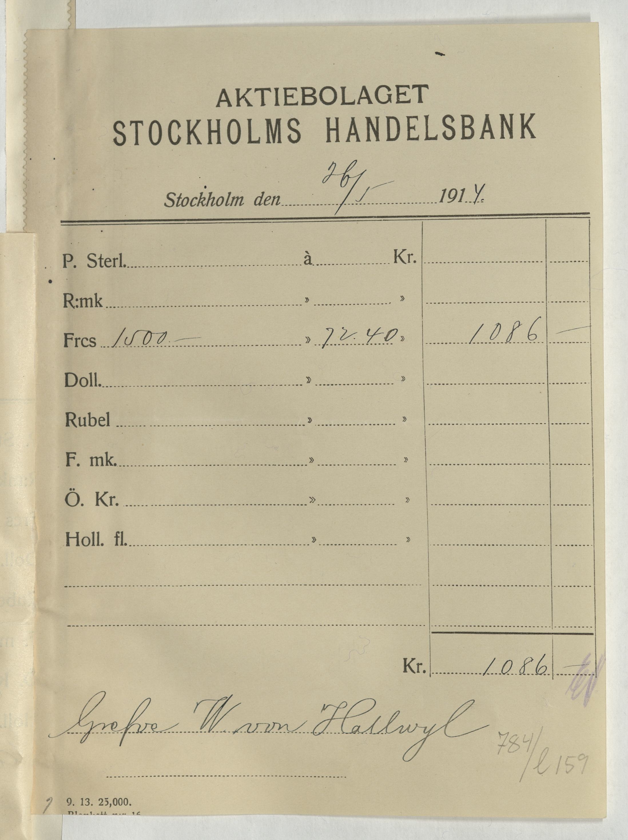 Upphov: Stockholms Handelsbank AB. Media: Statens historiska museer. Hallwylska museet/SHM, (PDM) Upphovsrätten till detta verk har gått ut och är därmed fritt att använda på alla sätt. Ange gärna upphovsperson om denne är känd.