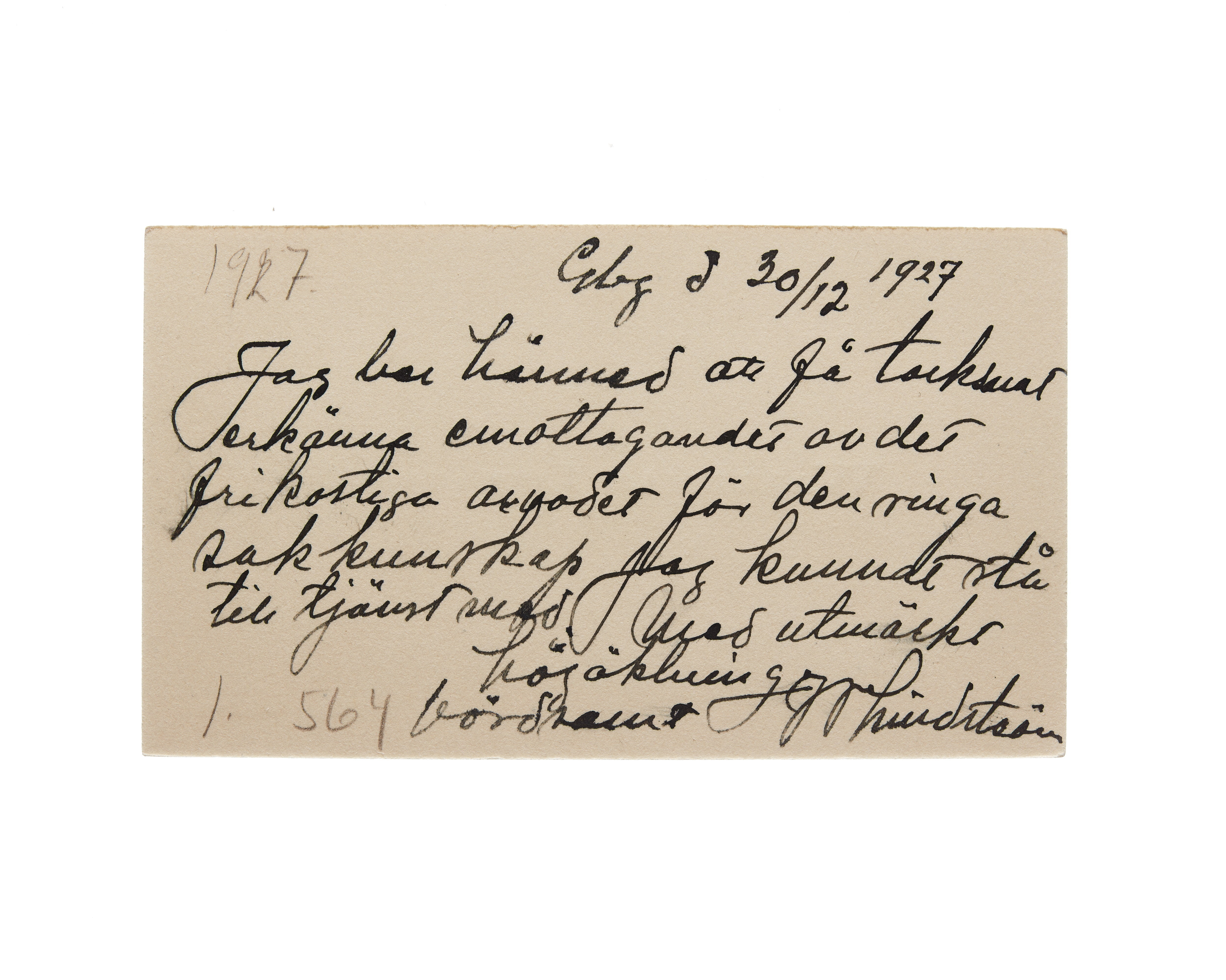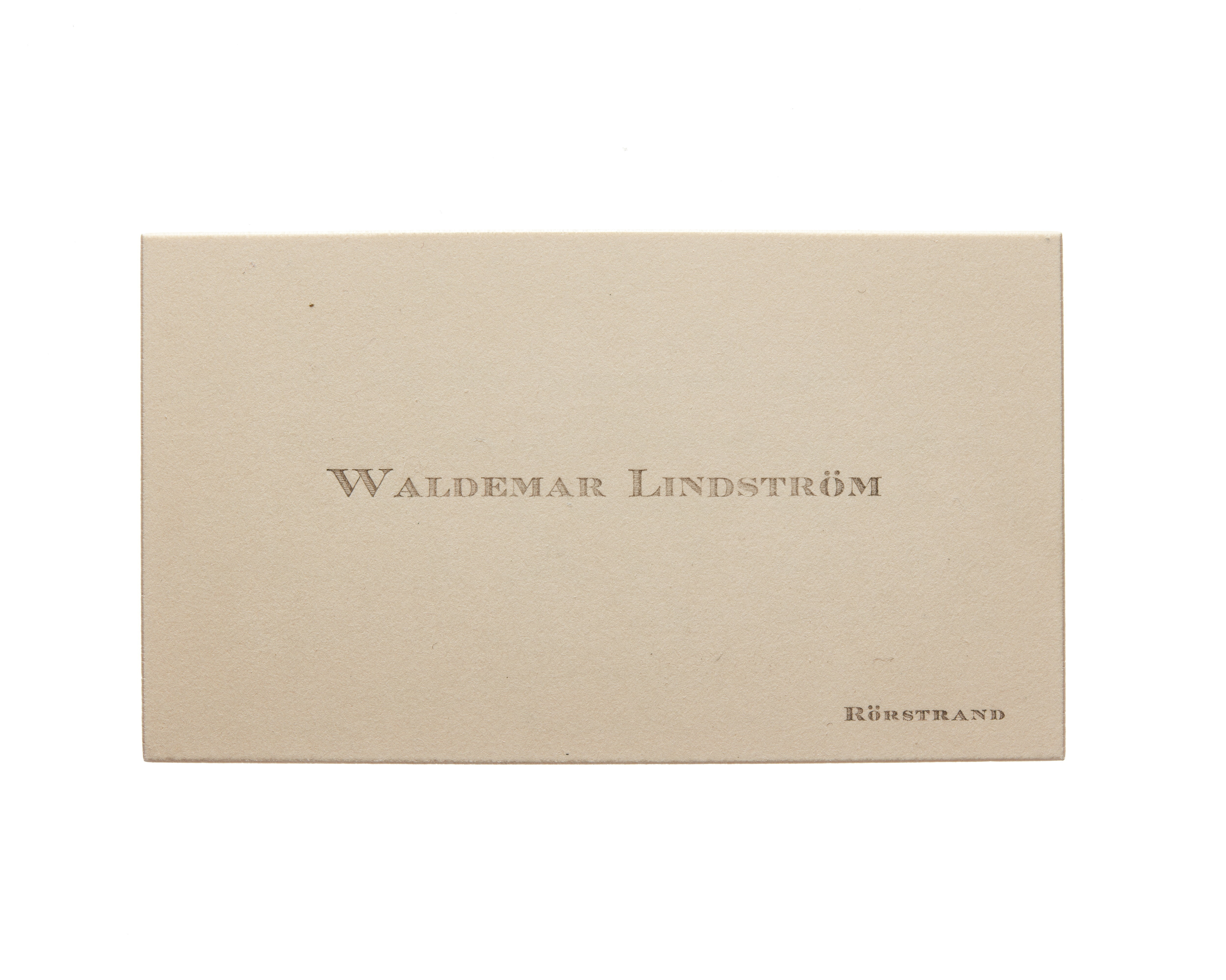 Ett visitkort från verkmästare Waldemar Lindström, daterat 30.12.1927. Adress (nedre högra hörnet) Rörstrand. Handskrift "...."