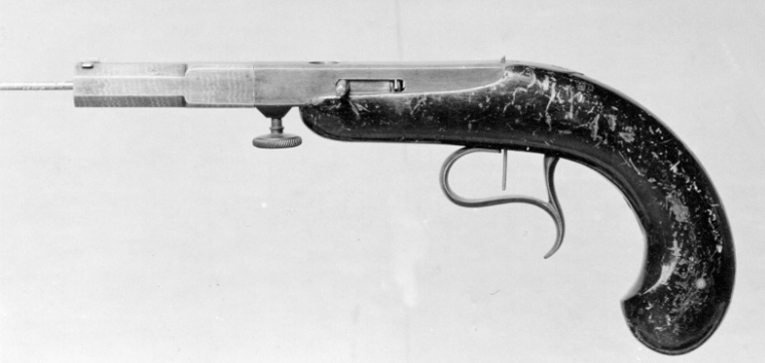 Slaglåspistol med invändigt slaghuvud, 1800-talets mitt.