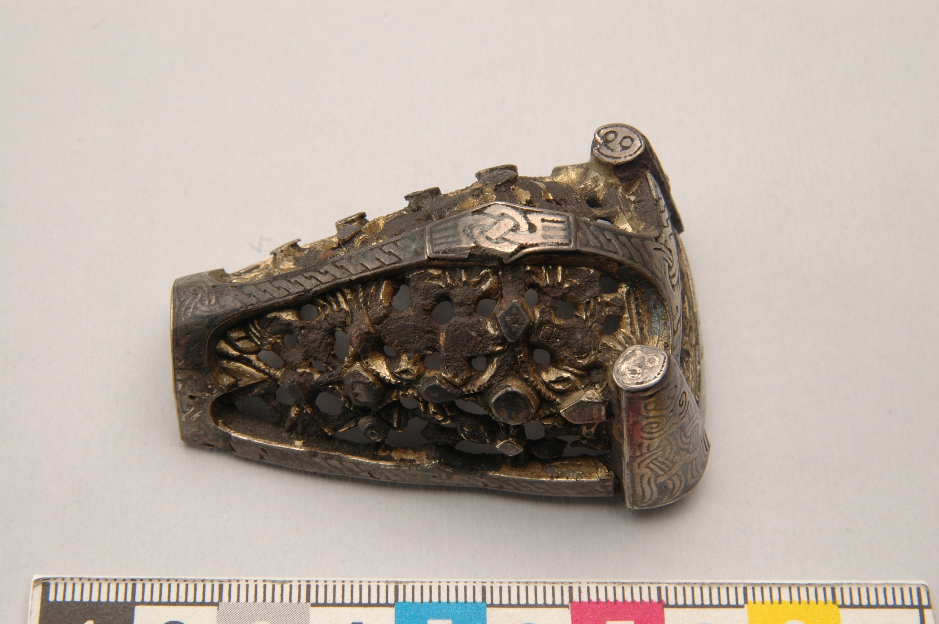 Spår av förgyllning. Försilvrat