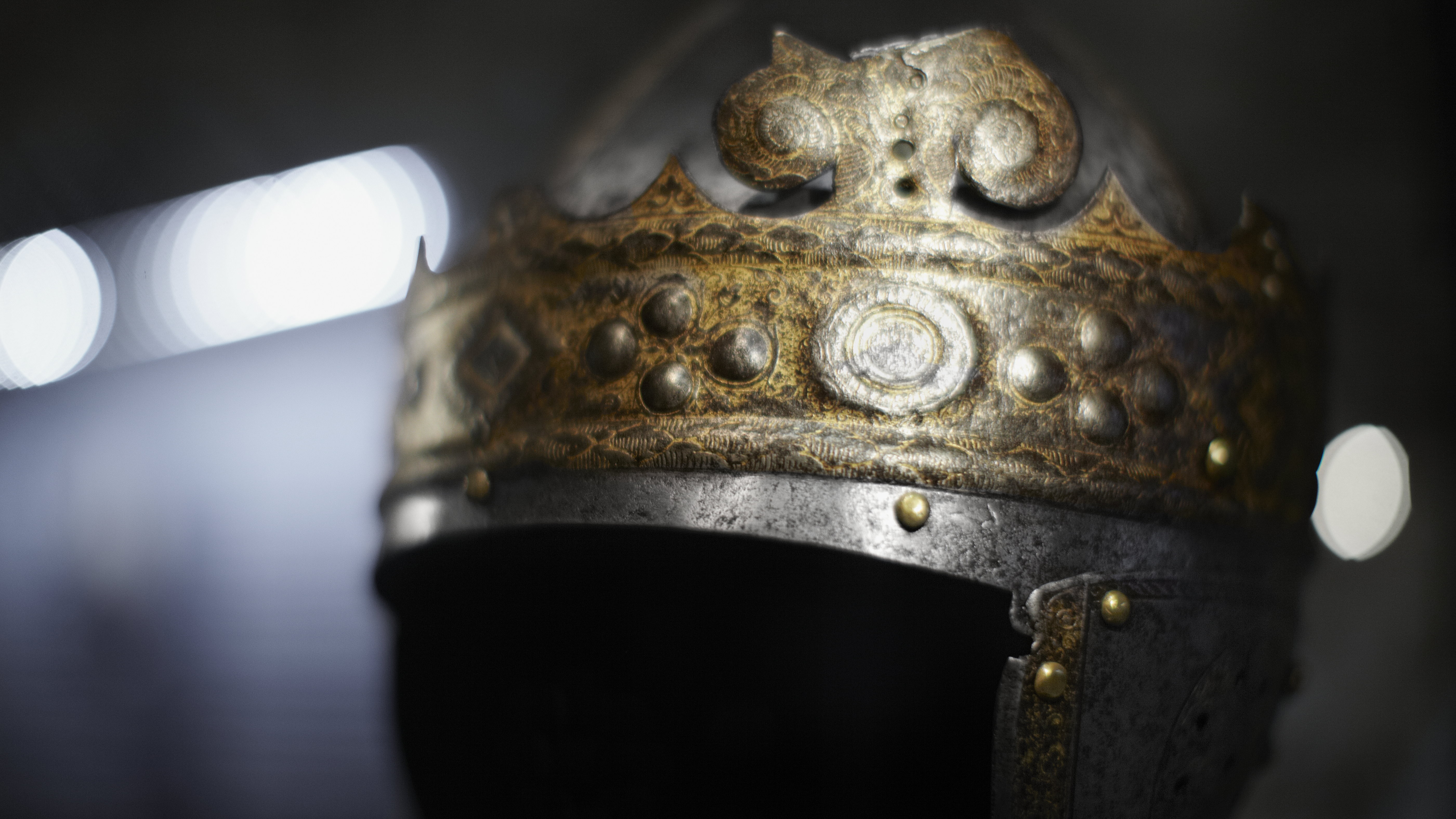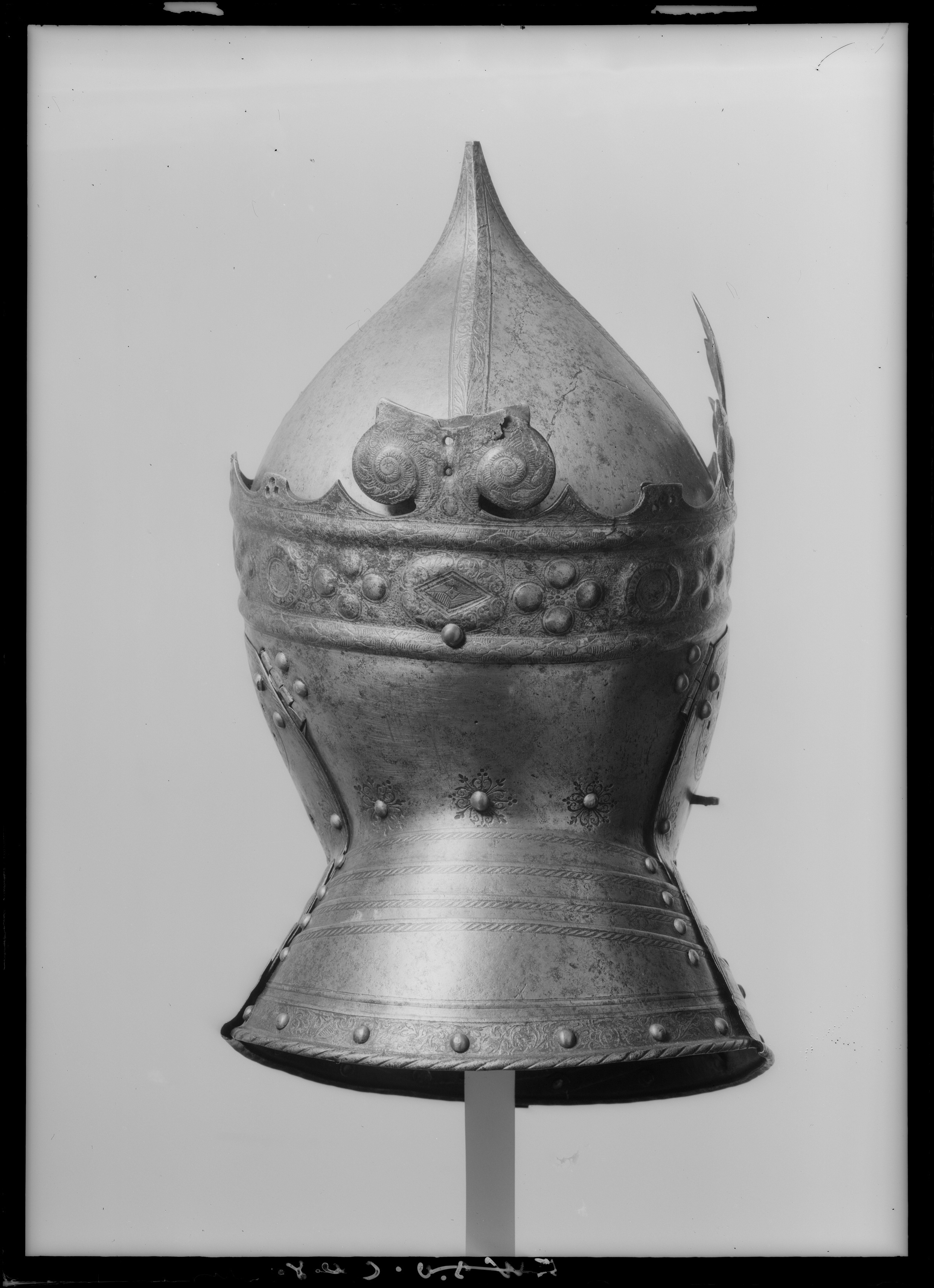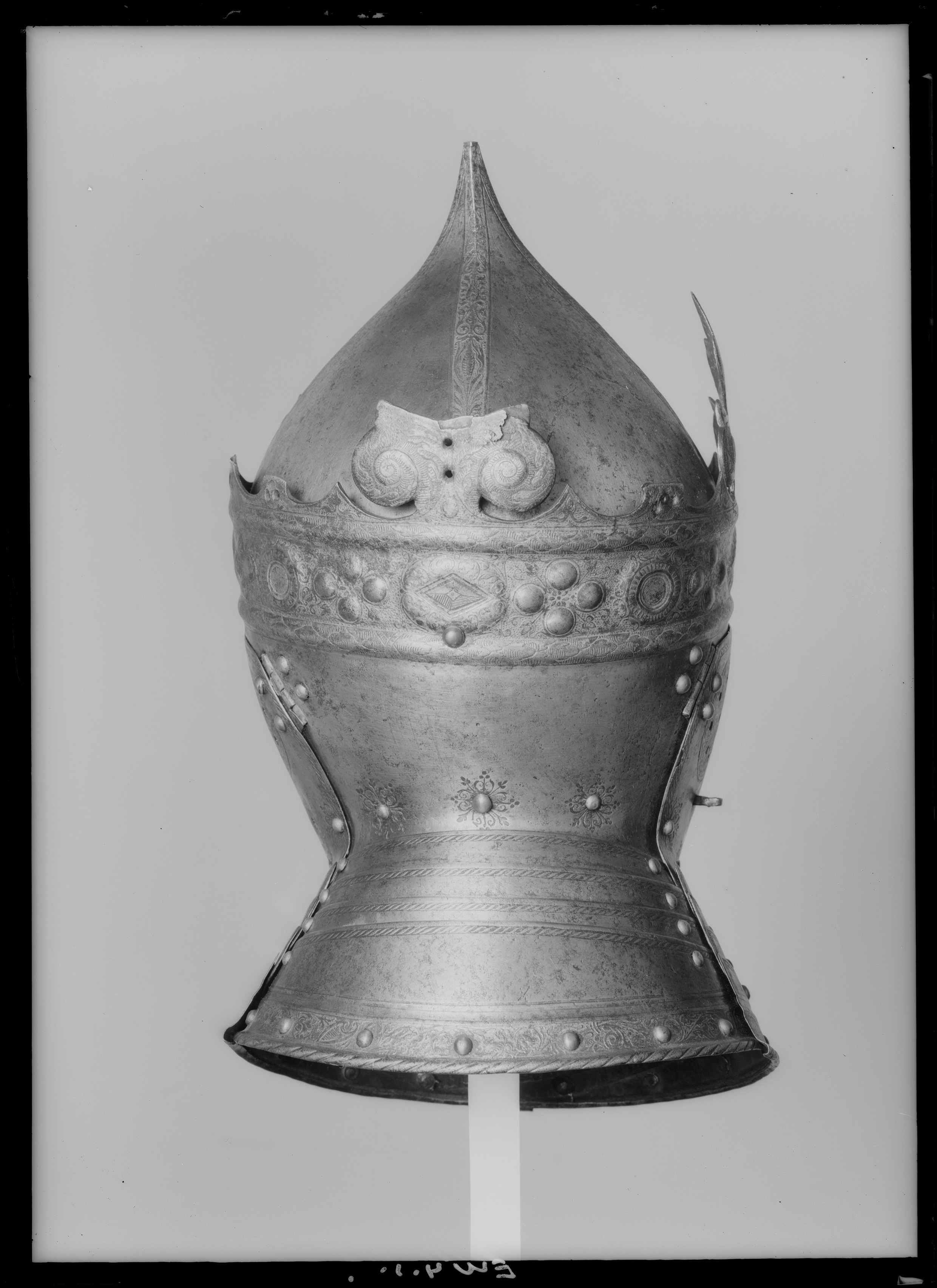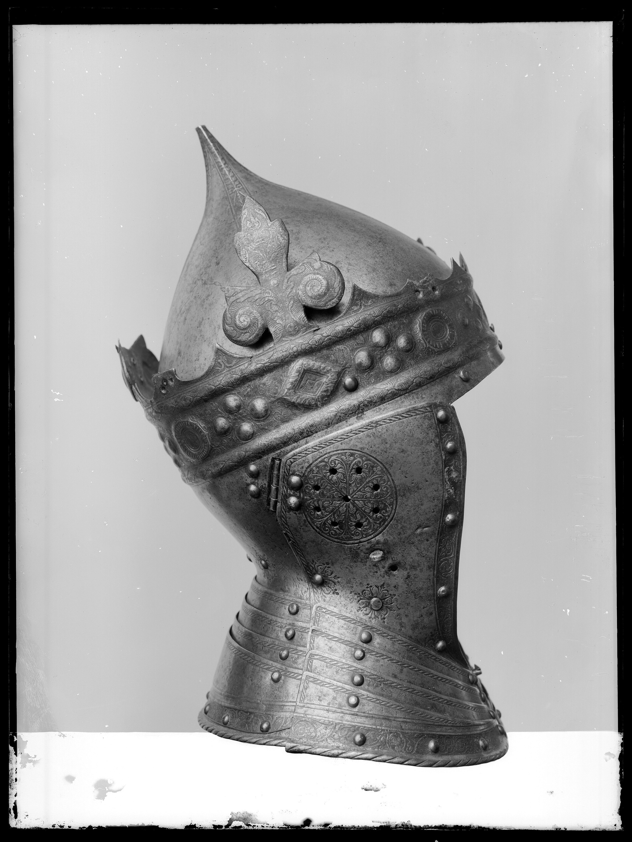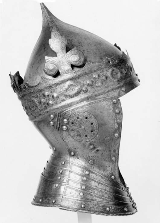 Gustav Vasas hjälm. Krönt hjälm, möjligen tillverkad av Kunz Lochner i Nürnberg cirka 1540, levererad i garnityr.