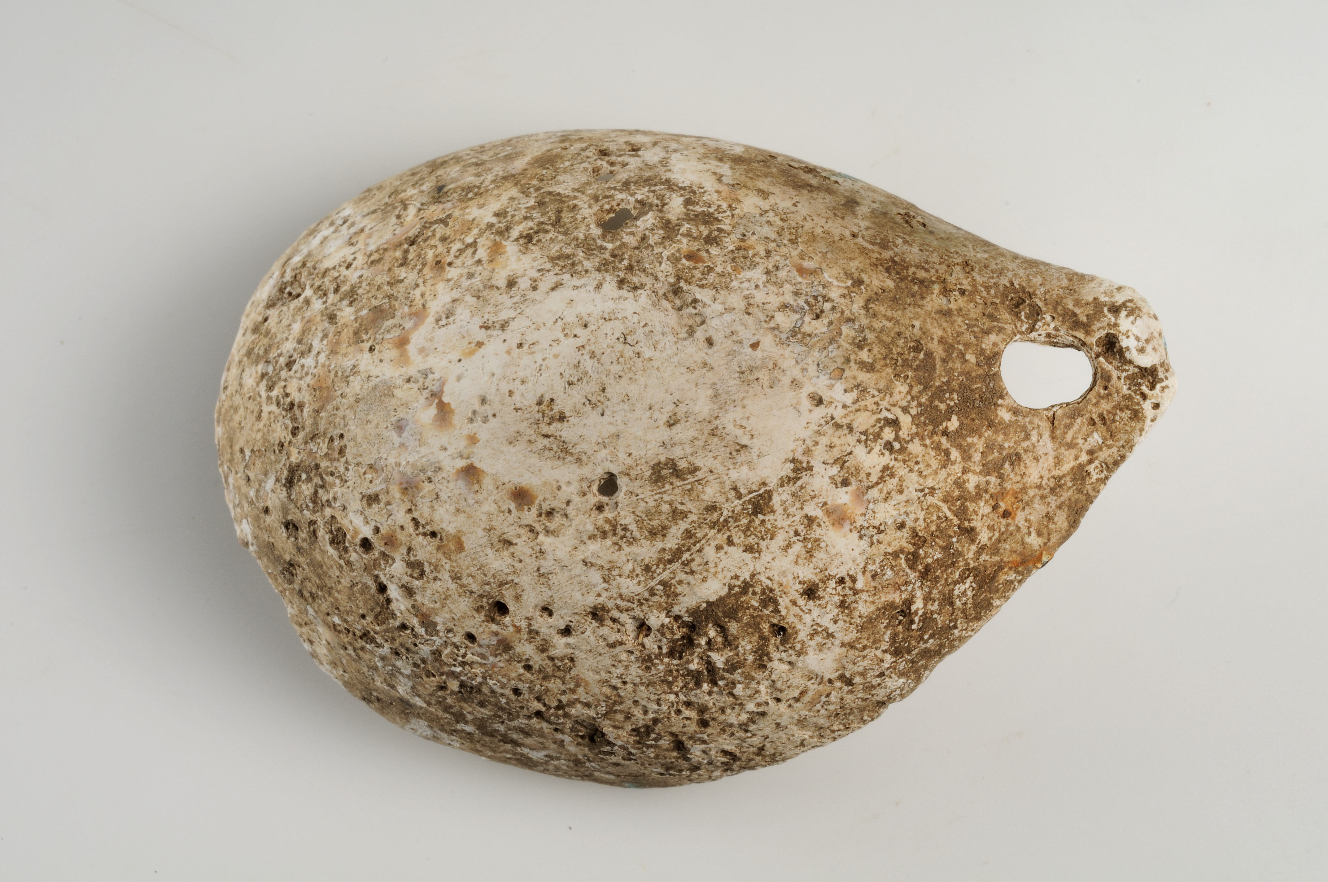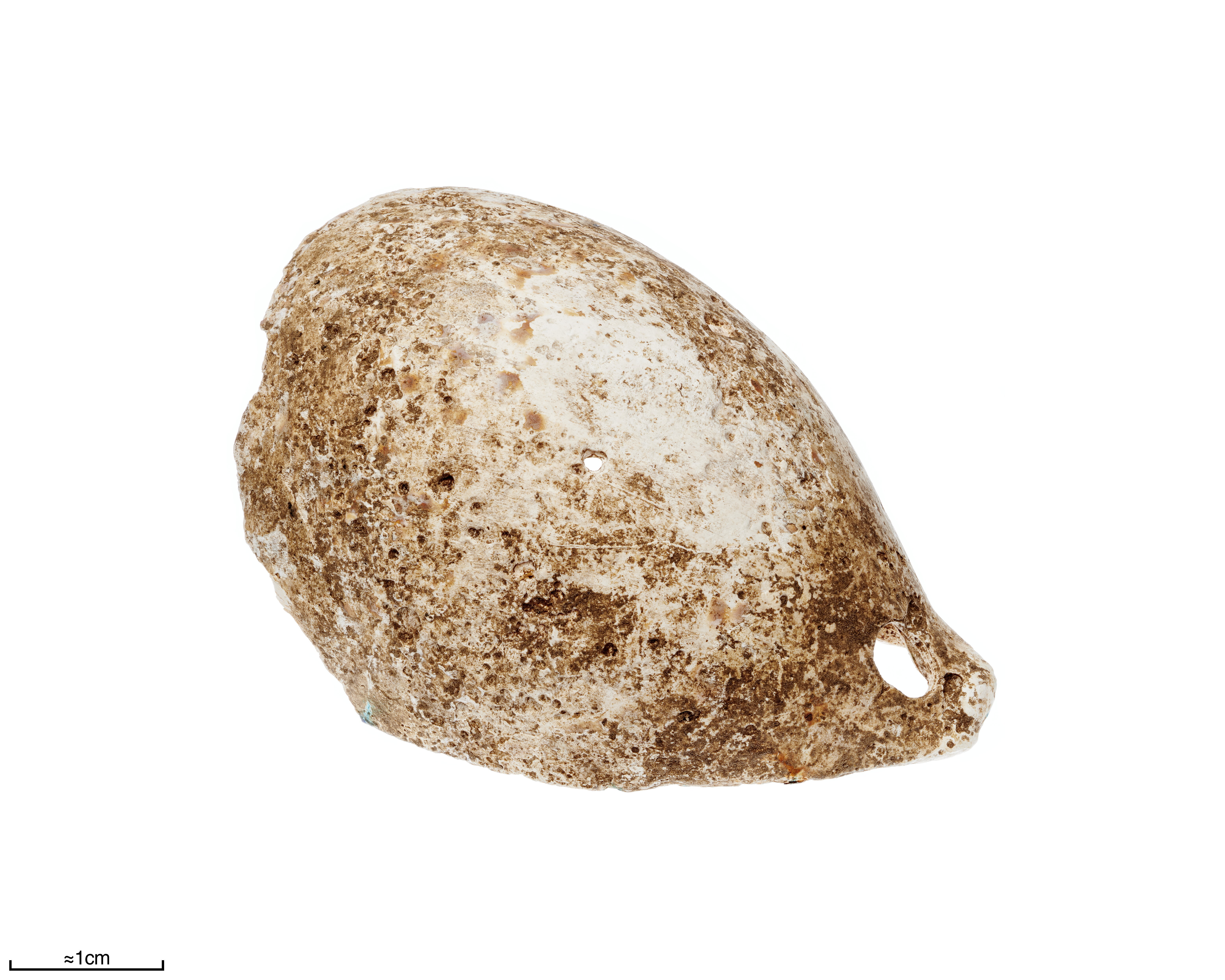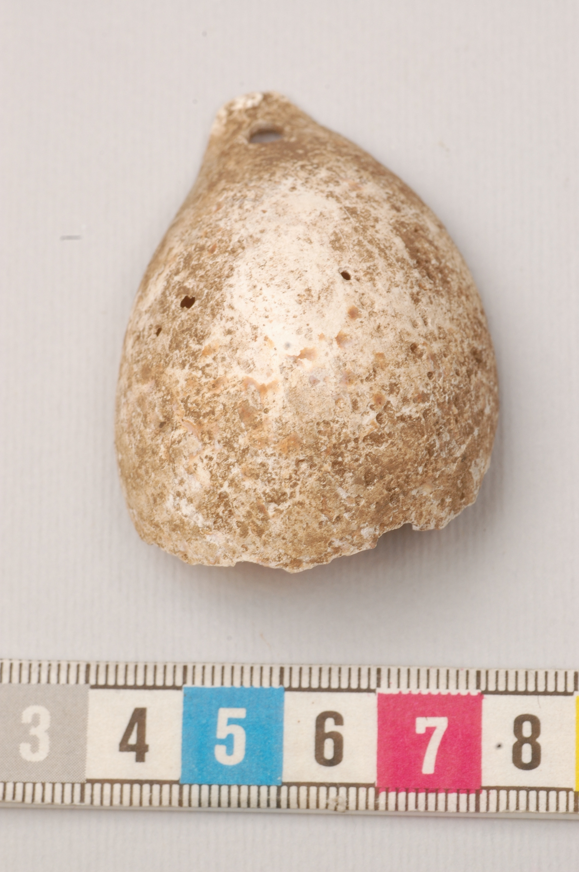 Något skadad. Med hål till upphägning.