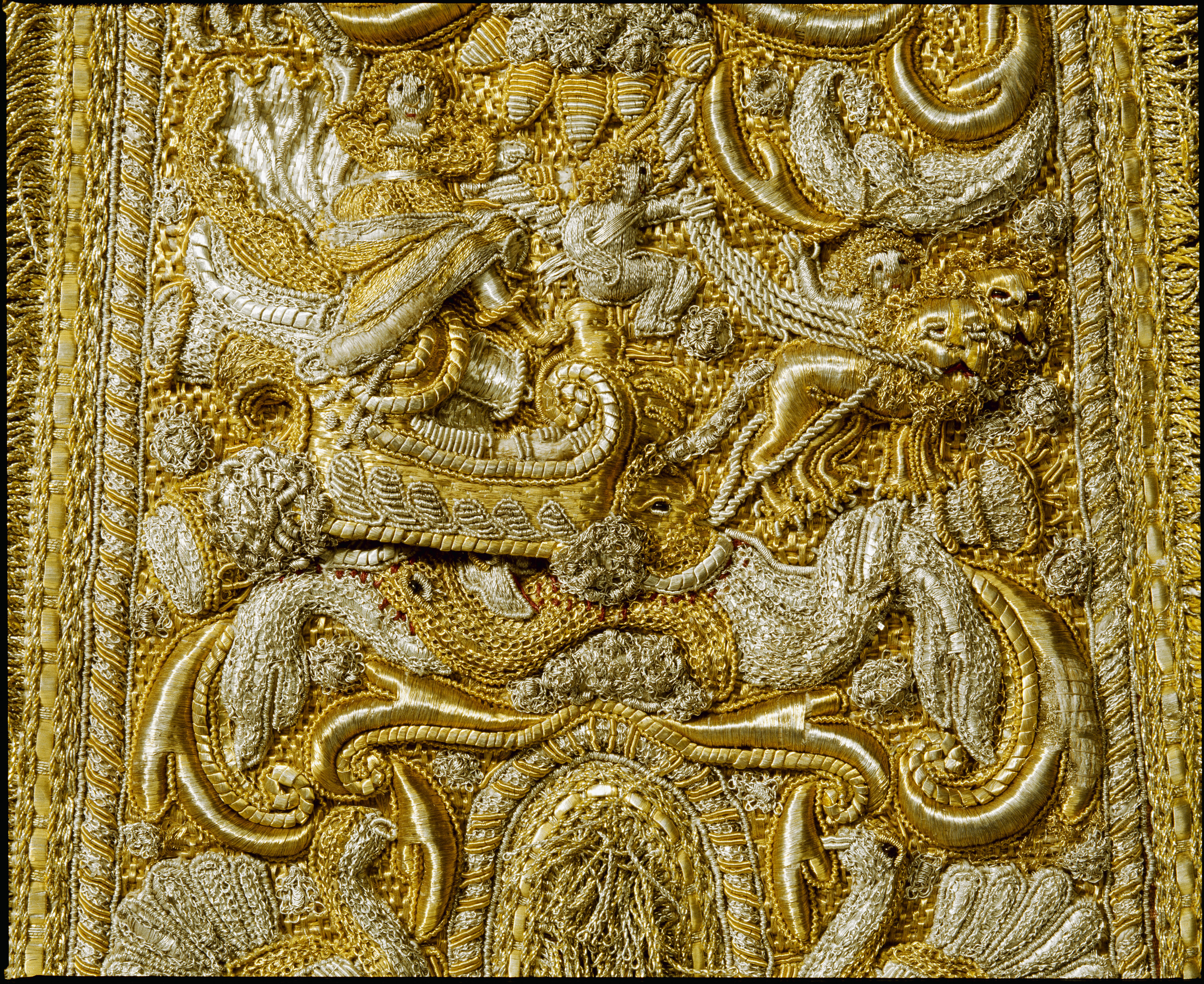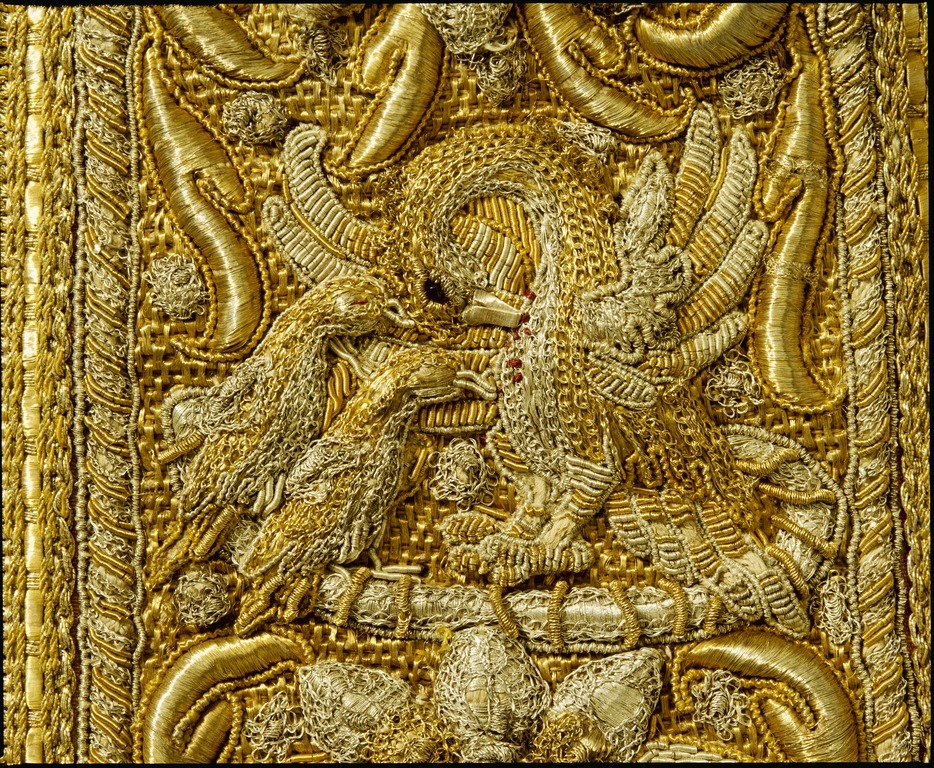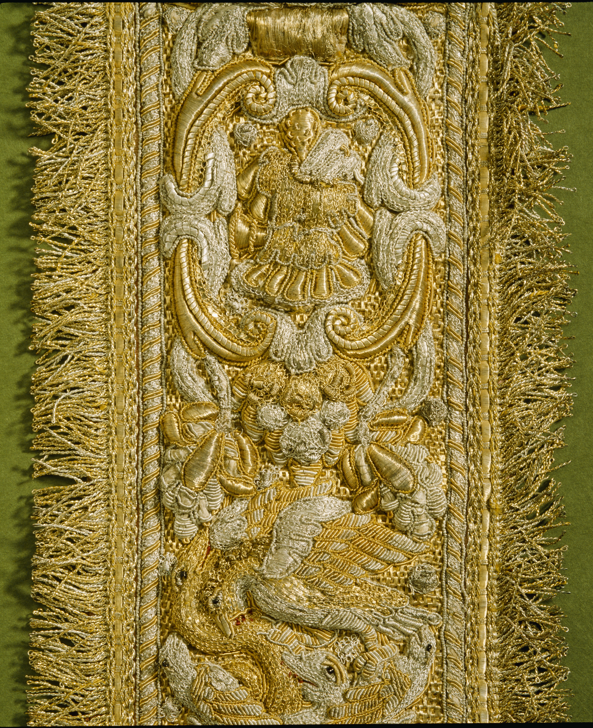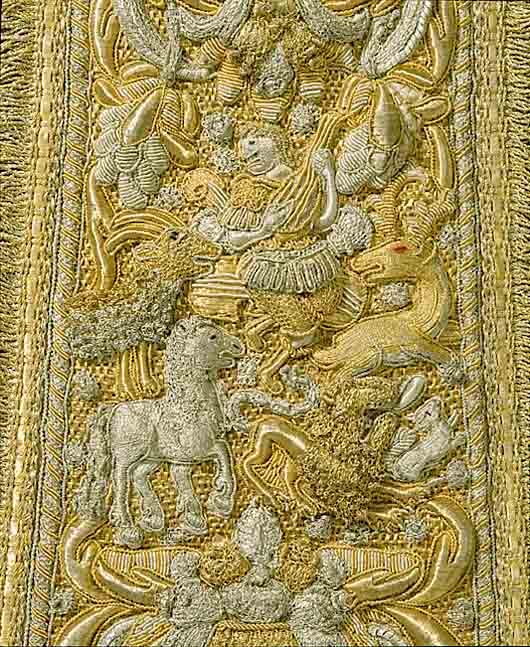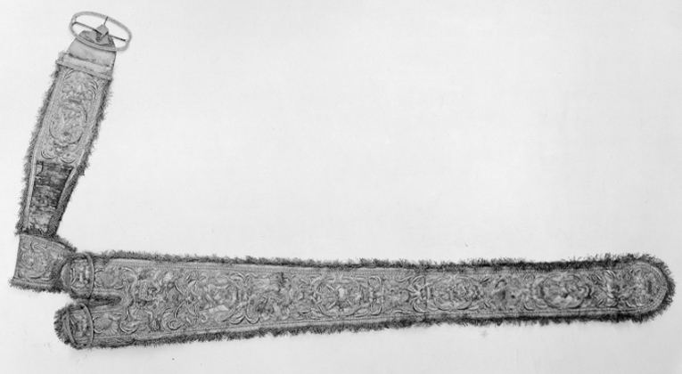 Axelgehäng med guld och silverbroderi.