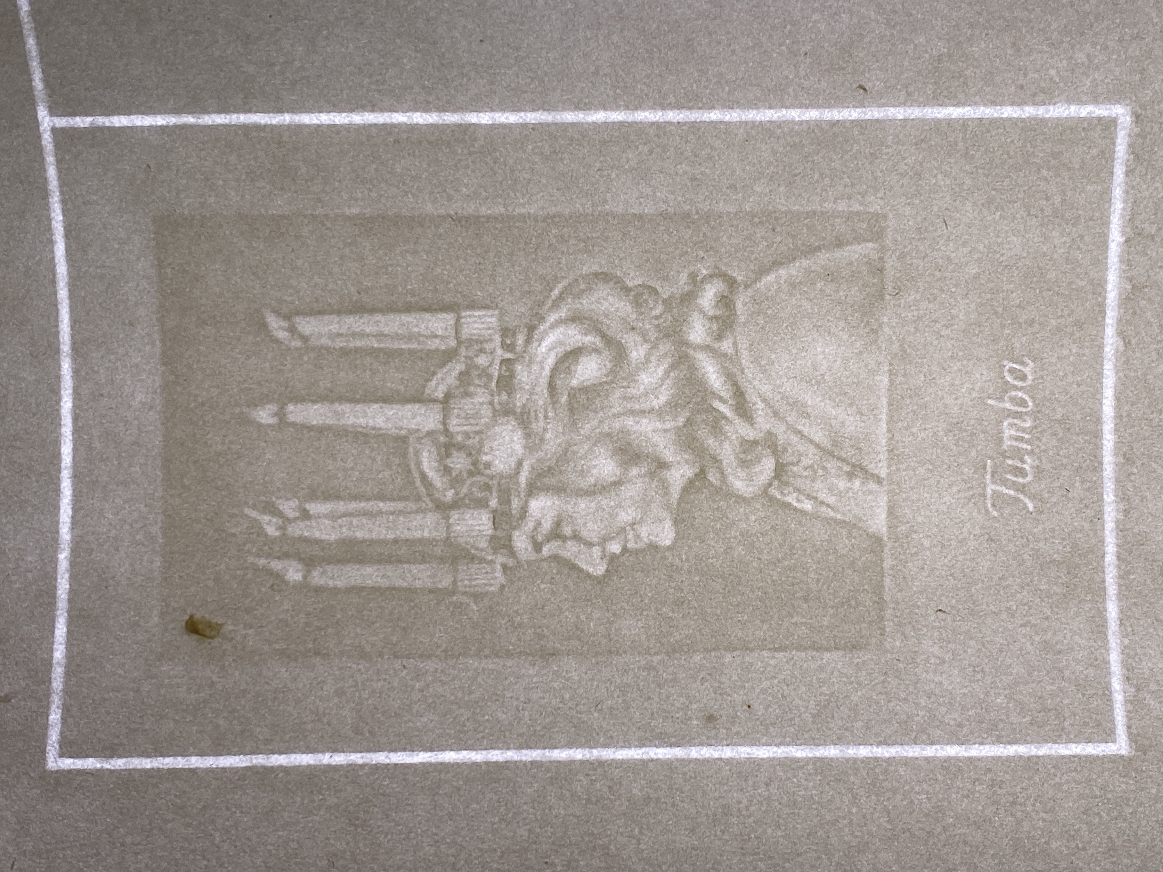 Handformat pappersark med dubbelverkande vattenmärke föreställande Lucia. Pappersarket även med enkelverkande vattenmärke med texten "Tumba". Pappret antingen tillverkat vid Tumba bruk eller vid Tumba bruksmuseum.