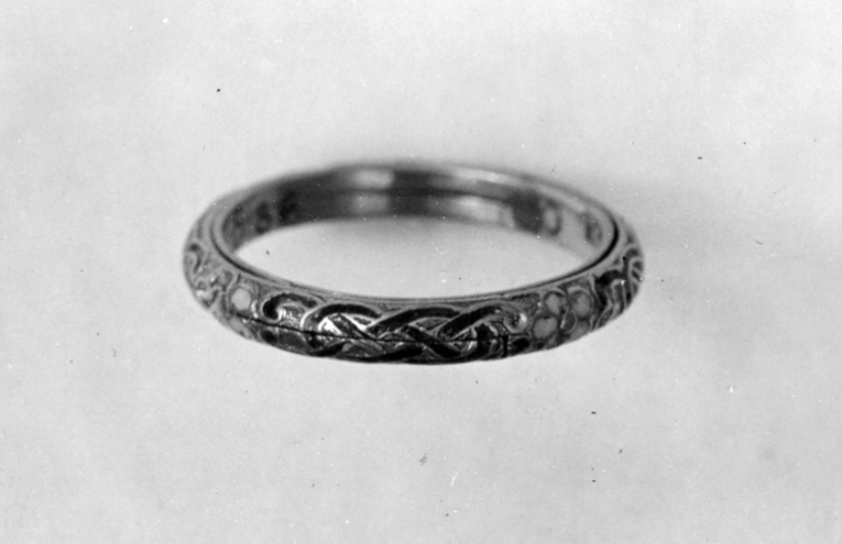 Ring av guld med rak insida och rundad utsida med flätornament av svart emalj i fyra fält och däremellan fembladiga blommor täckta med turkosblå emalj. Ringen sammansatt av en yttre, delbar del samt därinnanför två ringar av platta guldband, tillsammans av samma bredd som den yttre ringen. Utfällda bildar ringarna tillsammans en öppen glob, armillarsfär, med fyra sfärer. De inre ringarna har graverade inskriptioner, på den ena: "Si Deus pro nobis Quis", på den andra "contra nos Anno 1713". (Om Gud är med oss, vem är då mot oss?).