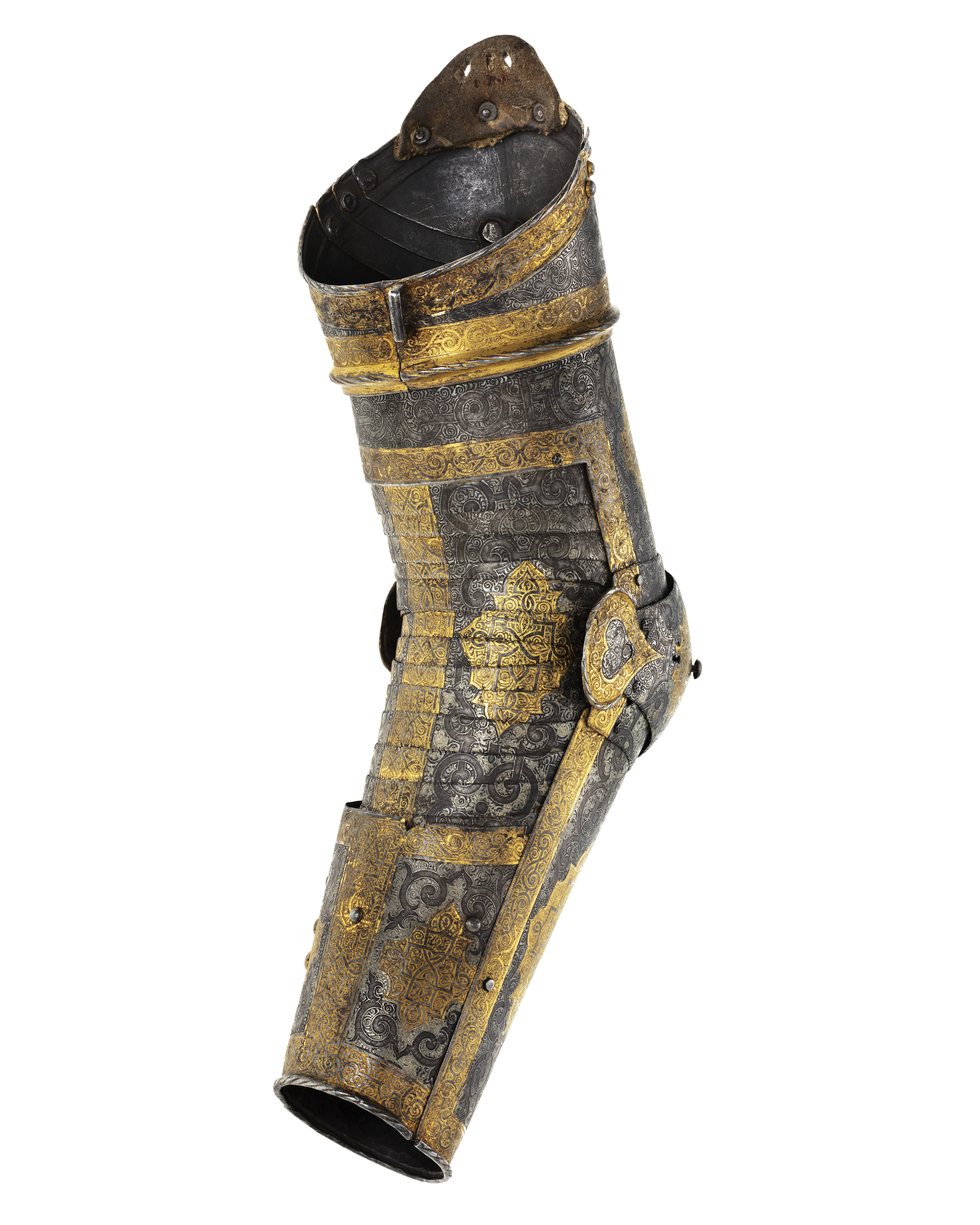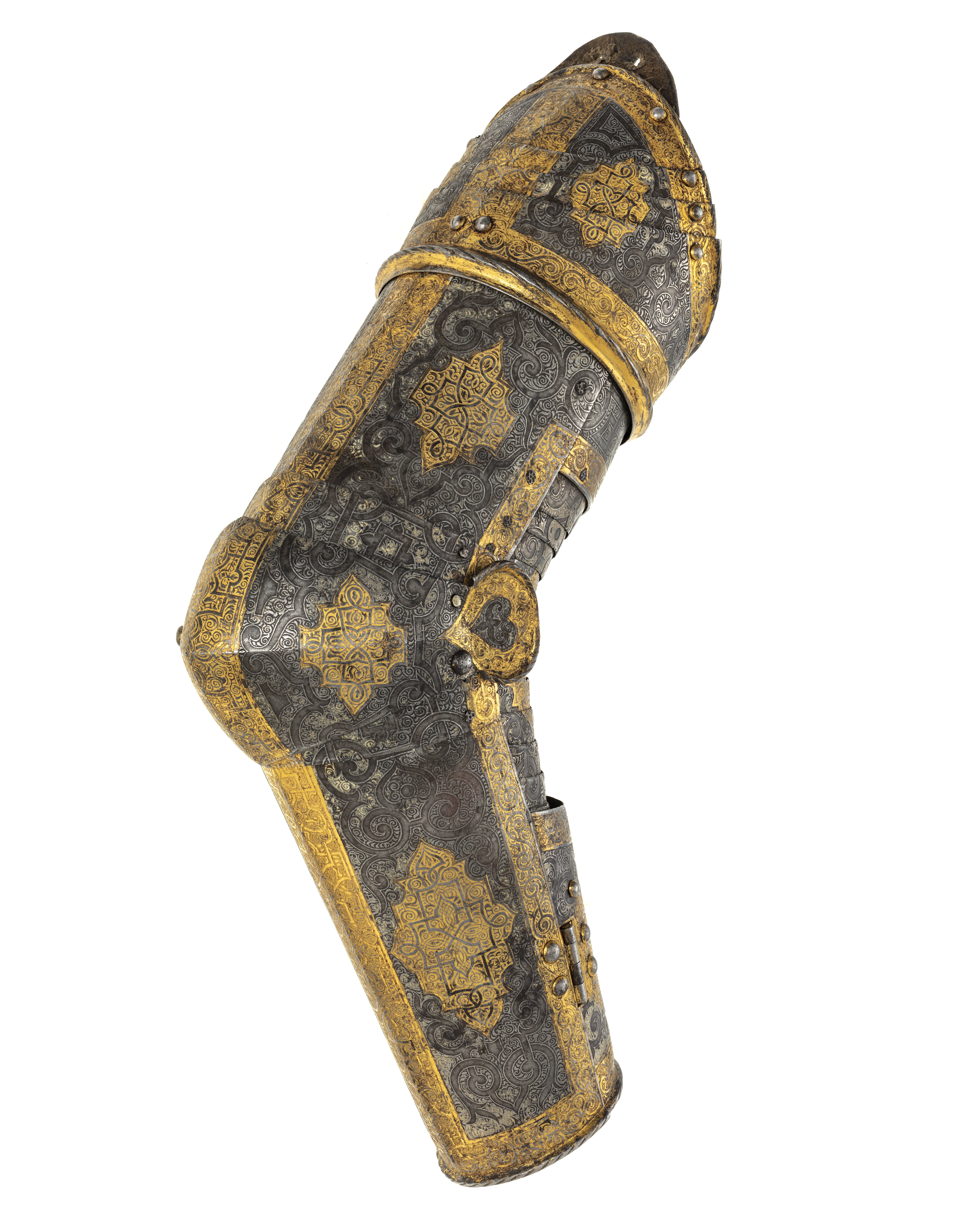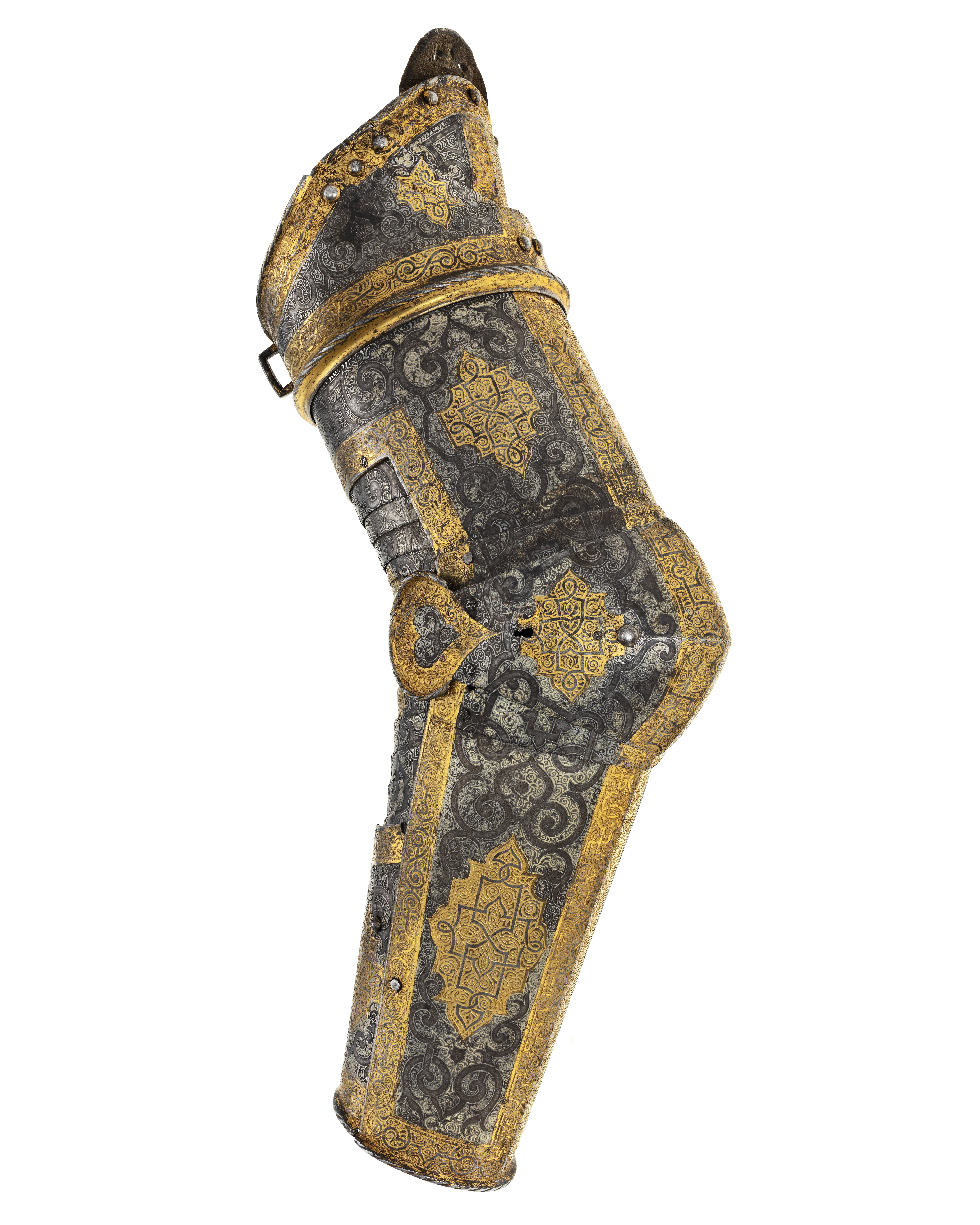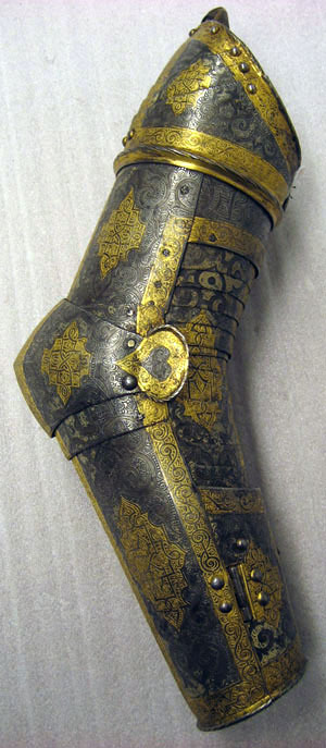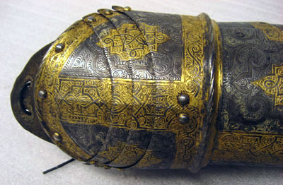 2 Complette Armstycken af drifvit incrusterat Jern med Guld och Silfver