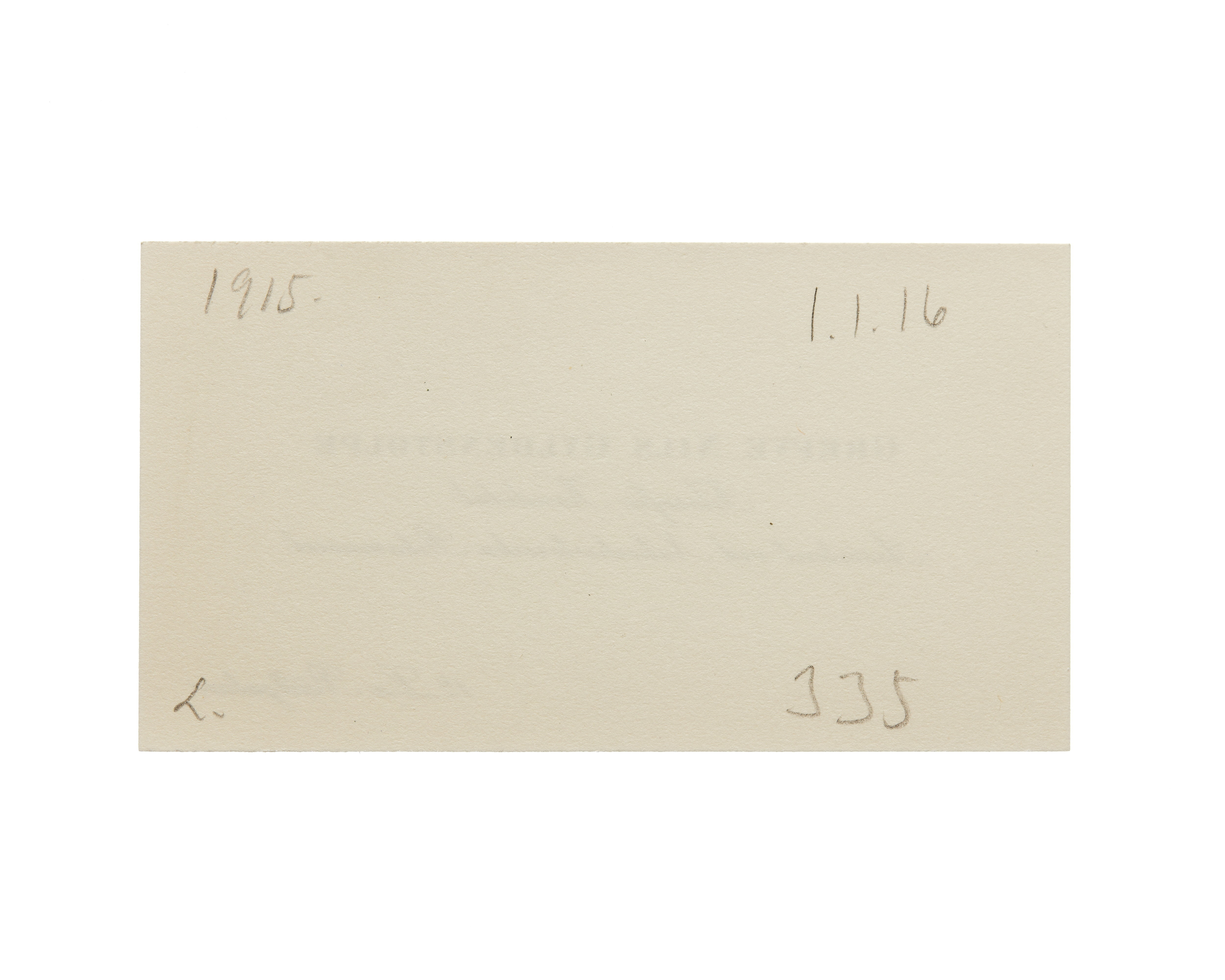 Två visitkort från Greve Nils Gyldenstolpe, Filosofie Kandidat Assistent vid Naturhistoriska Riksmuseet, båda daterat 1915. Adress (nedre högra hörnet) 12 La Bältgatan.