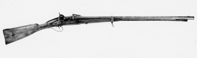 Flintlåsbössa ändrad till slaglås, kammarladdning med patron, icke fungerande konstruktion (felaktigt sammansatt?)